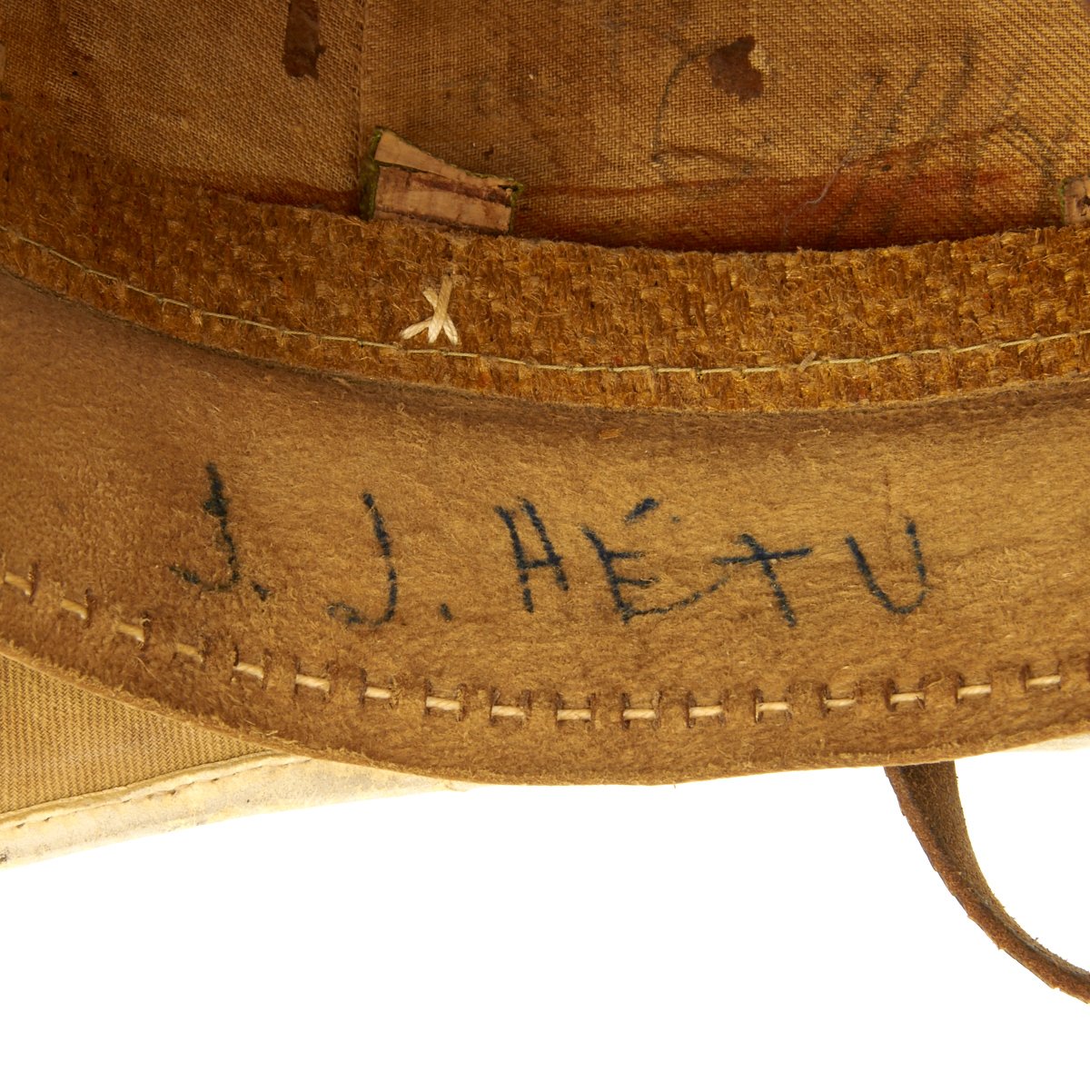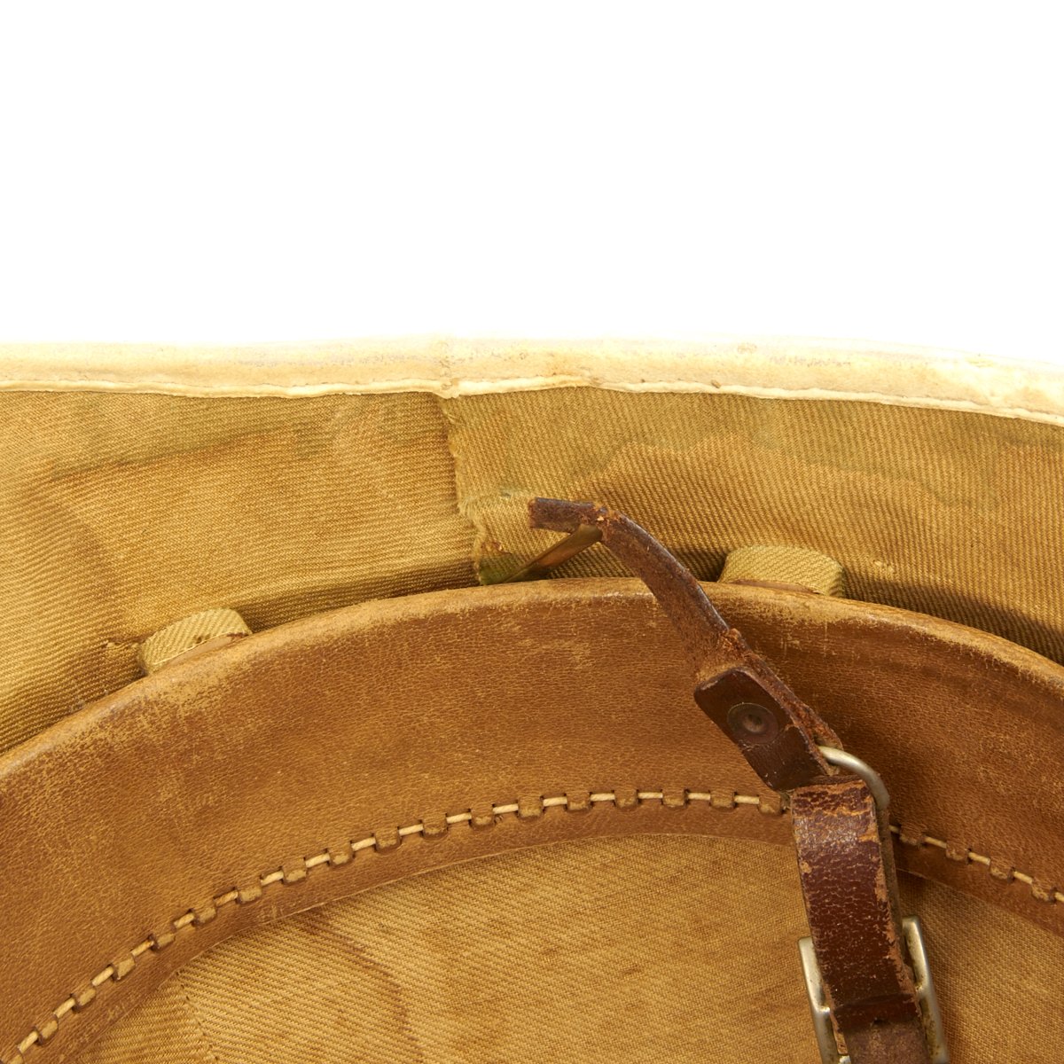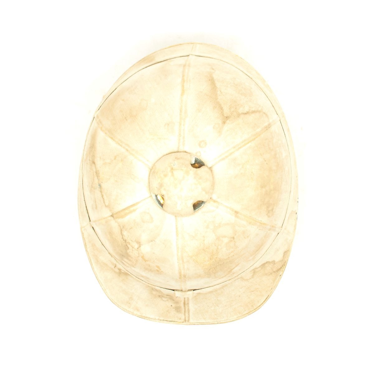 This helmet has been whitened but shows a bit of staining, which is expected of a helmet that was used in the field. It is a fantastic and very rare totally original example of an iconic helmet as used in the Zulu Wars.