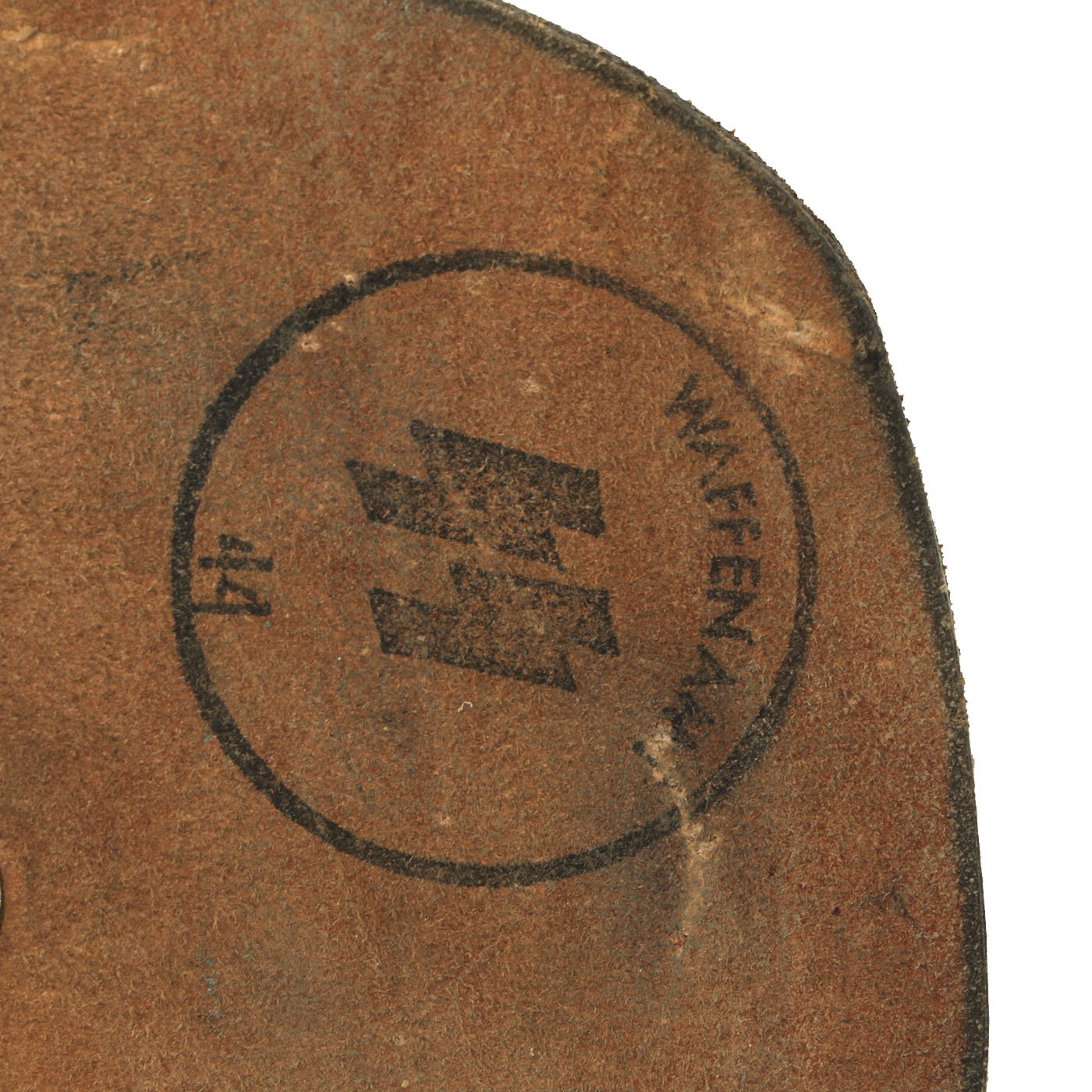 Condition of the holster is very good, and looks to have been brown leather, which was then dyed black. The inside of the top flap is stamped with WAFFENAMT SS 44, but this is almost certainly a spurious post-war addition. We have seen other examples of Bulgarian issue Luger holsters with the exact same marking. The leather is still supple, and the belt loop on the back is fully intact, as is all of the stitching we can see.