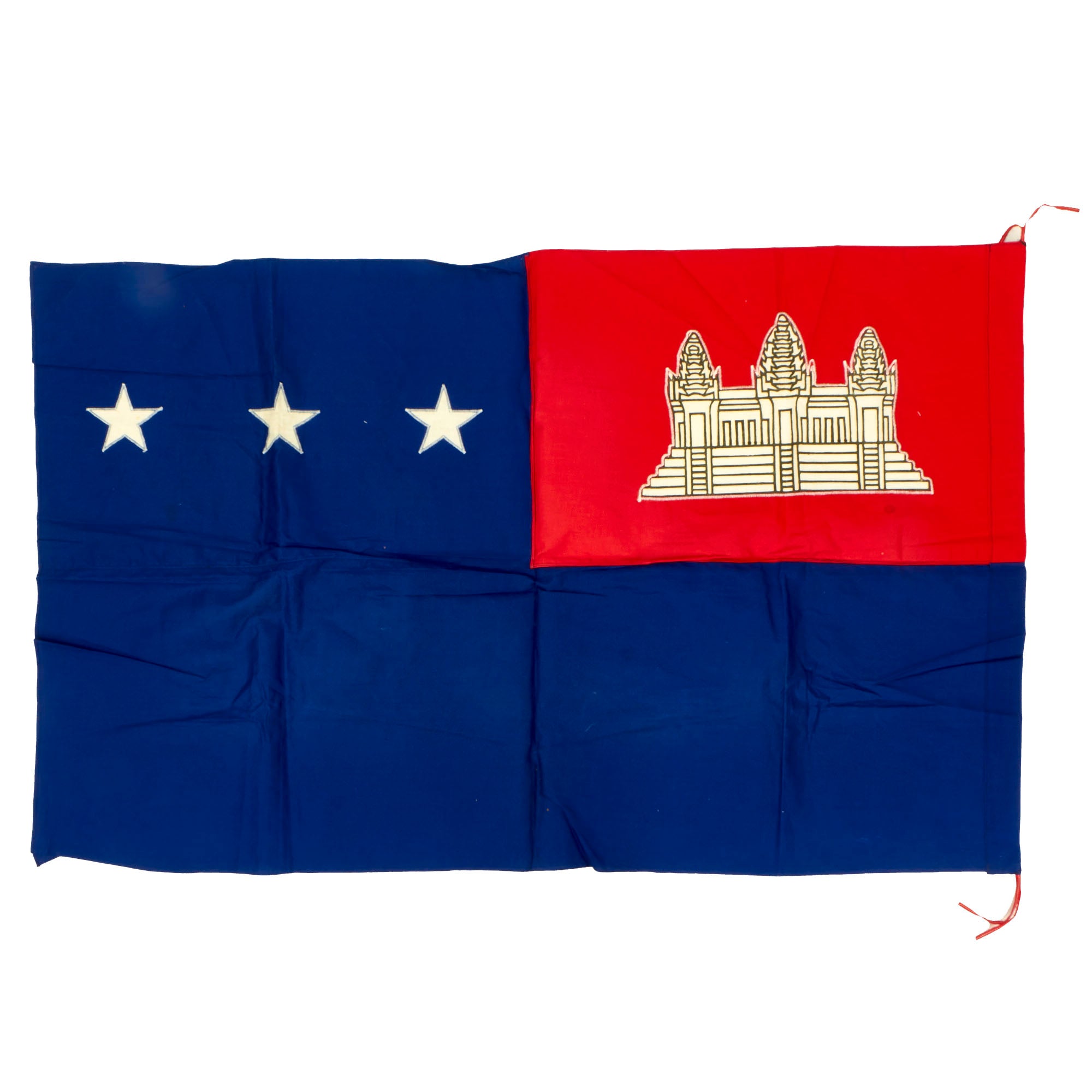 Original Item: Only One Available. This is a fantastic example of a Khmer Republic flag that was most likely brought home by an American GI after the war. This flag is in excellent condition and does not show signs of wear indicating any extensive use.