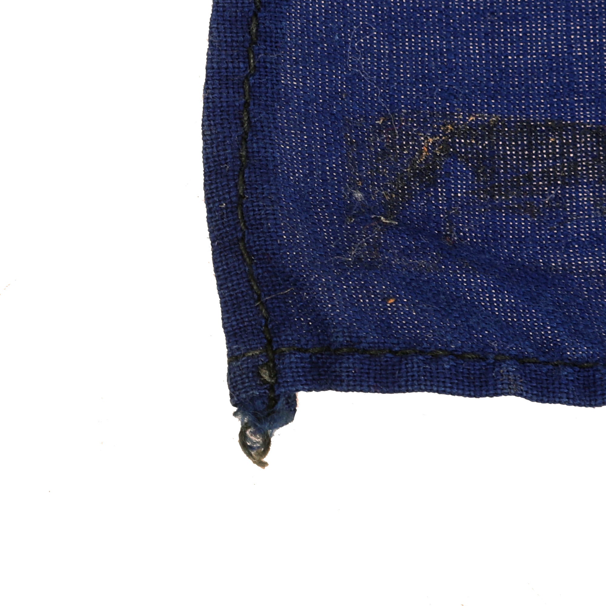 The flag is in great shape with few flaws besides some staining from someone using it as a coaster. The left ends have small red hanging ties.