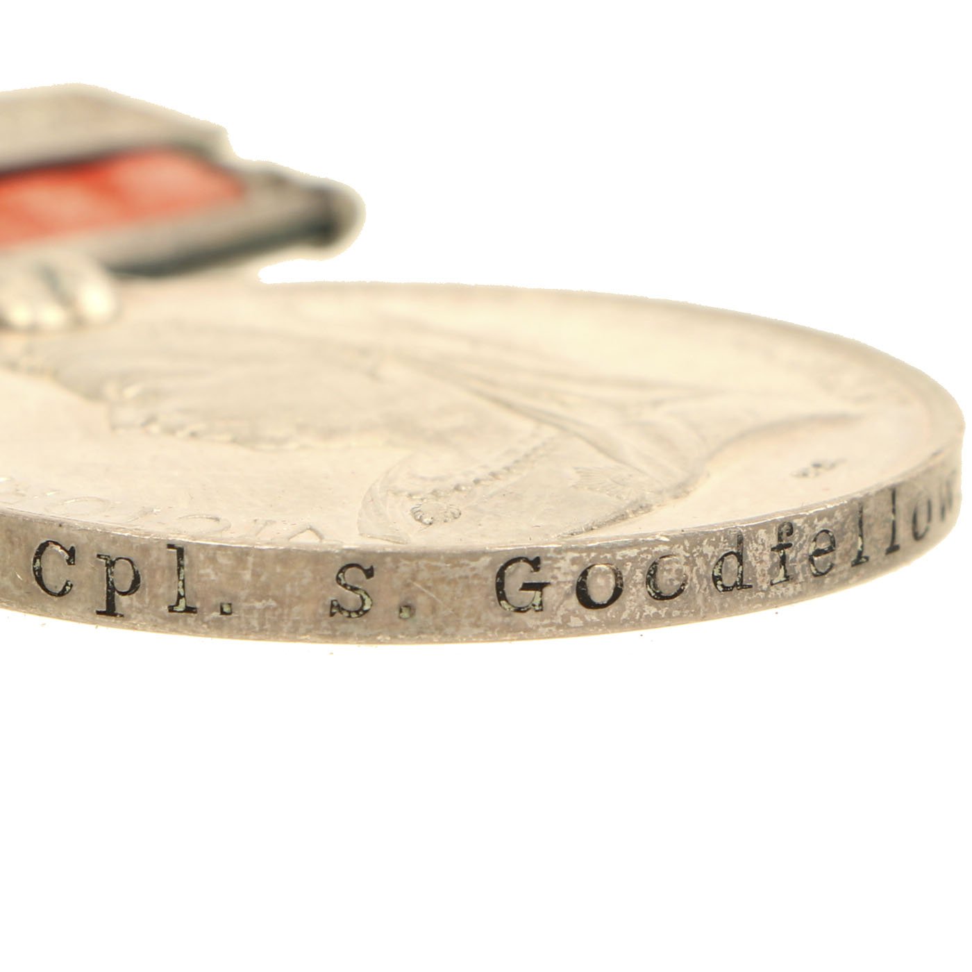The rim of the medal in impressed to read: