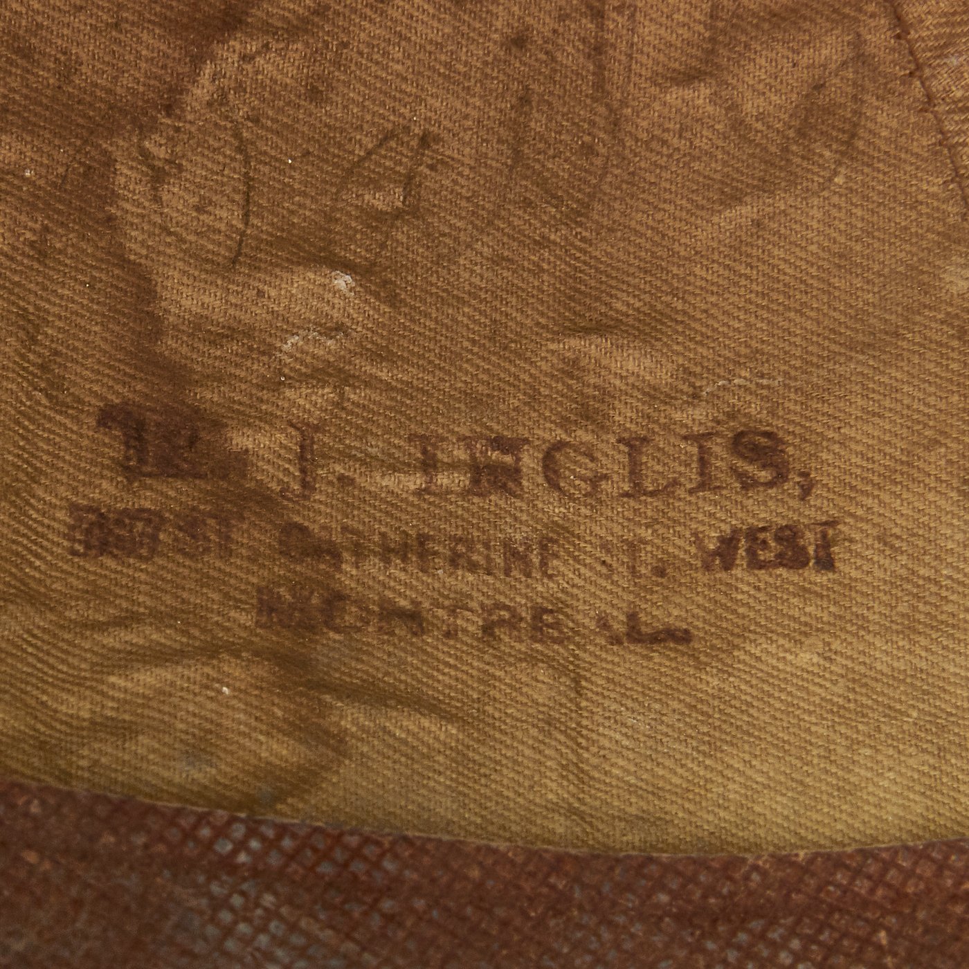 This is a very nice Canadian issue example of the standard white "six-seam" version, maker marked on the inside by two firms Montréal, part of the Quebec province of Canada. The inside also has lots of interesting initials and other markings, along with the size tag of 7 1/8. This make this a really great research opportunity!
