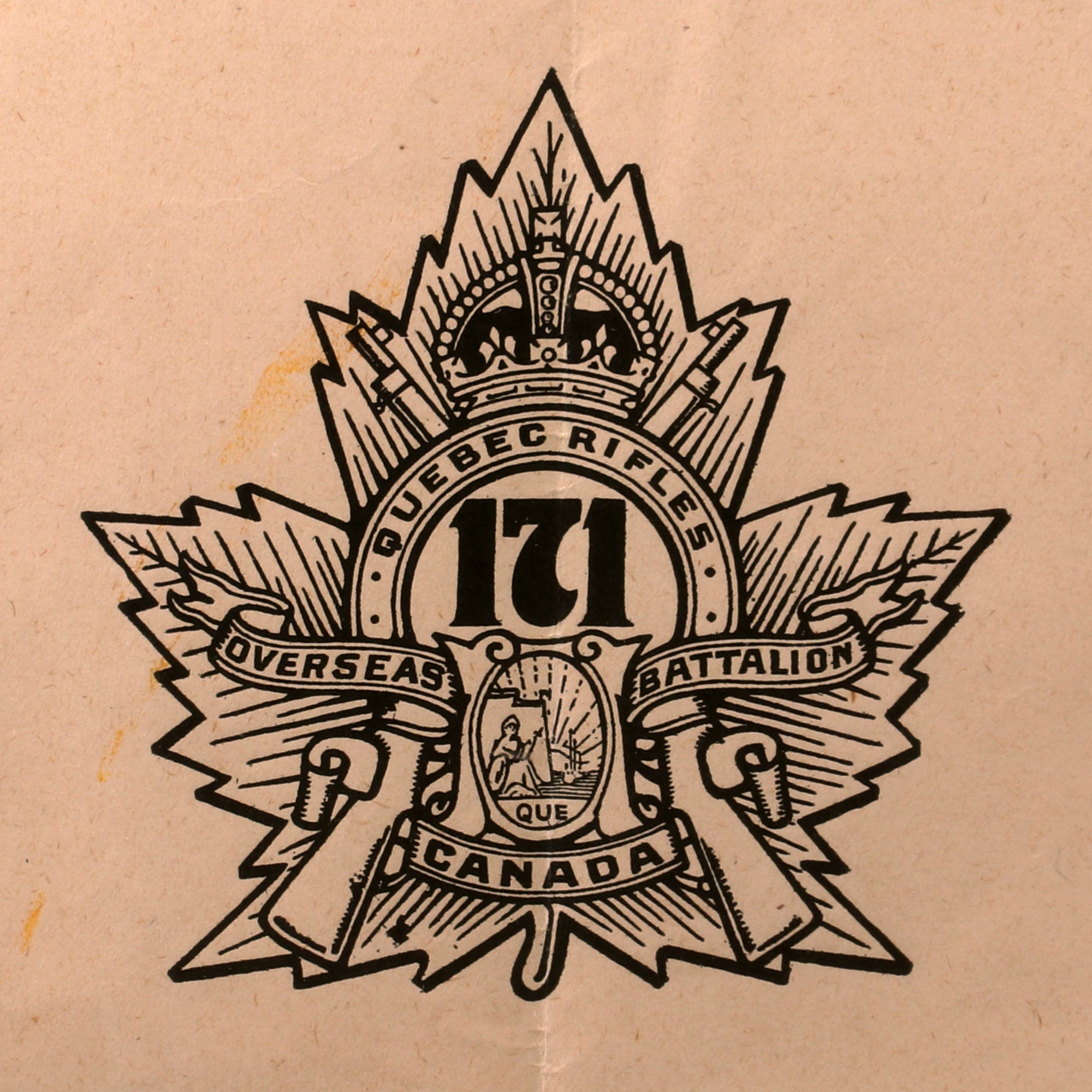 Original Item. One-of-a-Kind. The 171st (Quebec Rifles) Battalion, CEF was a unit in the Canadian Expeditionary Force during the First World War. Based in Quebec City, Quebec, the unit began recruiting during the winter of 1915/16. After sailing to England in November 1916, the battalion was absorbed by the 148th Battalion, CEF, 5th Pioneers, and the 20th Reserve Battalion in December 1916. The 171st (Quebec Rifles) Battalion, CEF had one Officer Commanding: Lieut-Col. Sir Wm. Price.