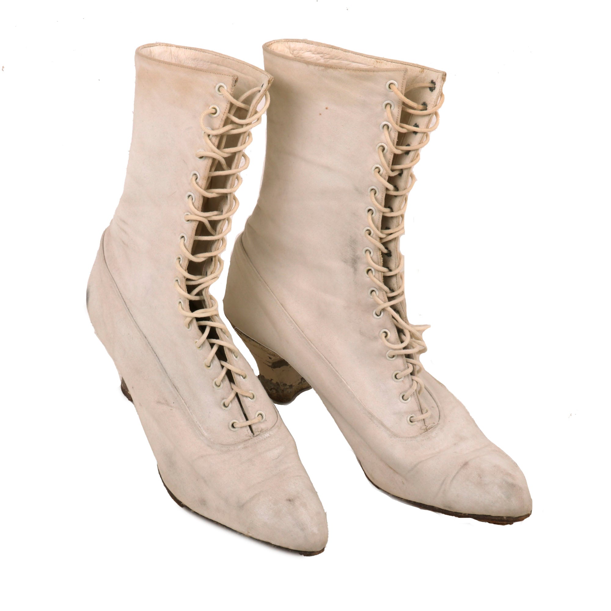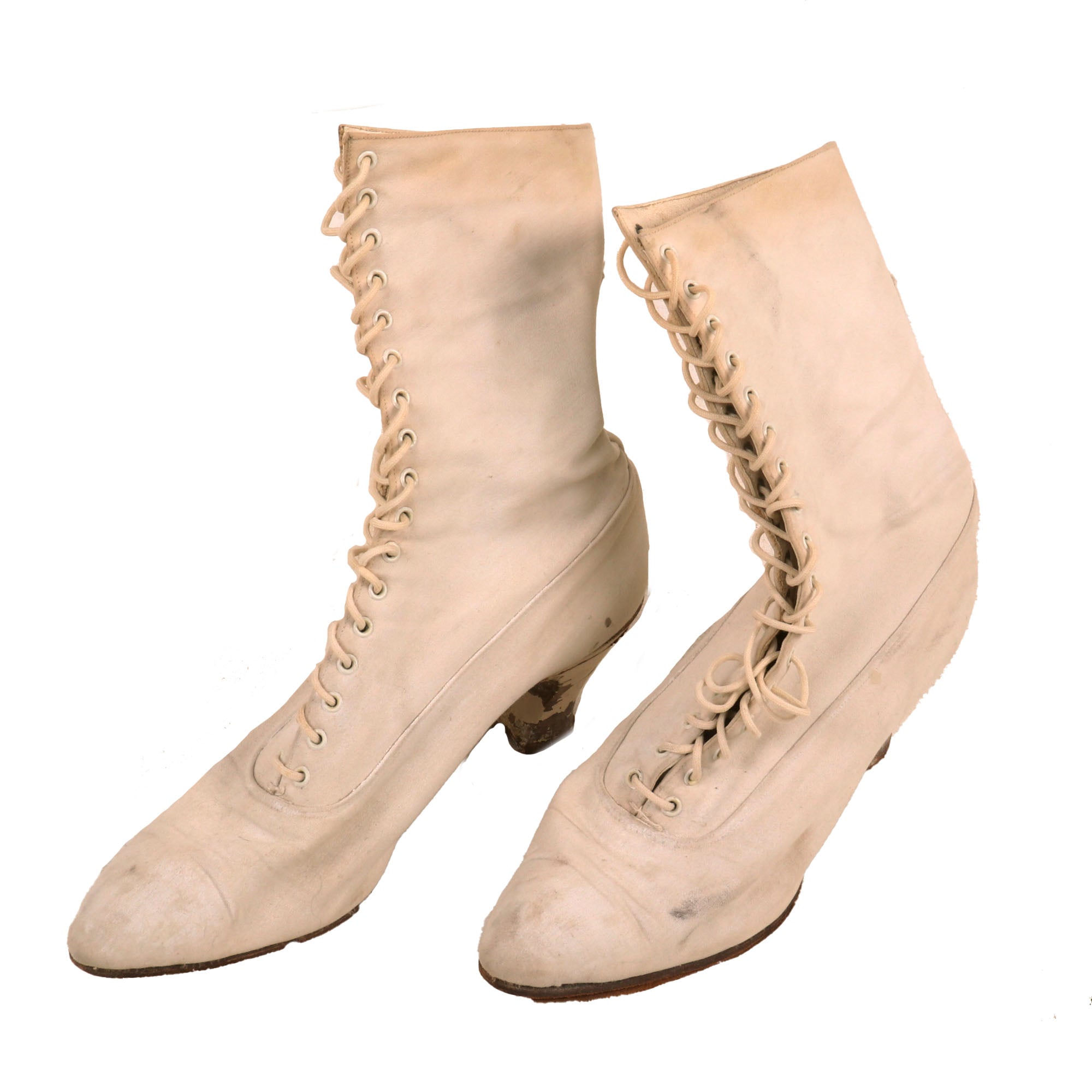 - A pair of tall white nurse’s boots in stellar condition with all laces retained and no rips.
