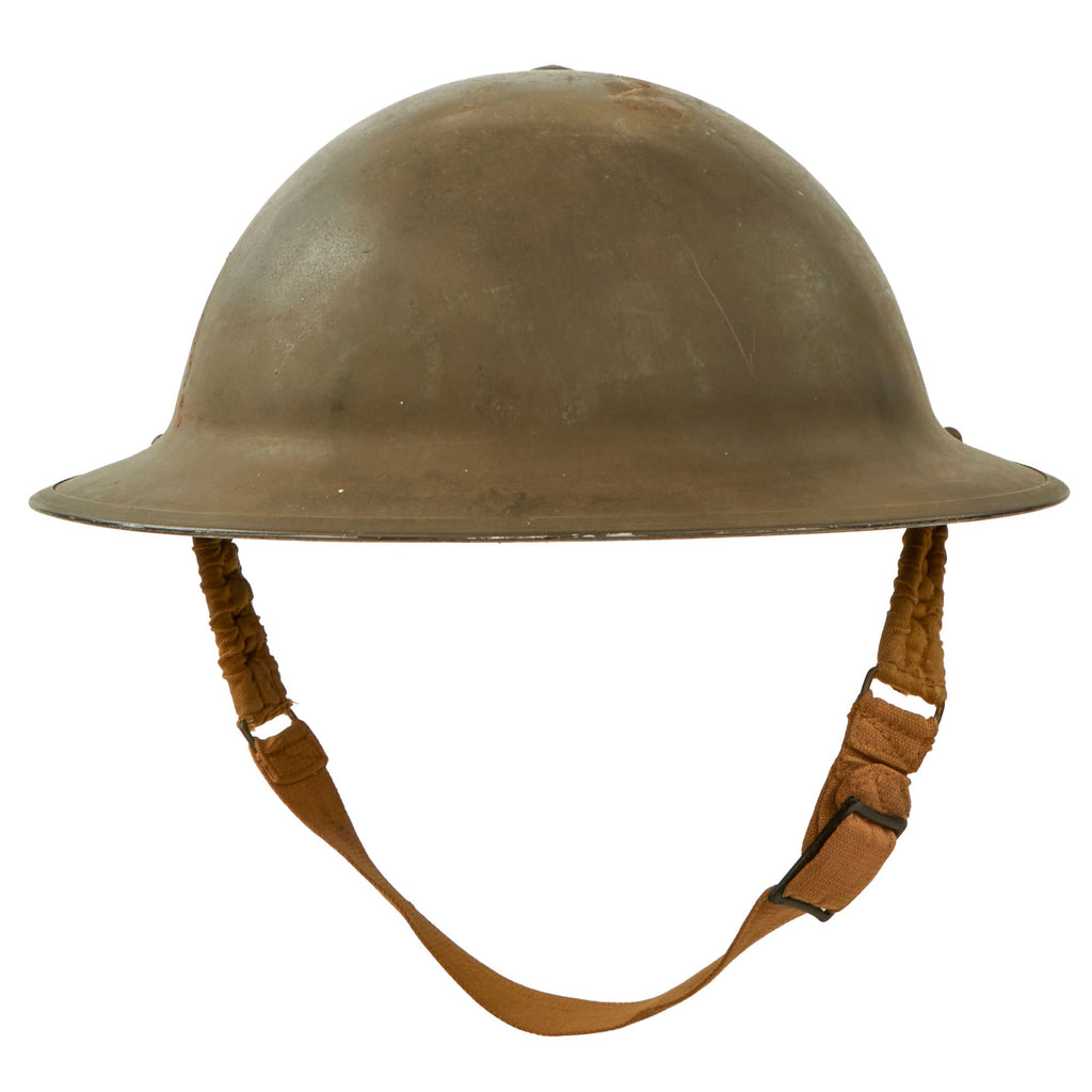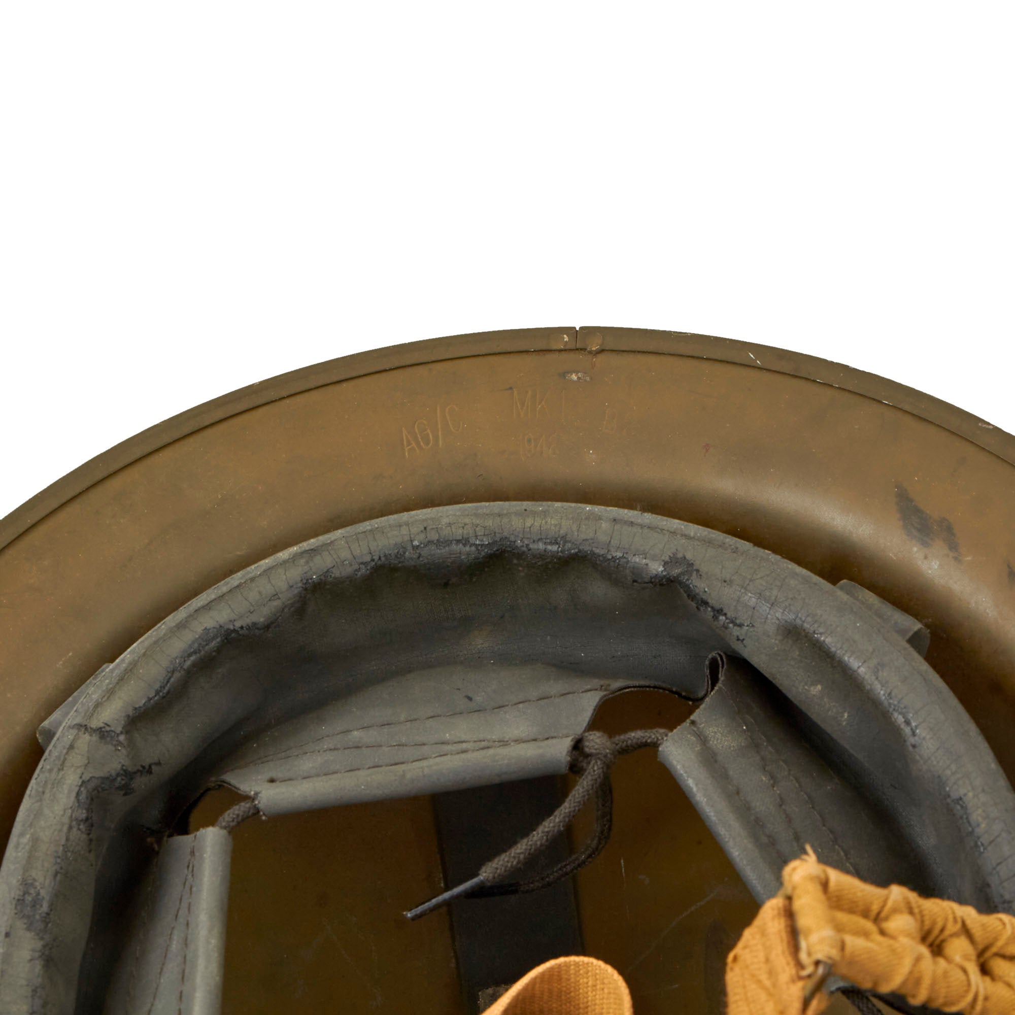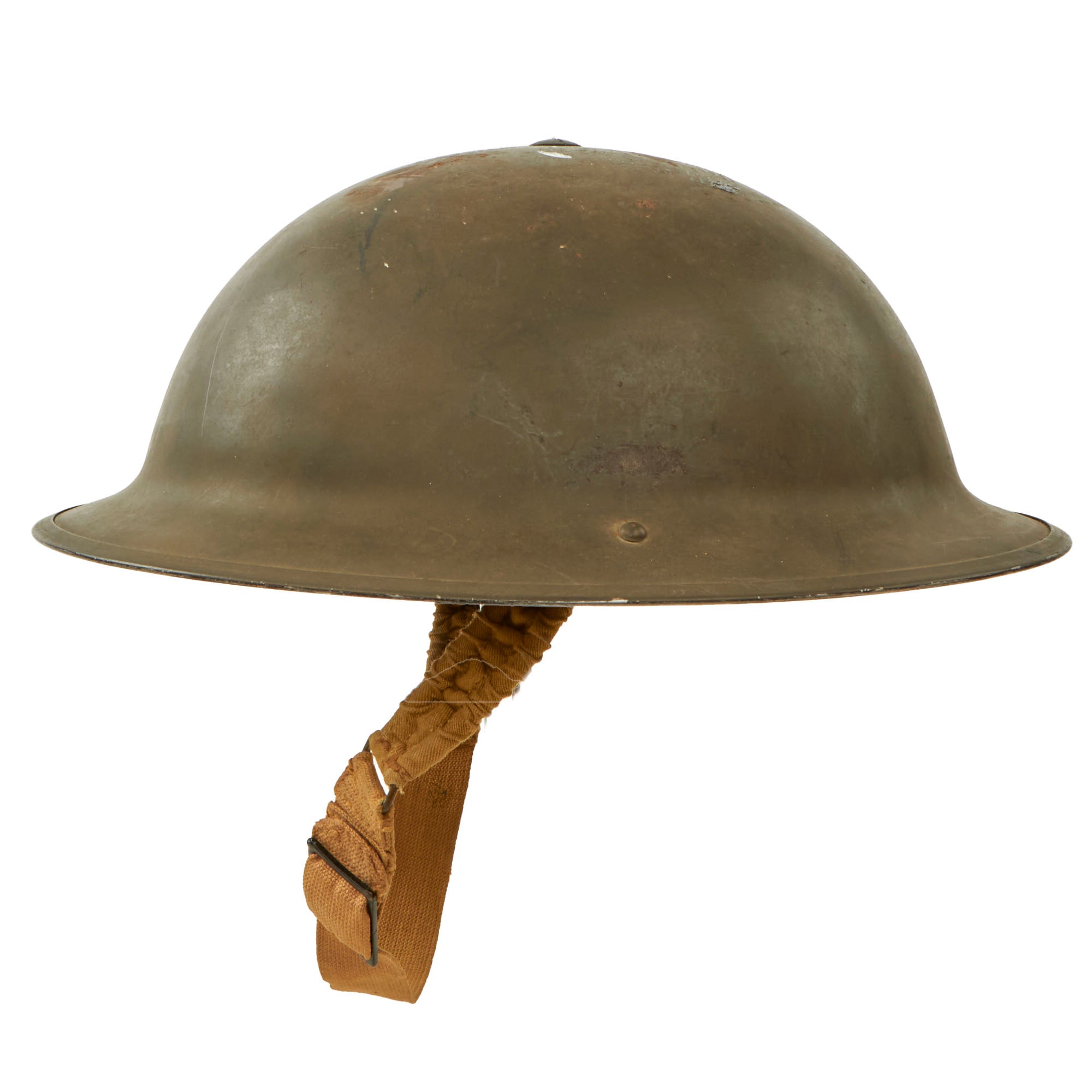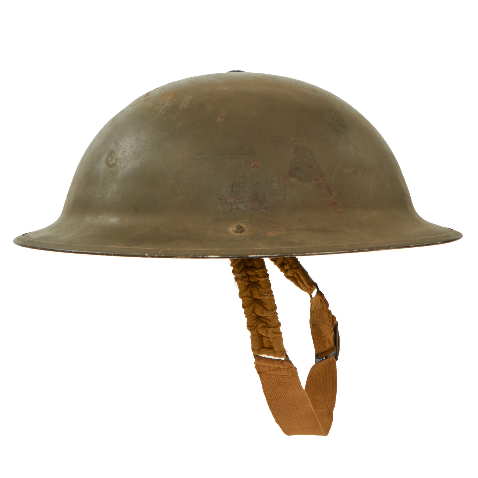 Original Item: Only One Available. This is a very good example of a genuine Canadian -Manufactured Mark II steel helmet, dated 1942 on the shell, complete with liner and chinstrap.