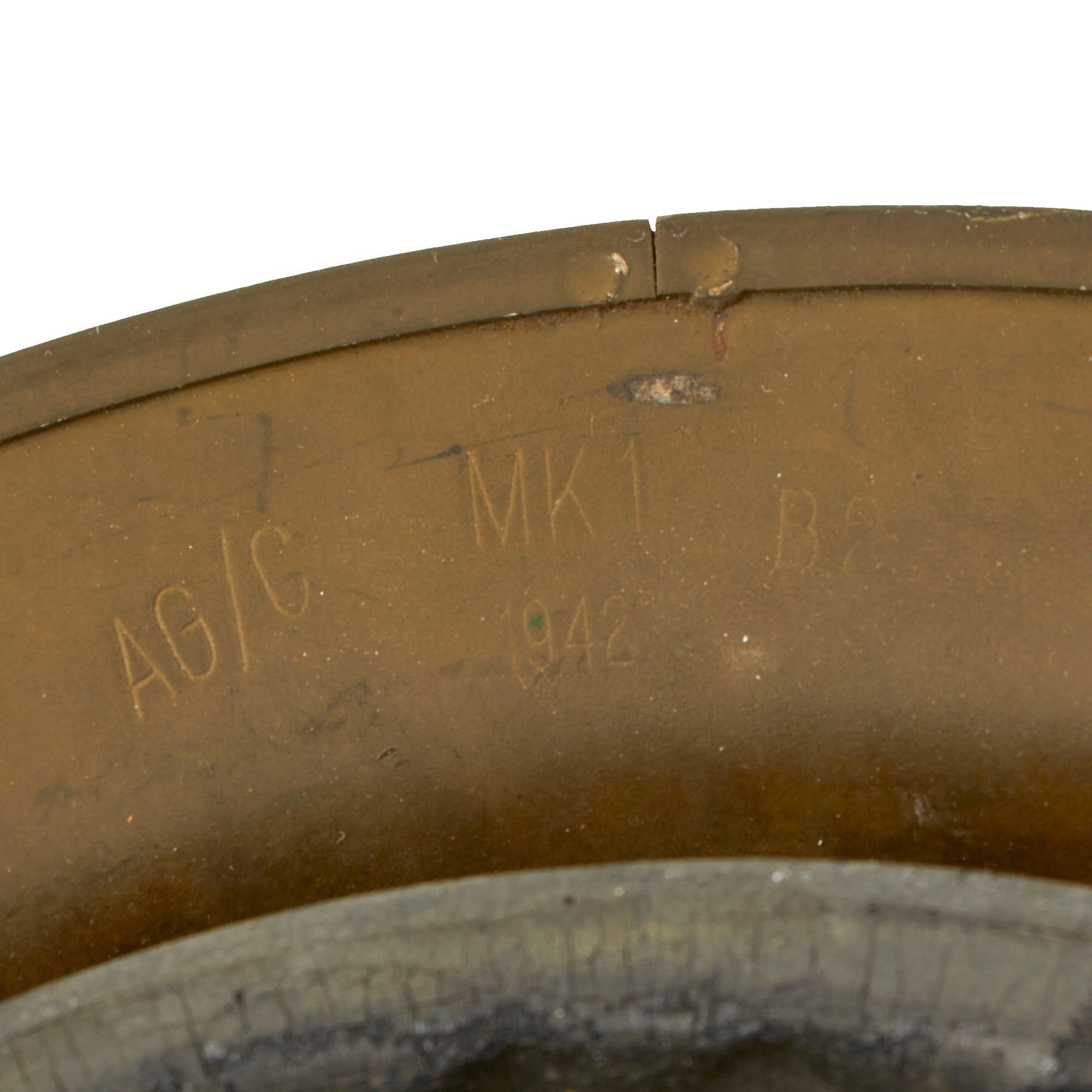 AG/C stands for the Aluminum Goods Company of Toronto, who made helmets exclusively in 1942. The shell is overall in great shape with no major issues. The helmet net is a light brown color, with nice cotton construction, typical of the type used by Canadian and British forces during WWII.