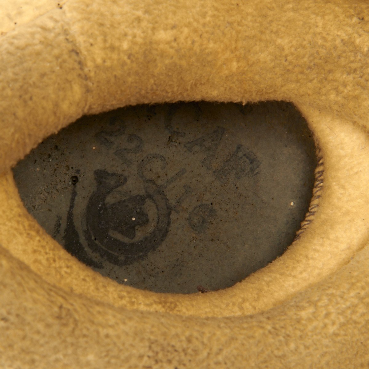 Helmet leather is in outstanding supple, bright condition, showing light honest service use only. All straps and buckles present and in good matching order. Ear cup zips are angled and in good working order, zippers are marked UCF CAN. Interior of ear still retain foam cups fully marked and the lining of the helmet is still soft and excellent with multiple Canadian War Department Broad Arrow Circle C markings. Just amazing!