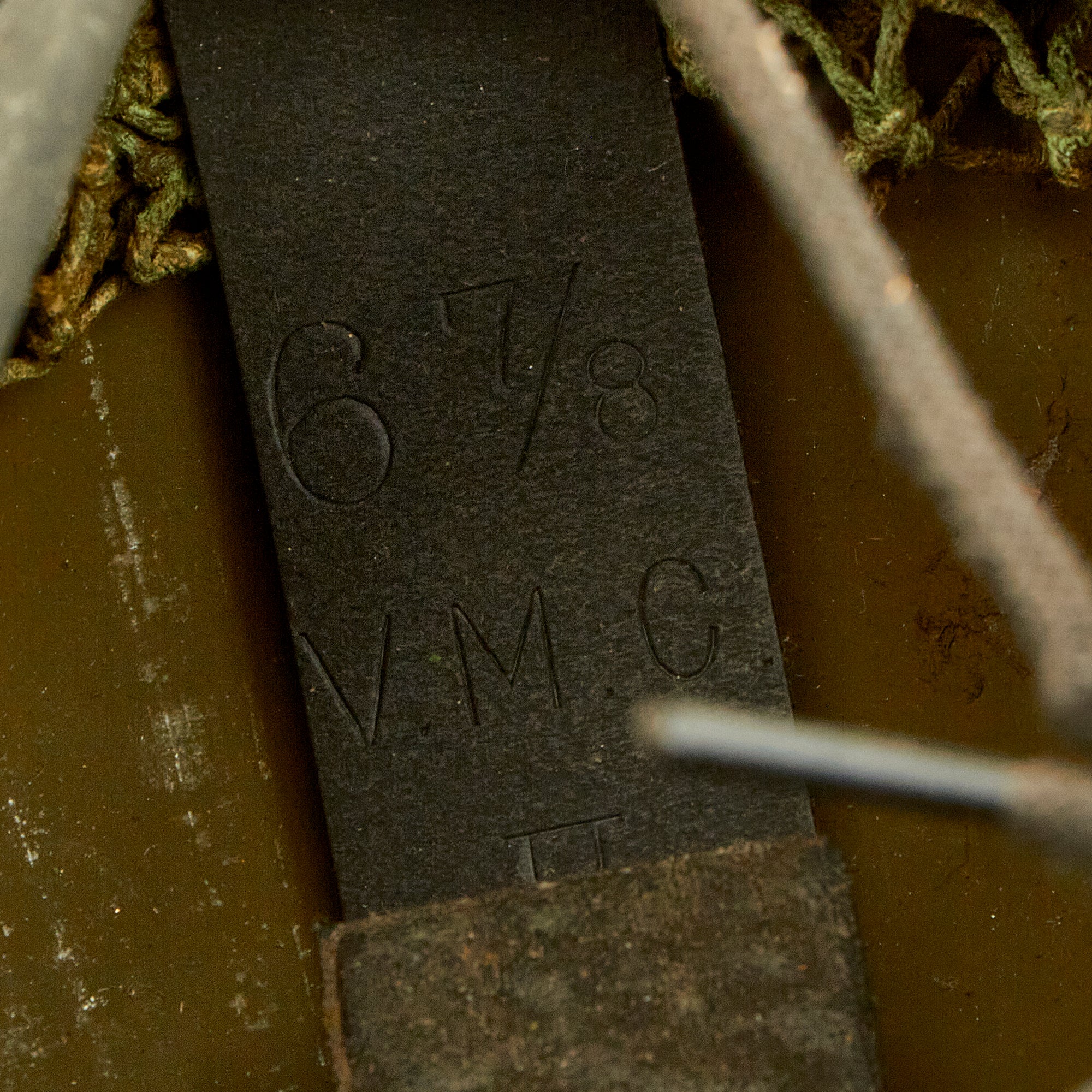 The original liner is in very good used condition, with nice oil cloth, and only light wear from storage. The liner is a small size, being marked 6 ⅞. The liner is stamped and dated V.M.C. / 1942. This is the marking for Viceroy Manufacturing Co of Toronto who made helmet liners from 1940 - 1945.