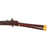 Measuring about 50 inches overall, the barrel is 38 1/2 inches long, with a "cannon" flared muzzle. Most interestingly, it is RIFLED with 8 grooves and a gentle twist. This is definitely not what we were expecting, as almost all that we have seen have always been smooth bore. The rifle is quite low profile overall, which keeps the weight down. It is fitted with the characteristic Caucasian area "ball trigger", and looks to have had 3 barrel bands at one point, only one of which remains. We checked the lock, and it actually is fully functional, though we do recommend using it with care, as they are not nearly as durable as the later flintlock designs.