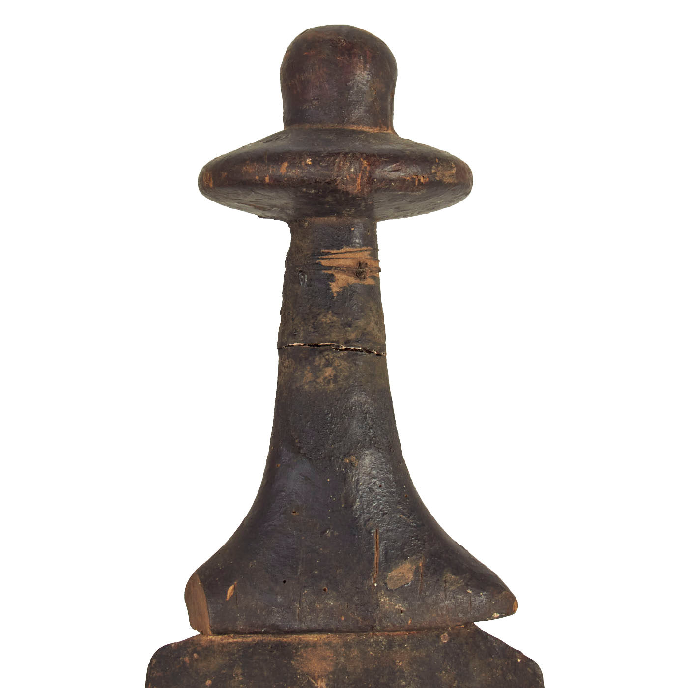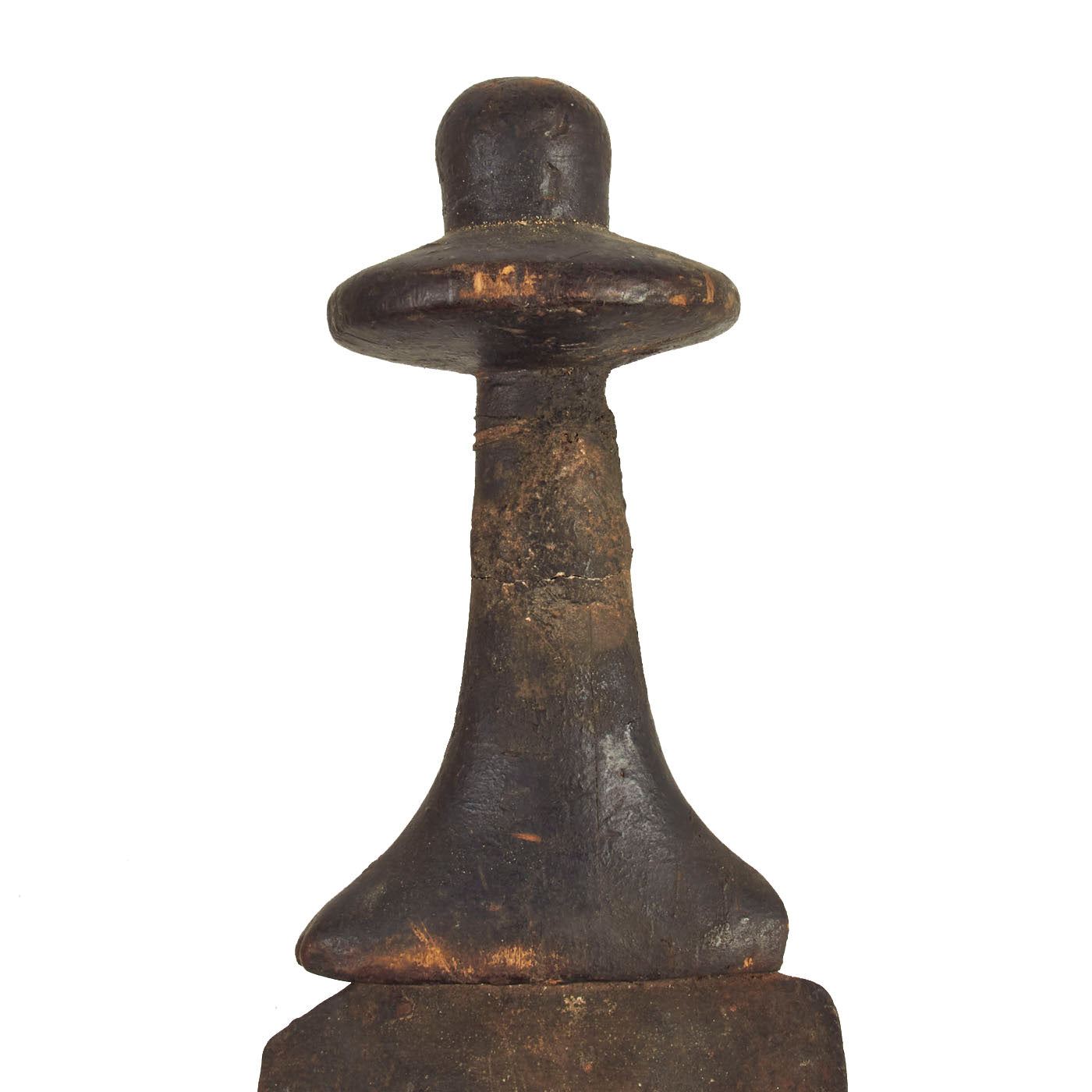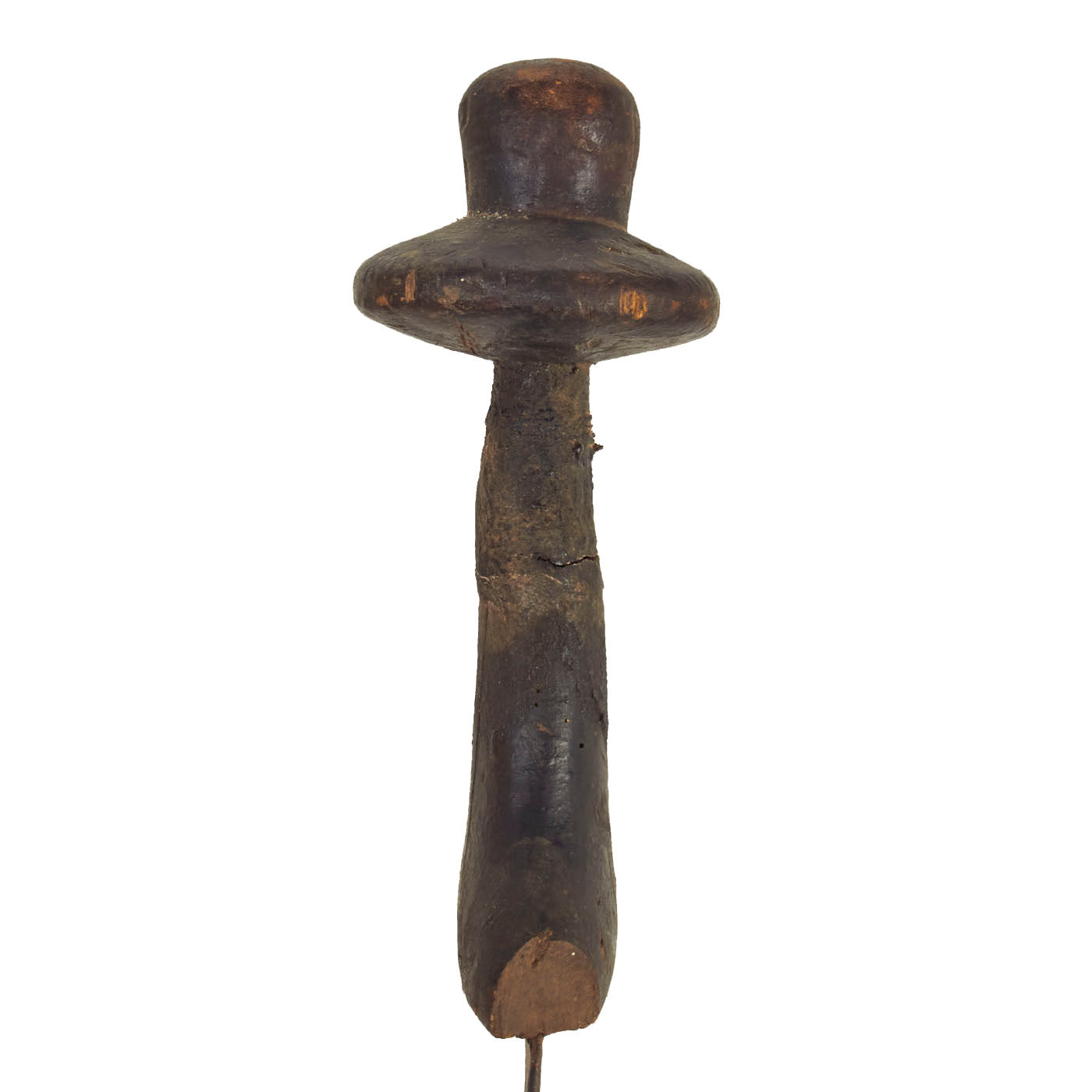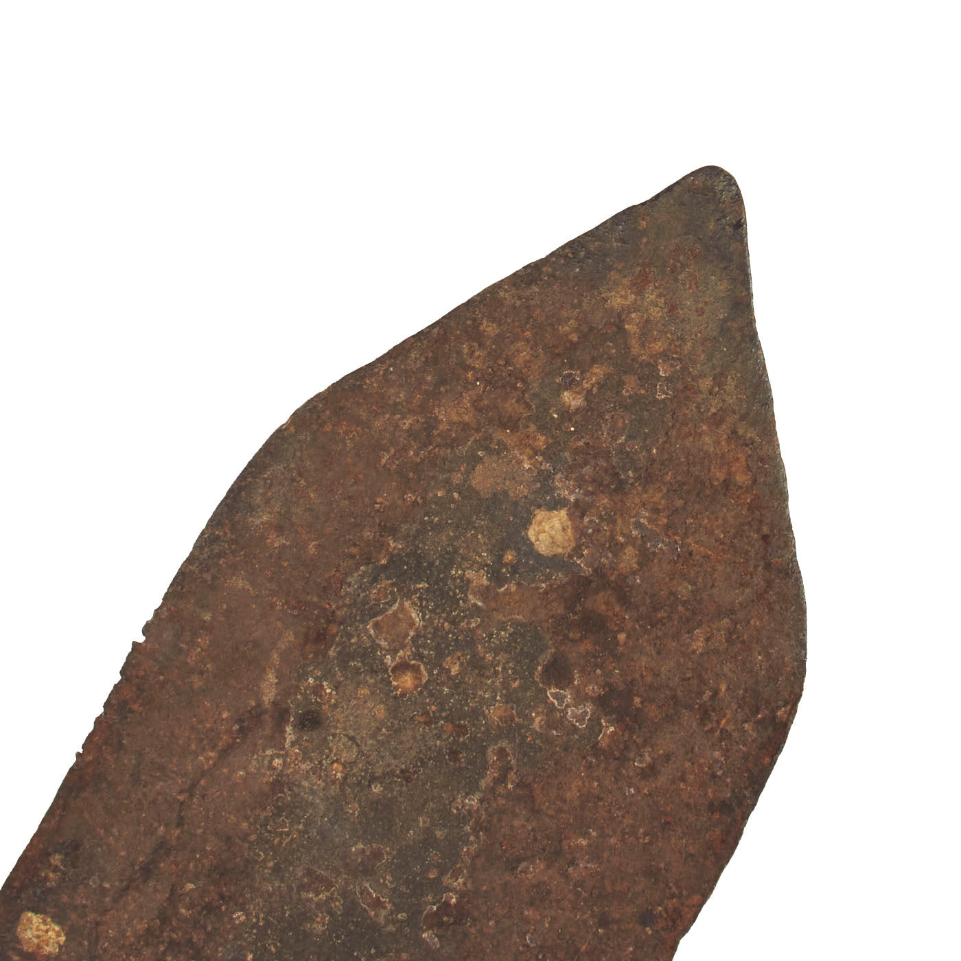 Unknown Sword: This is a strange one for sure. The sword has somewhat similar appearance to a few other tribal examples, but none with this shape and could even possibly be an unfinished product. It appears to have been ground dug and does have a lot of pitting and oxidation present. The wood handle was cracked and repaired at some point.