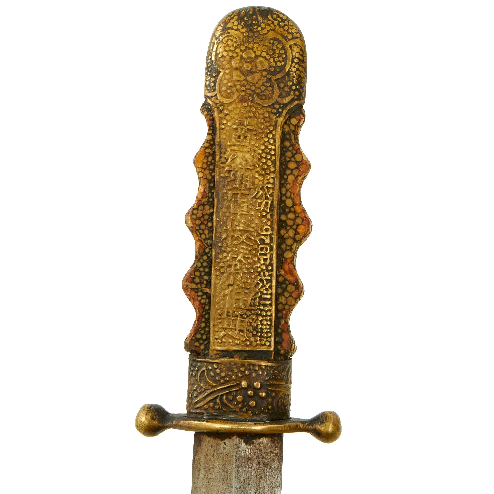 Original Item: Only One Available. This is a lovely example of an extremely rare Pre-WWII / wartime era Chinese Cadet Dagger. The Republic of China Army Officer School, previously known as the Whampoa Military Academy, officially opened on May 1, 1924 under the Kuomintang. Sun Yat-sen delivered a speech during the inaugural ceremonies. Chiang Kaishek was the President of the Chinese Republic at the time. The school produced many famous Chinese military commanders of the 20th Century!