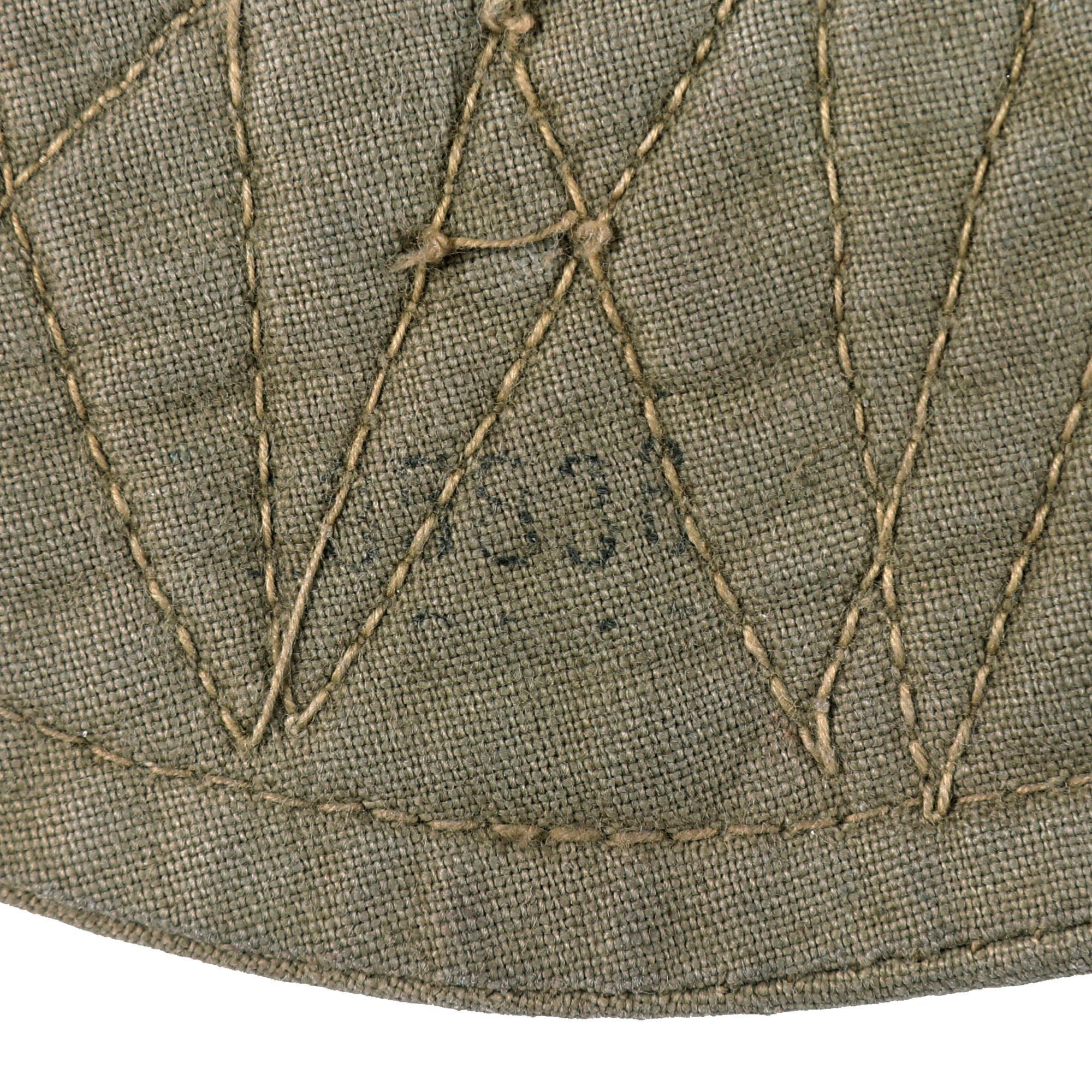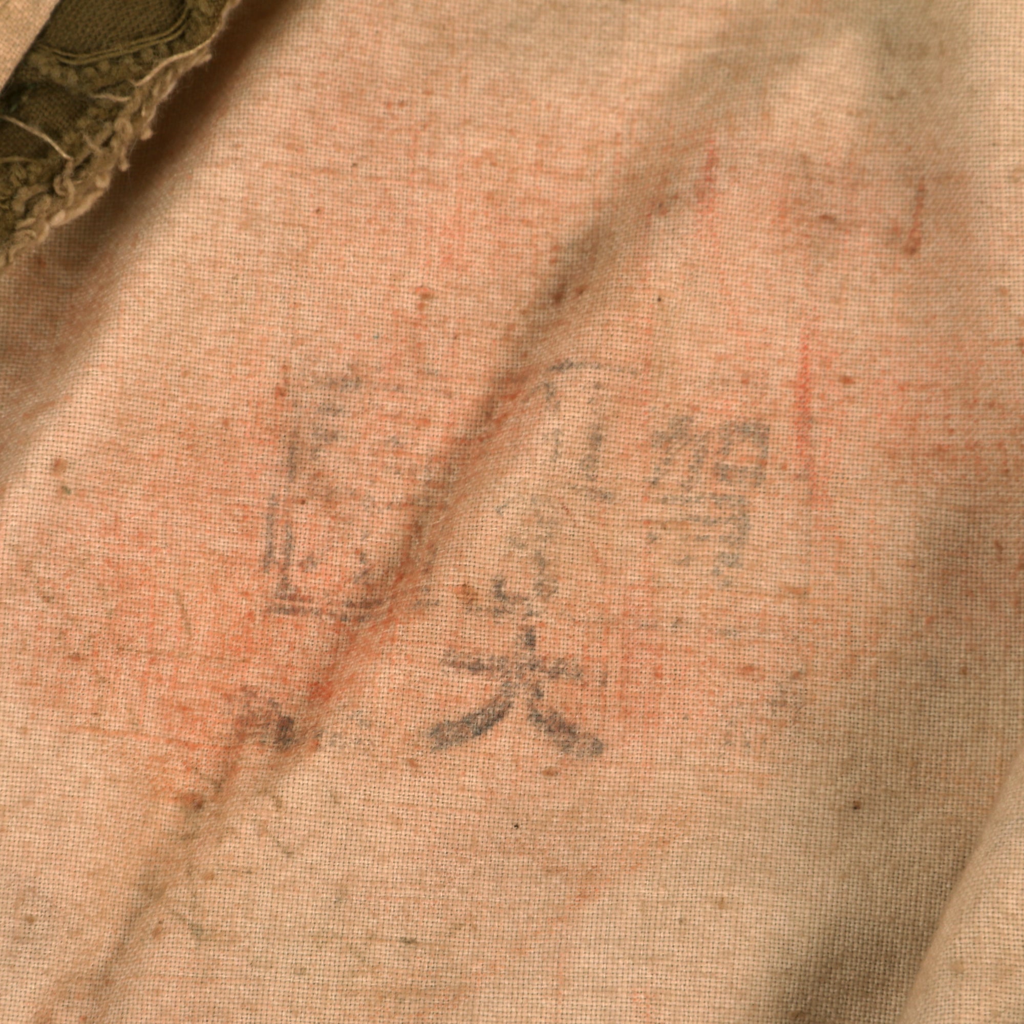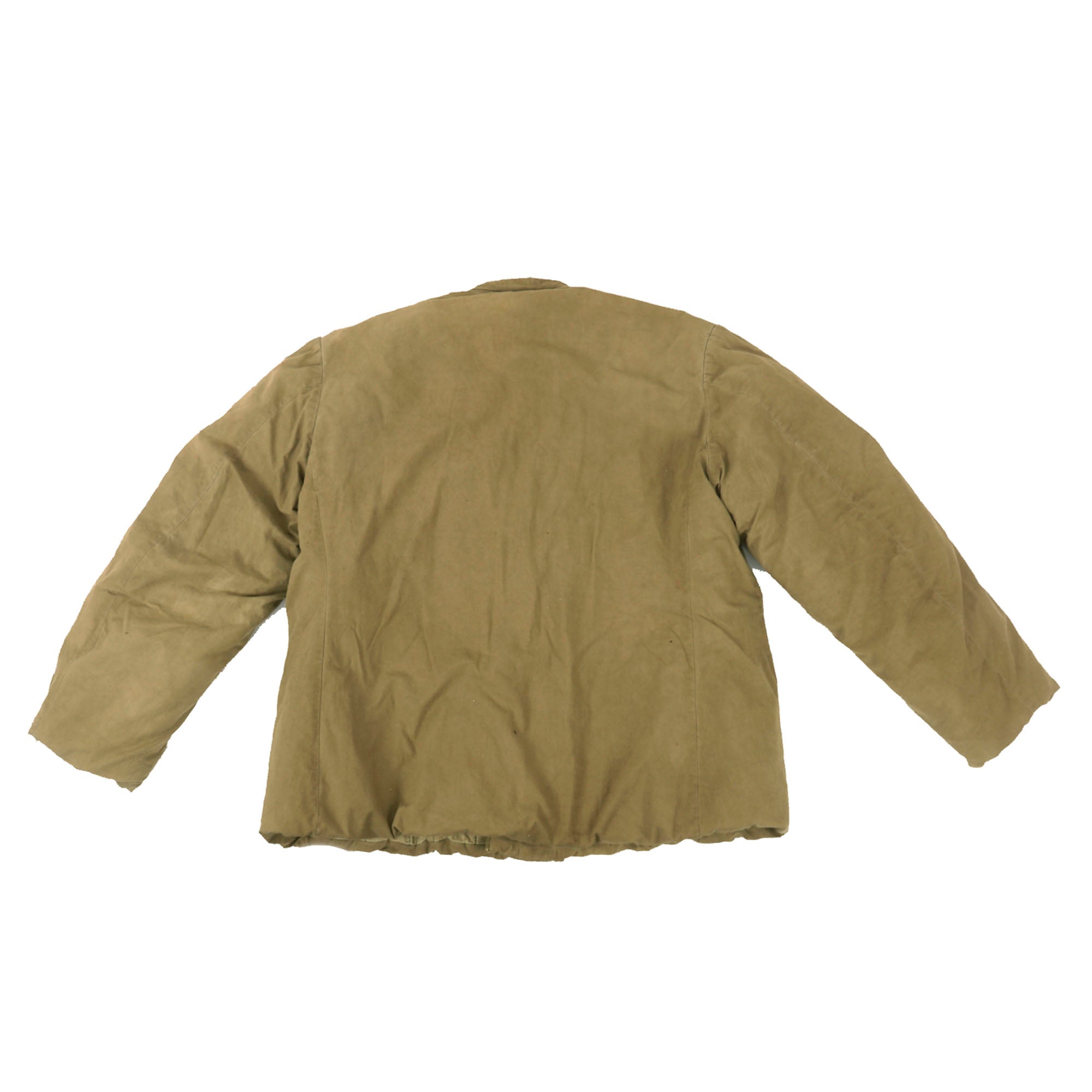 This is a fantastic example of a Chinese-manufactured padded jacket & summer field cap used by Chinese and Korean troops during the Korean War. The jacket has five large buttons on the front which are well-retained. There are no markings on the jacket we can find. This jacket is a great research project as there is likely a name written here.