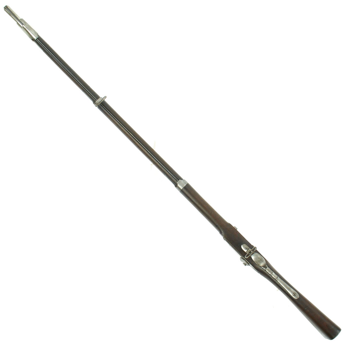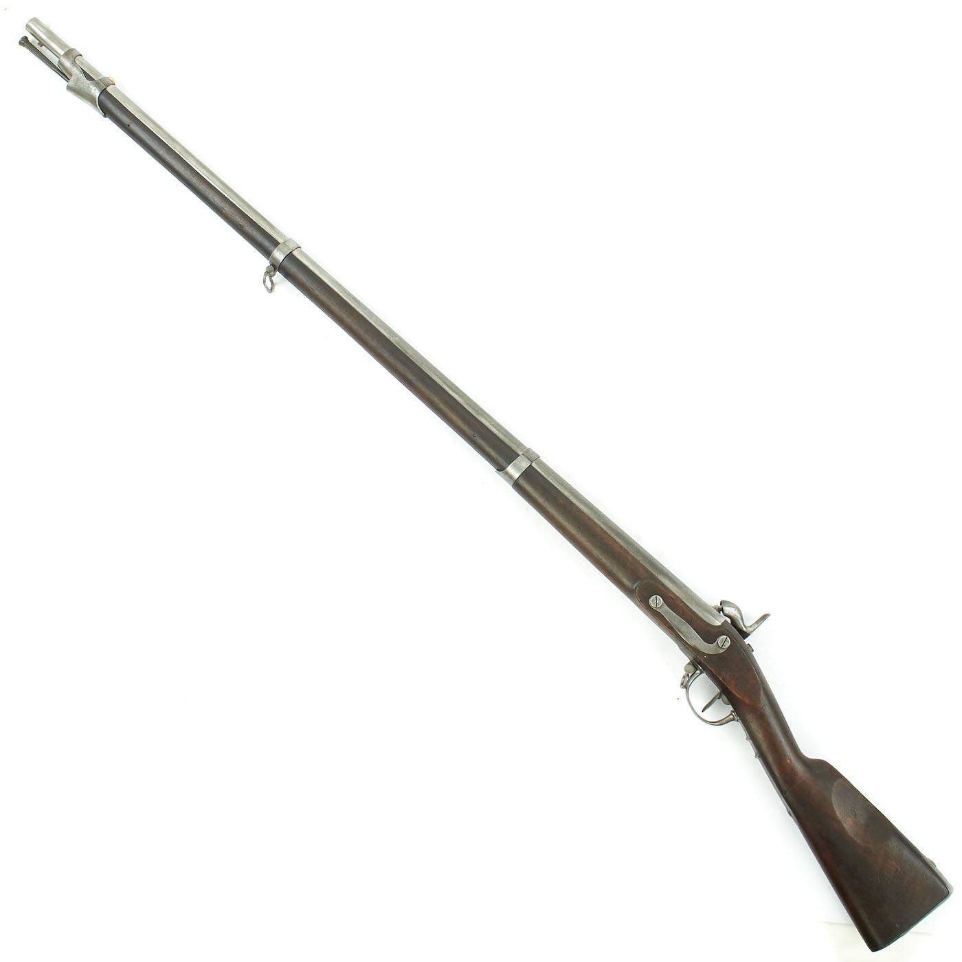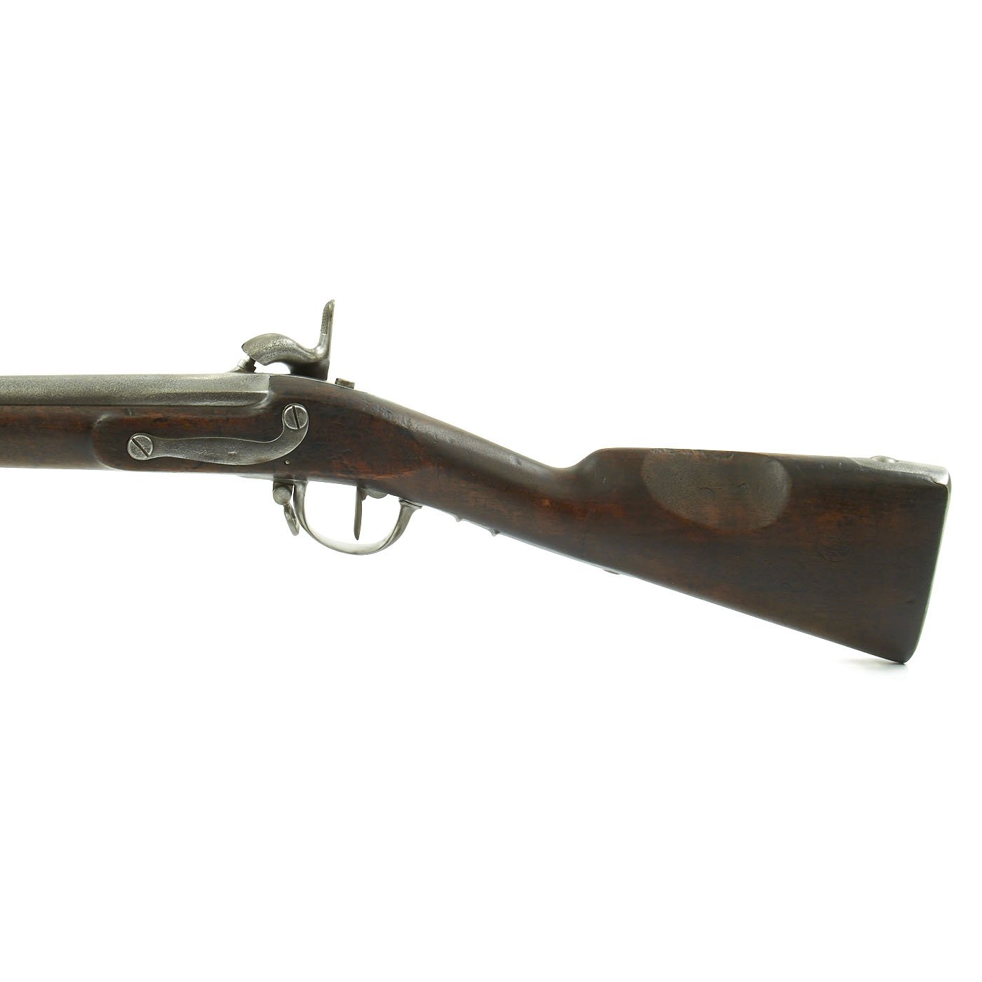 Original Item: Only One Available - As used in the U.S. Civil War. This is very unusual and interesting, being both rifled and in such a good condition. This started life as a French M-1822 "Charleville" Flintlock Musket, part of the long line of French Flintlock musket versions. These were the standard muskets of the line from 1717 until the Percussion Model of 1842. This was one of the last flintlock models put into service. In the years since it was produced, it was both converted to percussion, and now has a very nice .70" rifled barrel, bored out from .69". There are various markings on the barrel and lock plate, but it looks like many markings were removed, as trade with the Confederate States had to be done discreetly. This fine example has definitely had a long and interesting history.