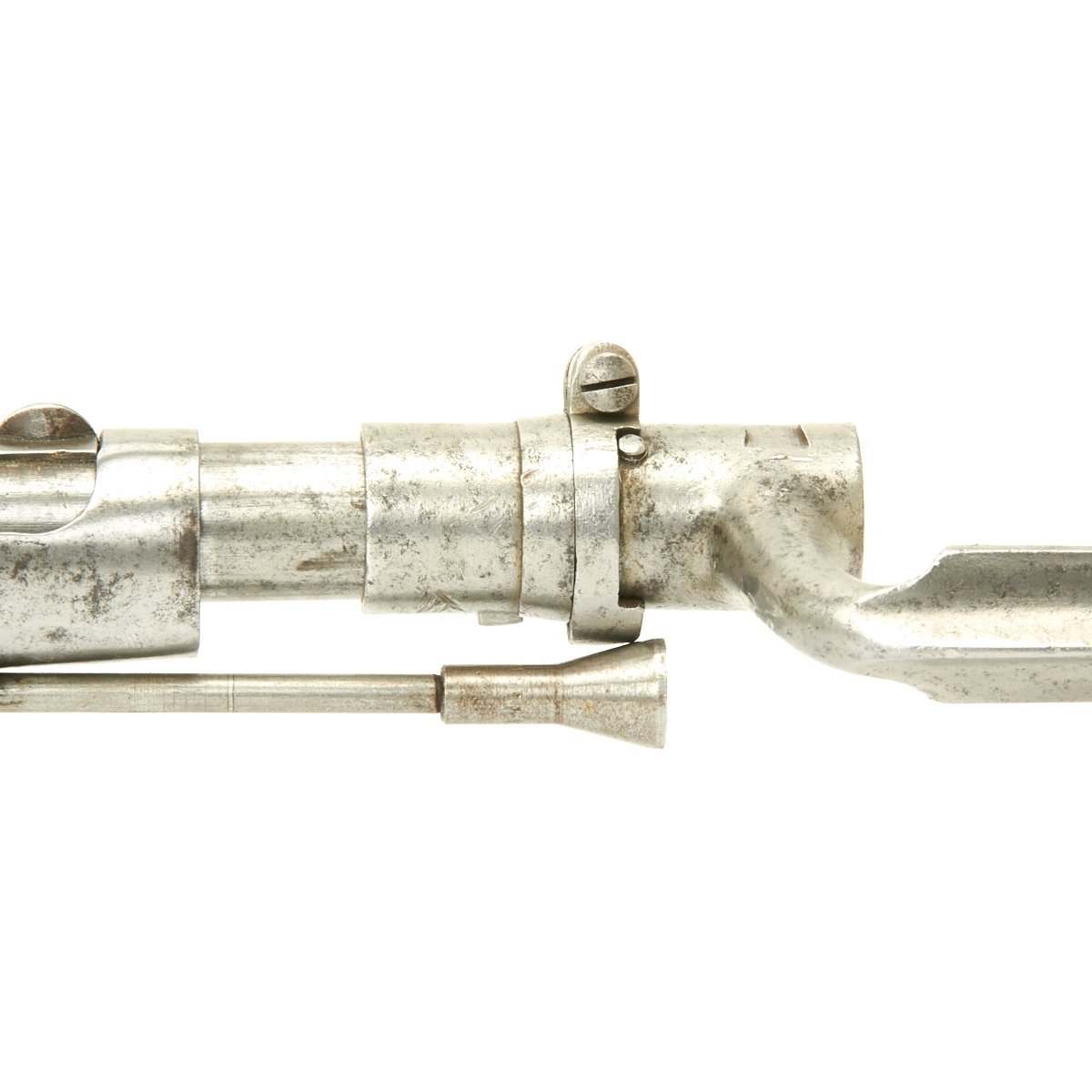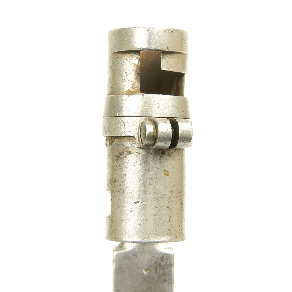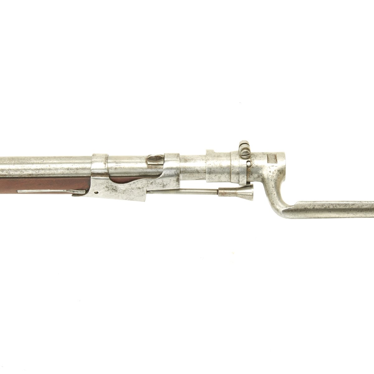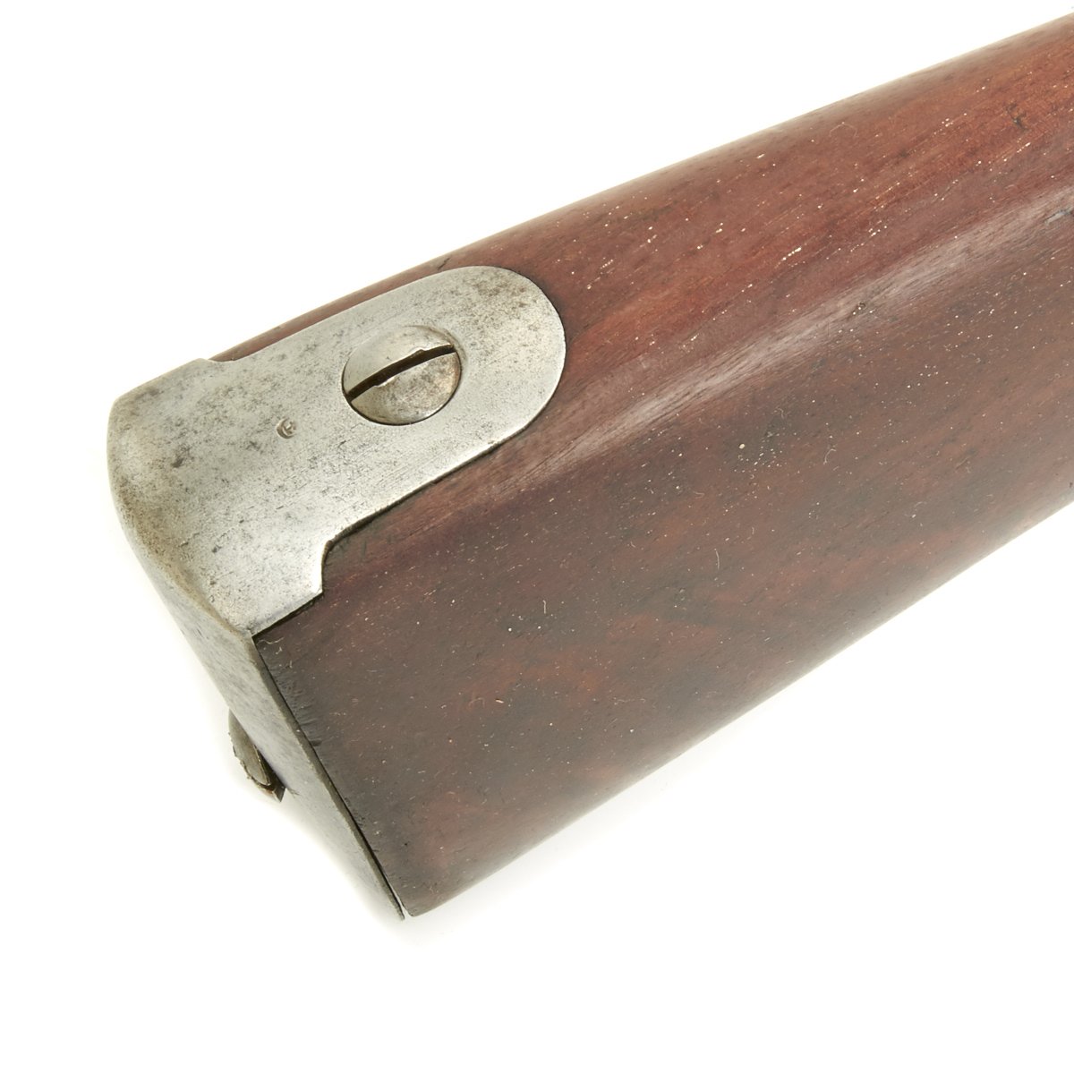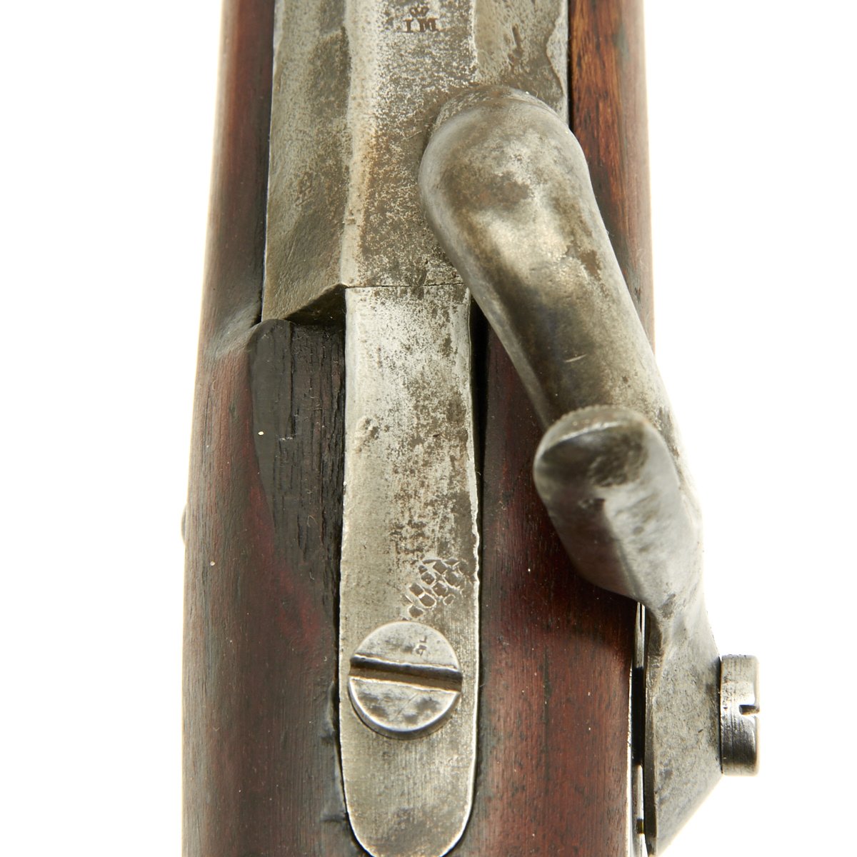 These were usually produced as muskets, but the export trade required rifles, indicating this was made for export to the U.S.. It is fully steel mounted and does bear a maker marking on the lock plate: LEMILLE / A LIEGE. The French usually removed all markings before allowing them to be shipped to a war zone, however some of the Belgian markings survived on the barrel knoxform. There are however no French markings. The barrel is 40" in length and the rifle is 55" overall, an comes complete with a 20 inch bladed socket bayonet.