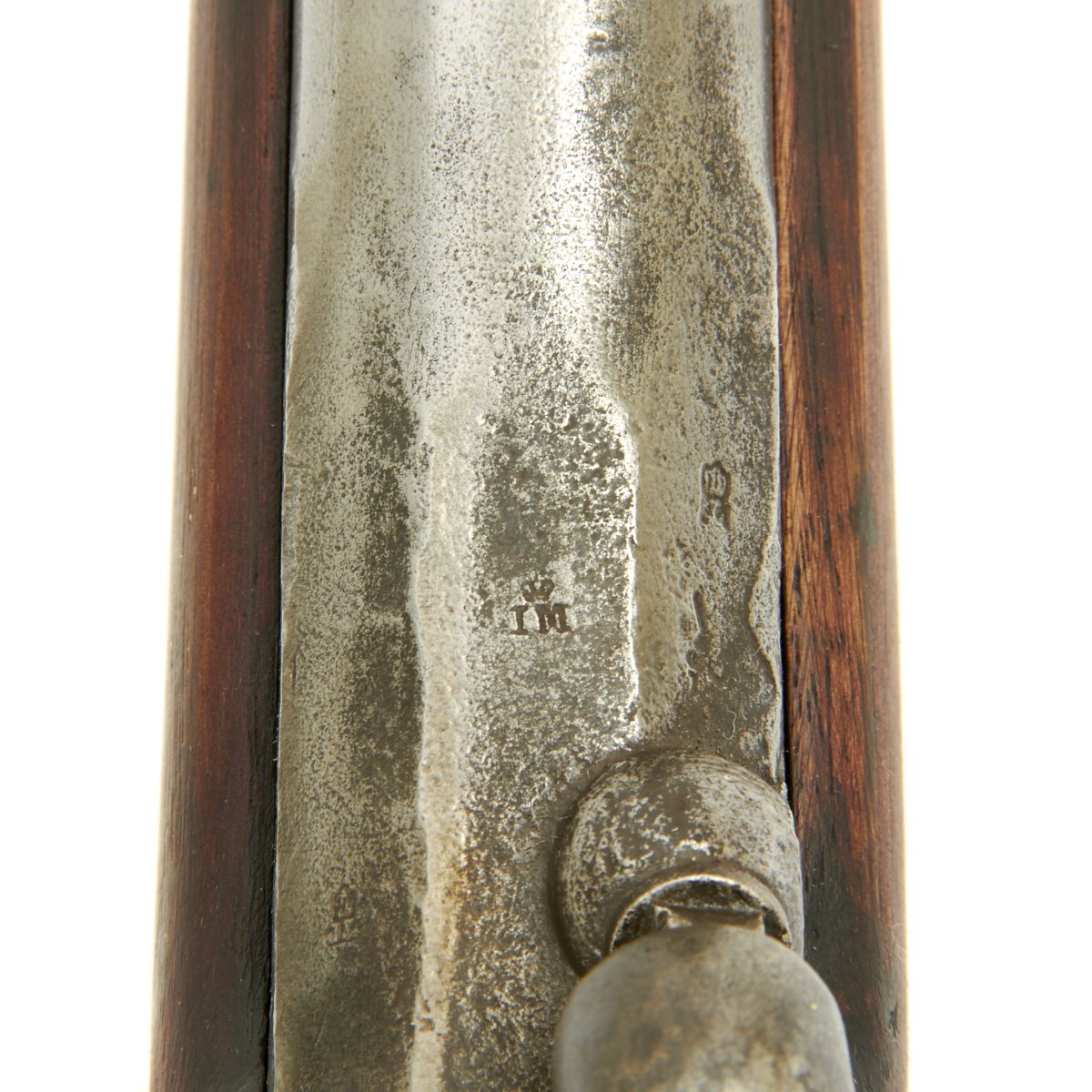 Rifling can still be seen and felt at the muzzle inside the bore. Metal surfaces showing old pitting markings overall but in great display shape having been fully cleaned. The wooden stock is in excellent used condition, with a great color and patina.