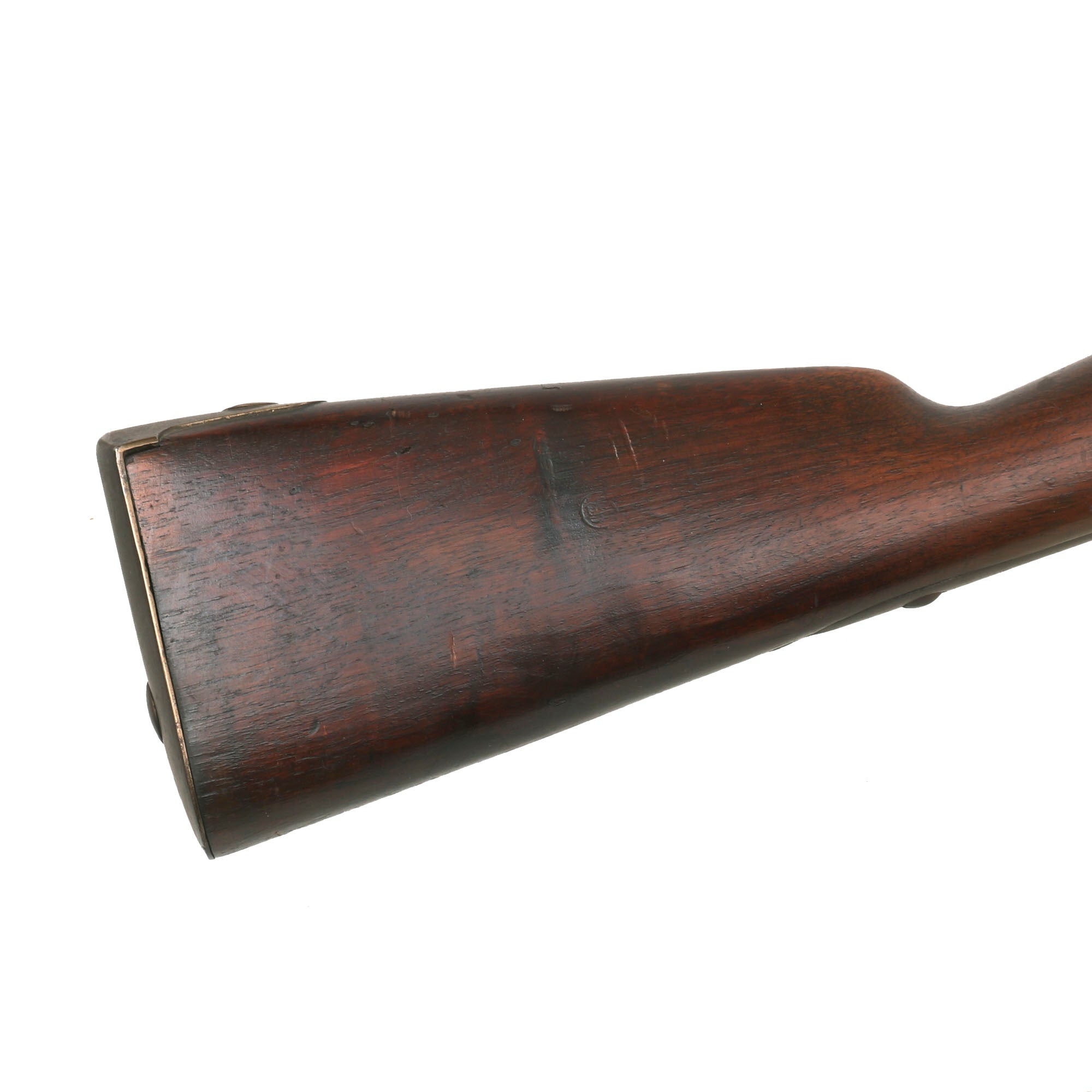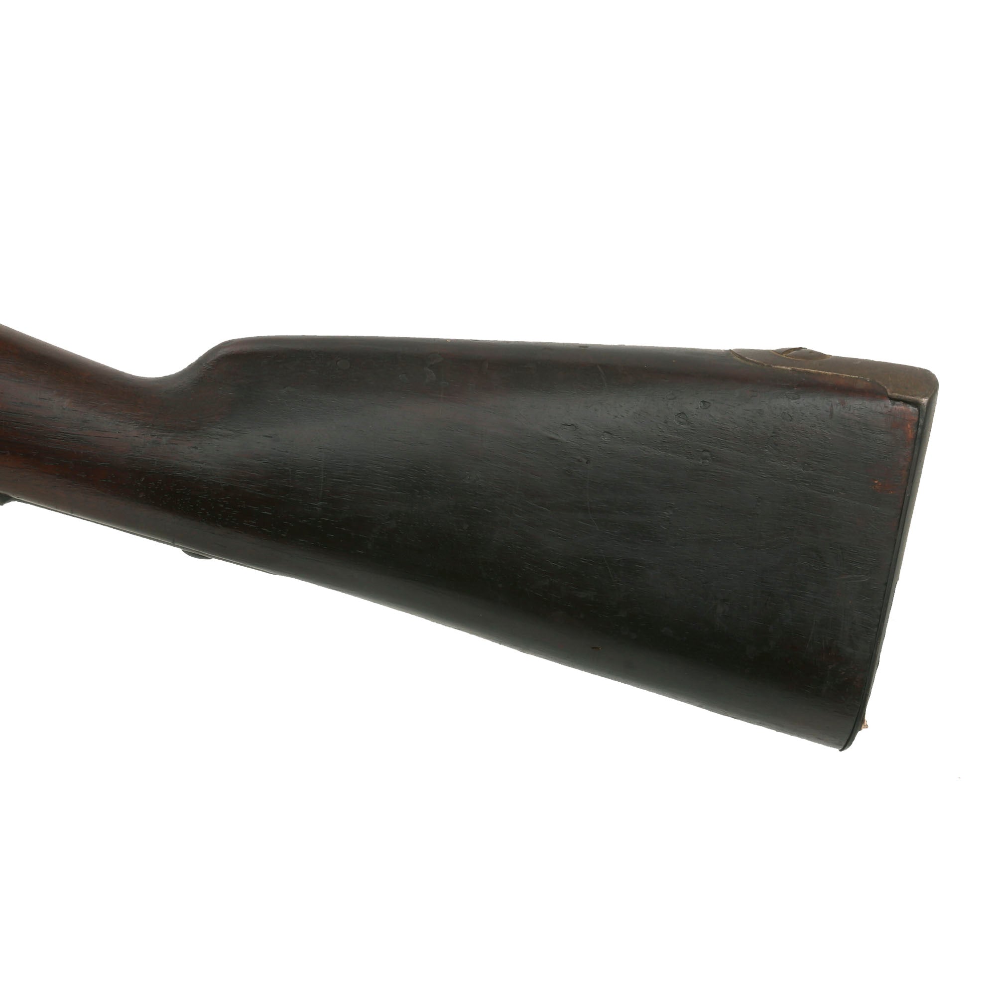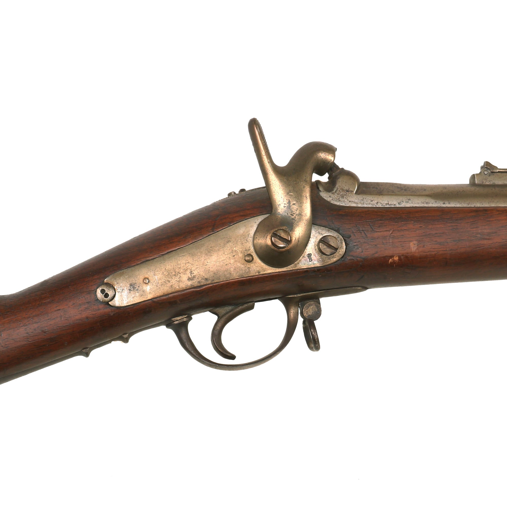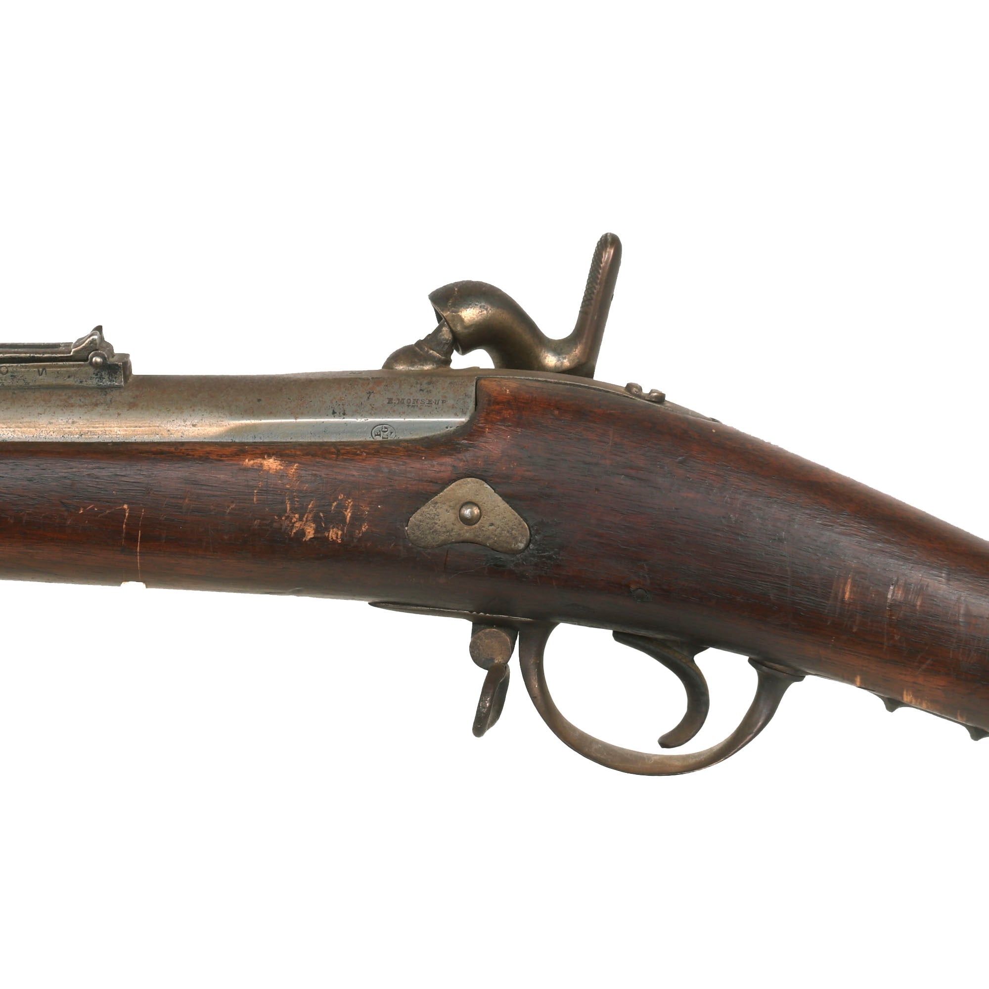 Original Item: Only One Available. This is exactly the type of "Rifled" Musket that the Confederacy imported from Western Europe before and during the Civil War. Here we have a French Model of 1842 Rifled Musket with a back action lock. These were usually produced as smoothbore long muskets, but the export trade required rifles, indicating this was possibly made for export to the U.S. Civil War Market. This example has a lovely "attic fresh" look to it, with dried grease and patination on the metalwork, and a lovely aged look to the wood. Aside from a cursory cleaning, we have left it as found to preserve the beautiful patina of age.