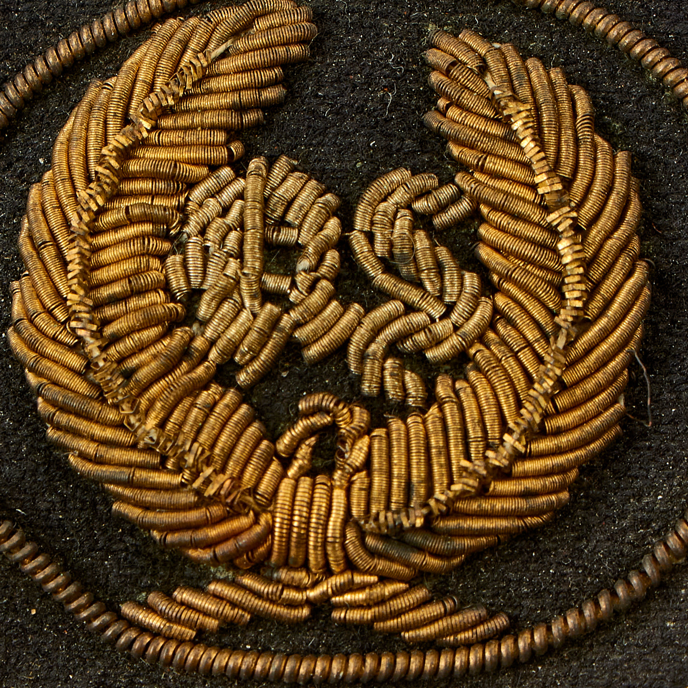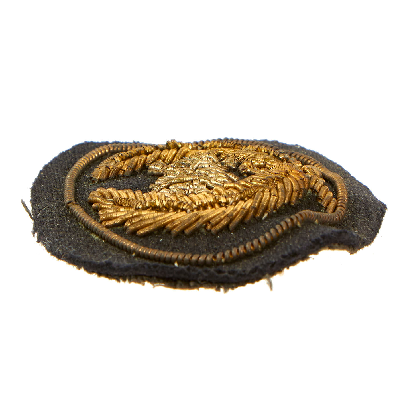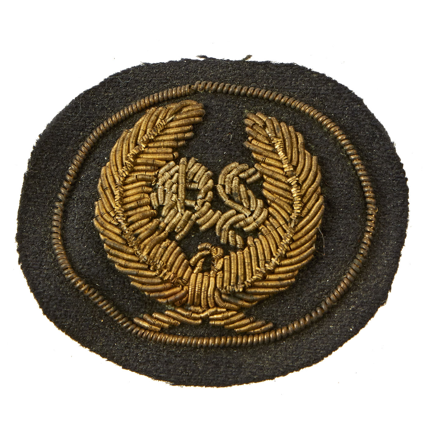 The device is the typical style as used during the Civil War, and worn on all versions of headgear worn by Federal Officers during the war. The insignia is embroidered on a dark blue wool with fine bullion embroidery in gold and silver. The workmanship is second to none, and the condition rates as excellent, only showing signs of mellowed patina from being in storage over the last 150 years.