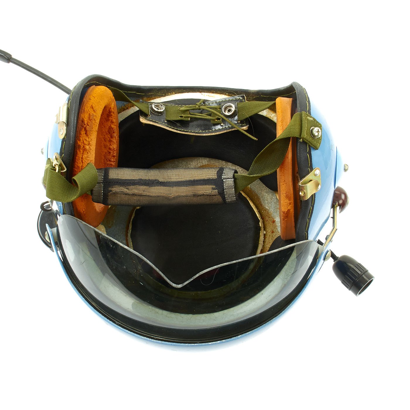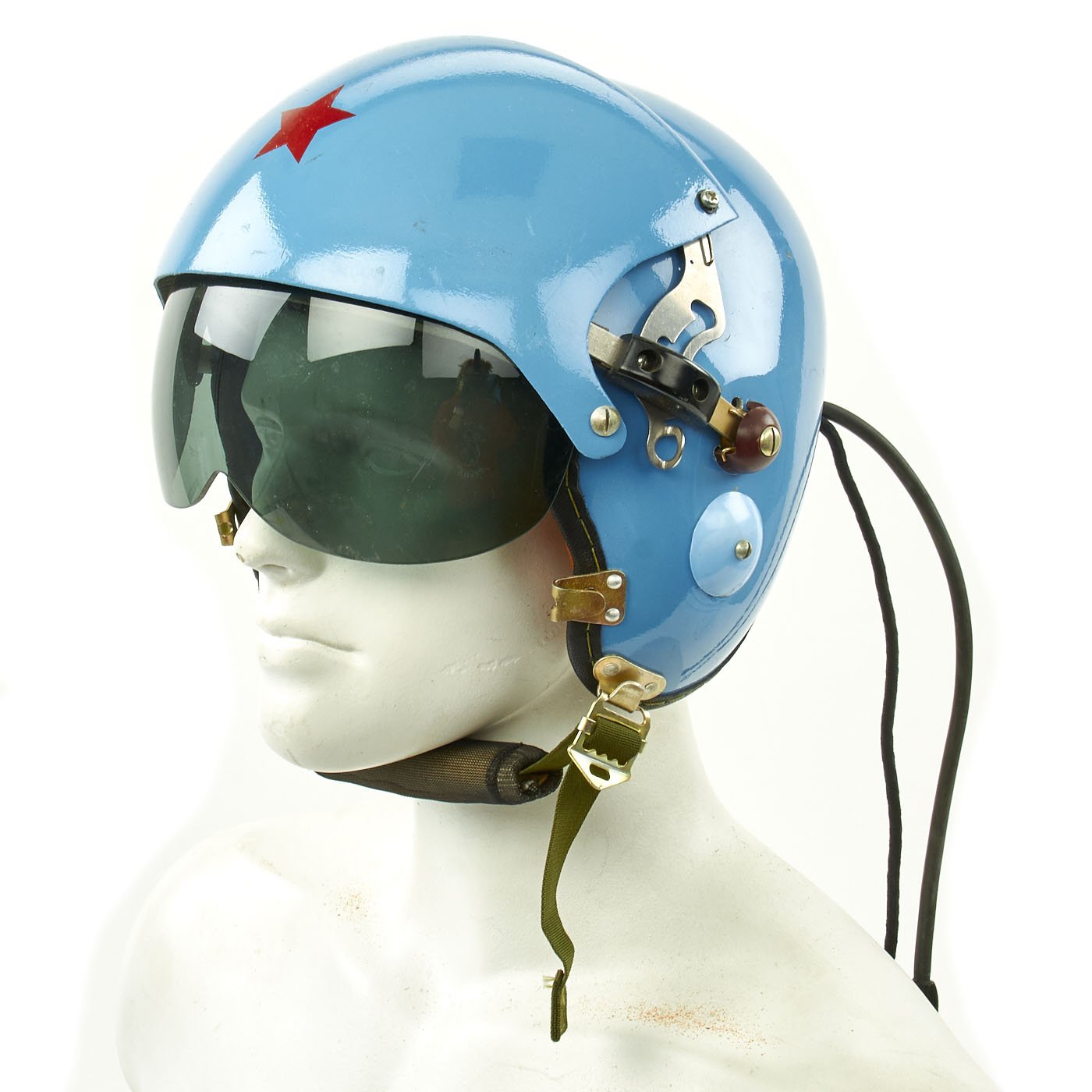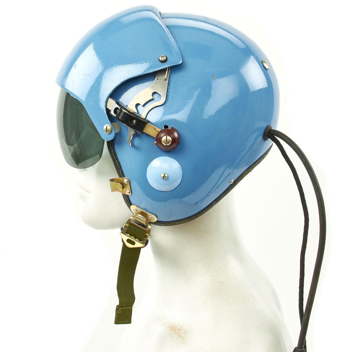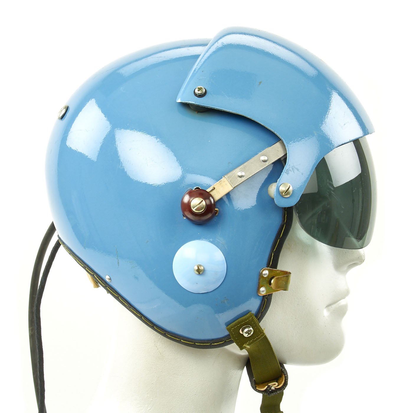 Original Item: Only One Available. This is a very good condition Chinese TK-2 Flight Helmet which was standard issue for Chinese fighter jet pilots. This flight helmet has a single dark visor, which can retract, foam ear cups and a chine strap. There are no avionics or chinstrap included. Size is approximately a US 7 (56cm).