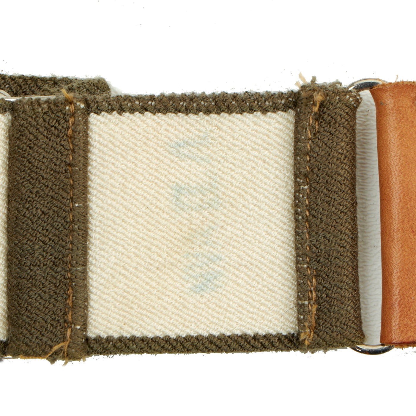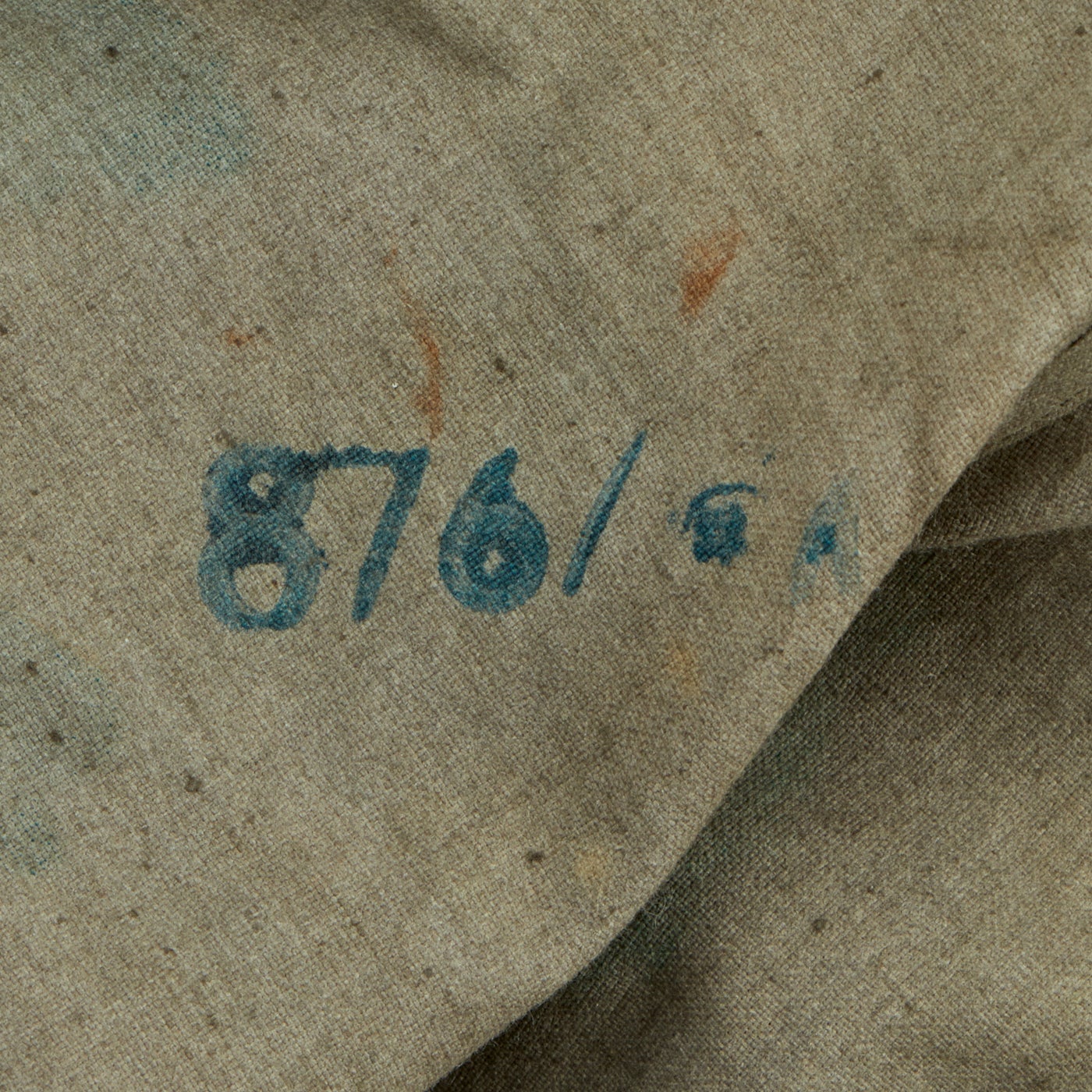 This unissued condition set of Blumentarn is in excellent condition. There are no holes, tears or stains on any piece of this grouping. All buttons are intact. The trousers even come with an issue set of suspenders. Jacket is dated 1963, and the Trousers 1962. Both Smock and Trousers are nicely marked. The cap is roughly a size 7 ⅛ and there are no markings that could be found. Smock (jacket) is marked size “4”, and the trousers size “3”.