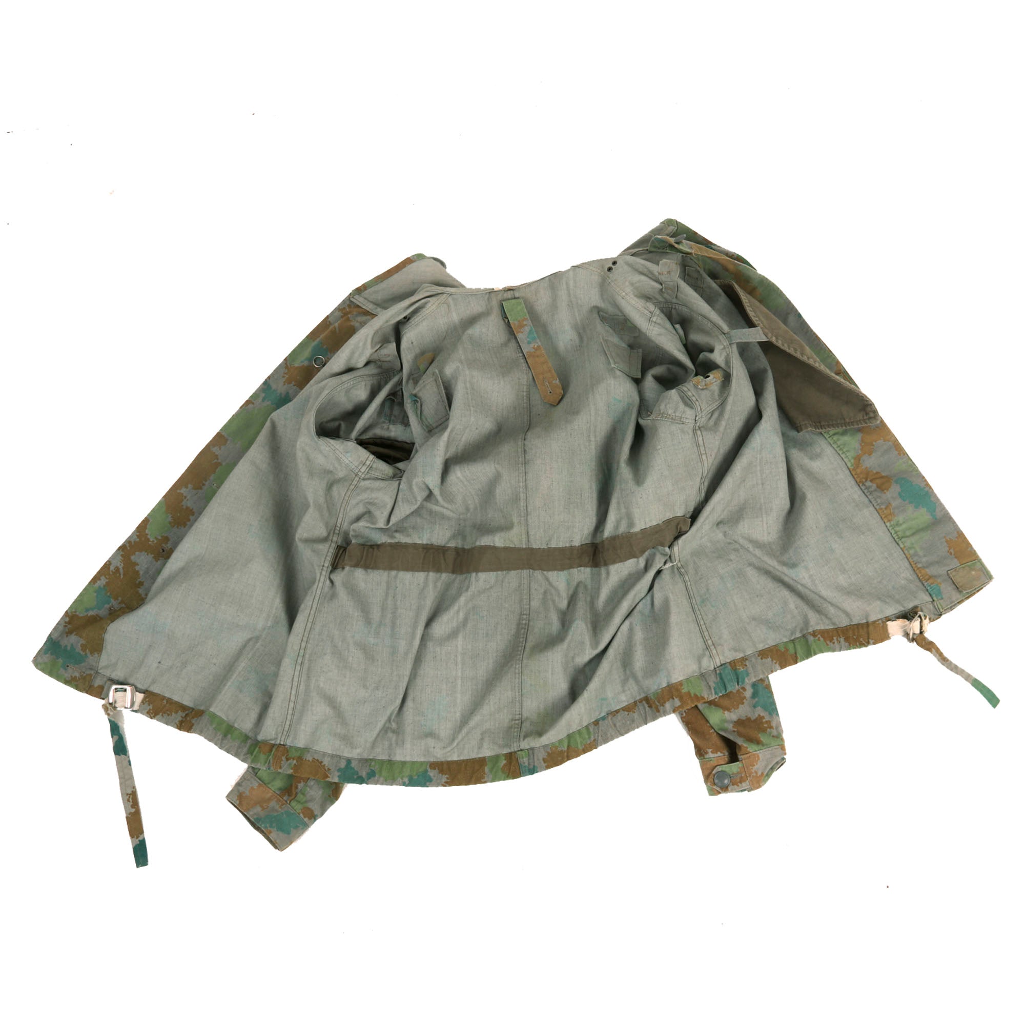 Original Items: Only Ones Available. The East German Blumentarn camouflage pattern is highly coveted by collectors worldwide. The early DDR East German Blumentarn, in particular, is one of the most sought-after patterns. We are pleased to have located an exceptional set of this pattern in a large size. This set is in near pristine, unissued condition, making it a rare find.