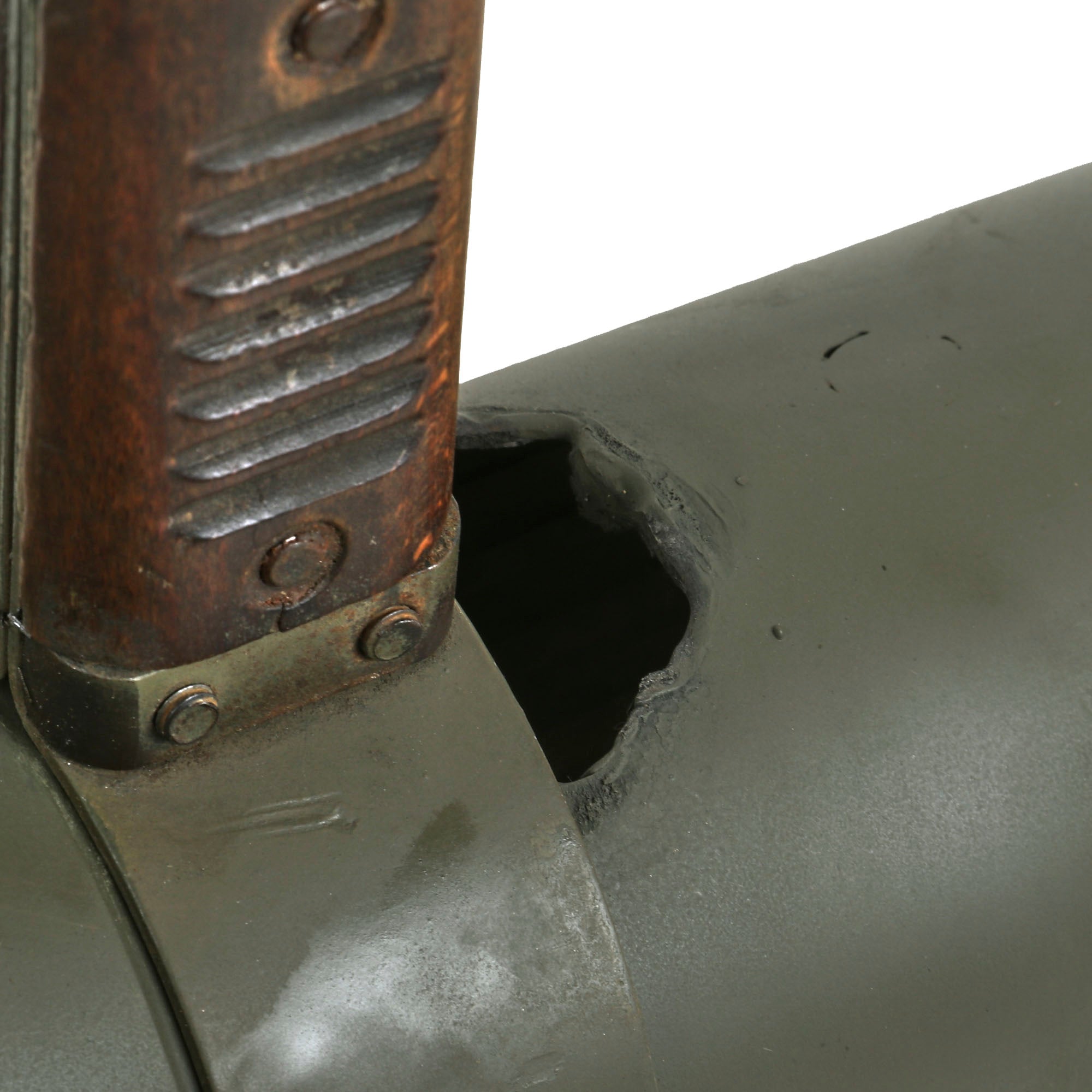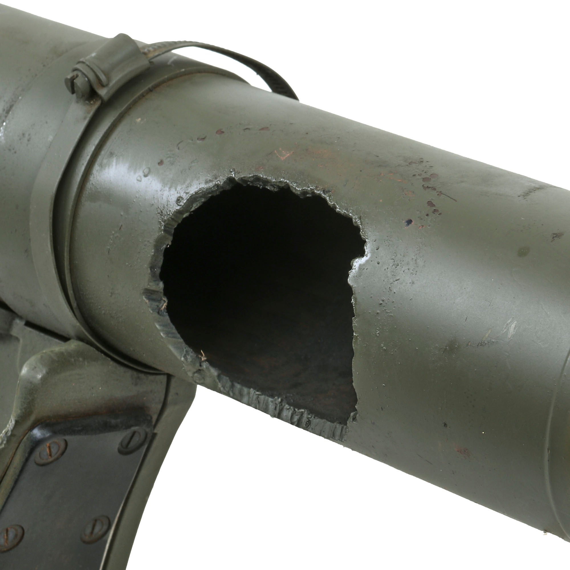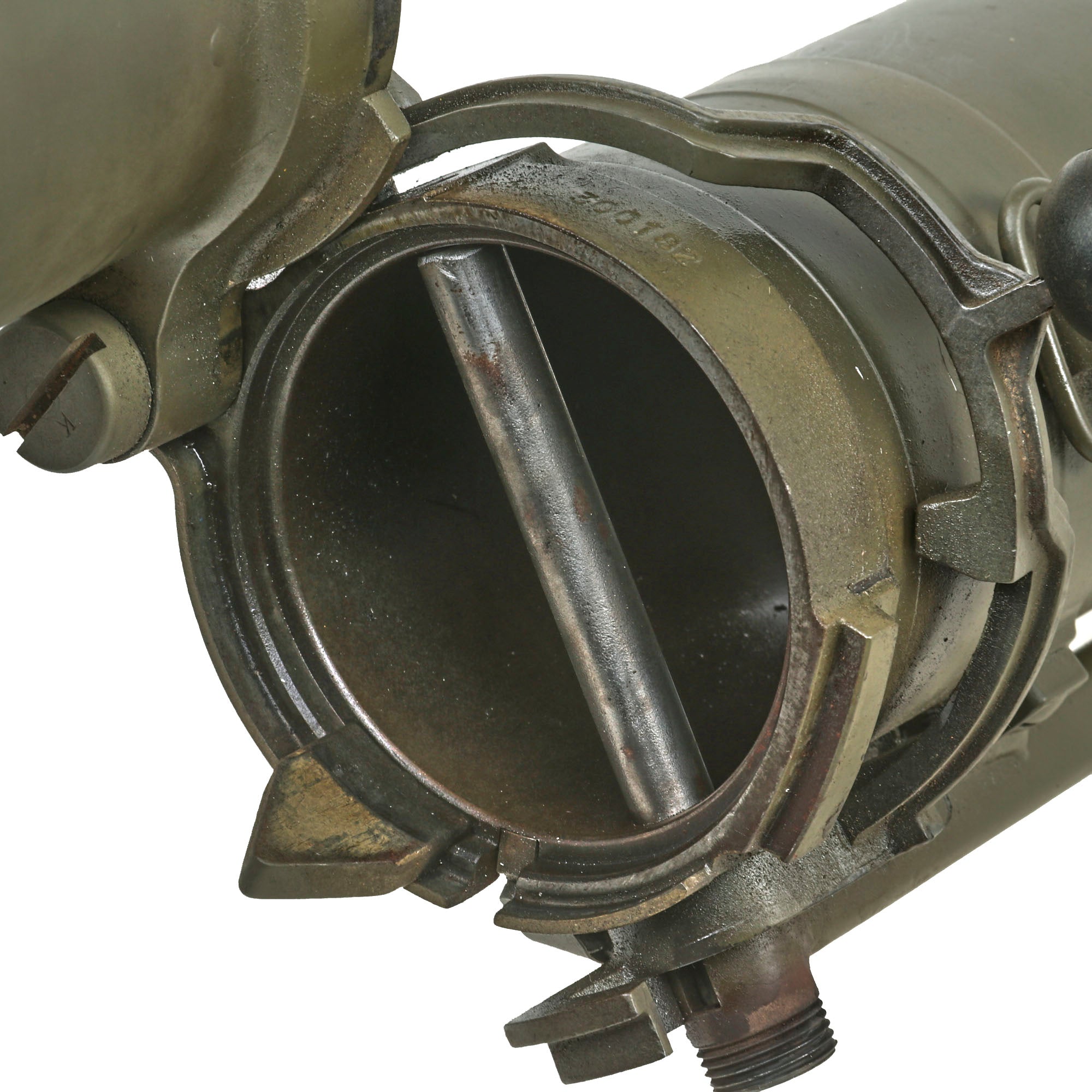 Original Item: Only one available. This example is totally inert and incapable of firing having been deactivated in accordance with guidelines provided by the BATF. A hole has been cut on the rear left the same diameter as the bore, as shown in the pictures, which is now covered by the left side pad. The firing pin has been removed and the firing pin retainer drilled out with a 1/2" bit through the other side, and a 1/2" steel bar welded across the bore in its place. All other mechanisms have been rendered inert.
