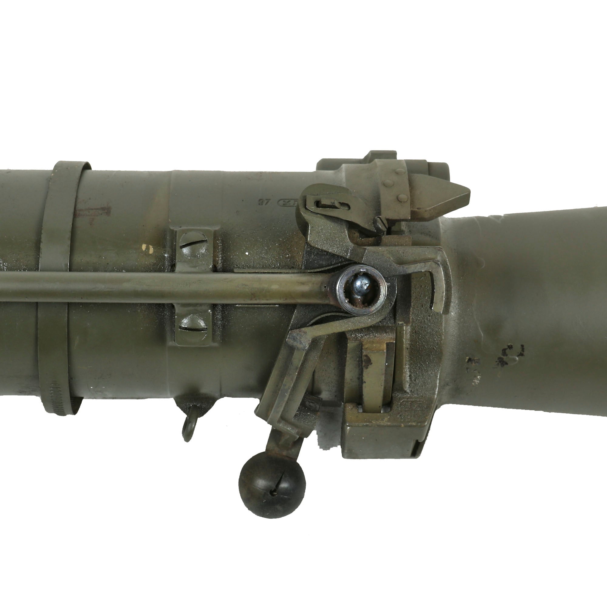 There were several versions of the Carl Gustaf 84mm Recoilless Rifle released, and this is the M2 "Export", introduced in 1964 as an improved, lighter and slightly shorter version of the original M1 for the export market. It quickly replaced the original version, and was the version that really popularized the system during the Cold War Era. There are some markings in Hebrew near the rear blast nozzle, so we believe this example saw use in Israel.