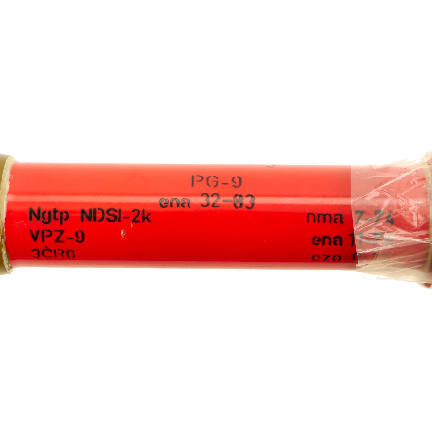 These were designed to be the exact weight and size of the real thing, and were used for loading drills with the SPG-9 recoilless gun, as doing loading drills with live ordnance was definitely not a good idea. The rockets have fold out fins, held in place by a cardboard sleeve, and there are additional gaskets and spacers in the set.