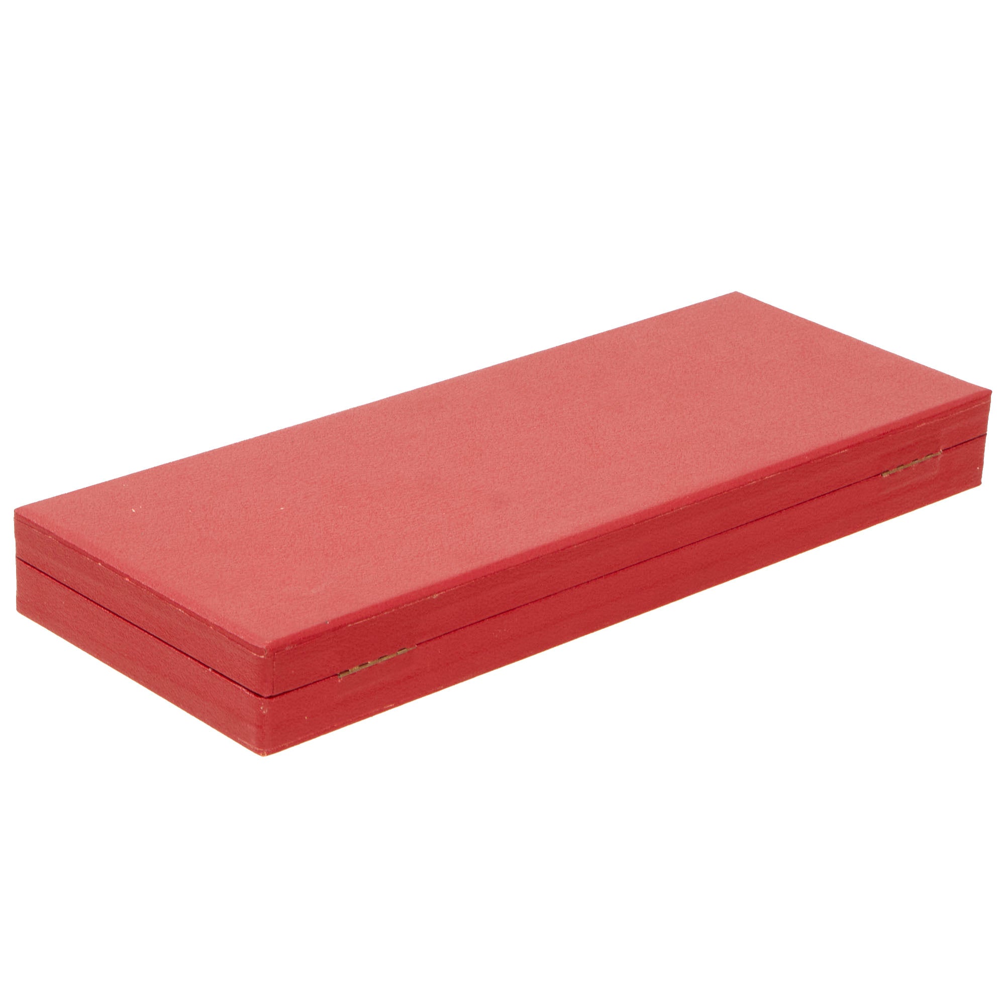 These gold-plated presentation daggers were boxed in white goat skin-covered cases, with a gold colored DDR crest, with the motto “For the Defense of the Workers and Peasants Power”, embossed on the lower right of the case lid. Some were also found being presented in cases similar to this red velvet example.