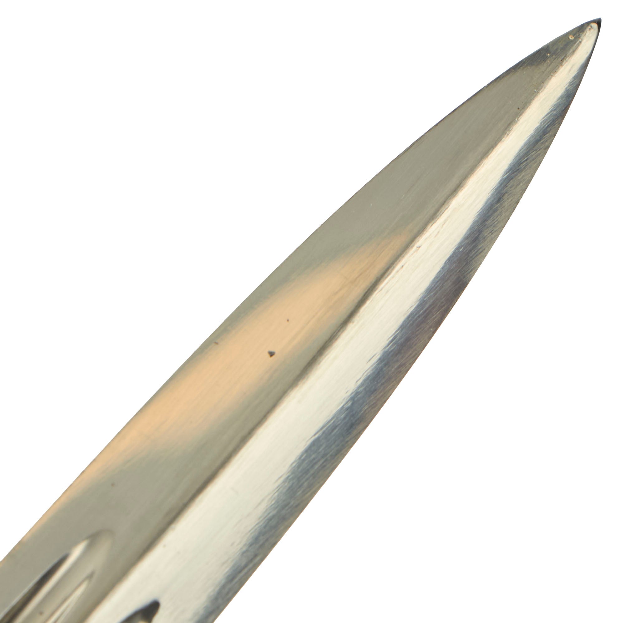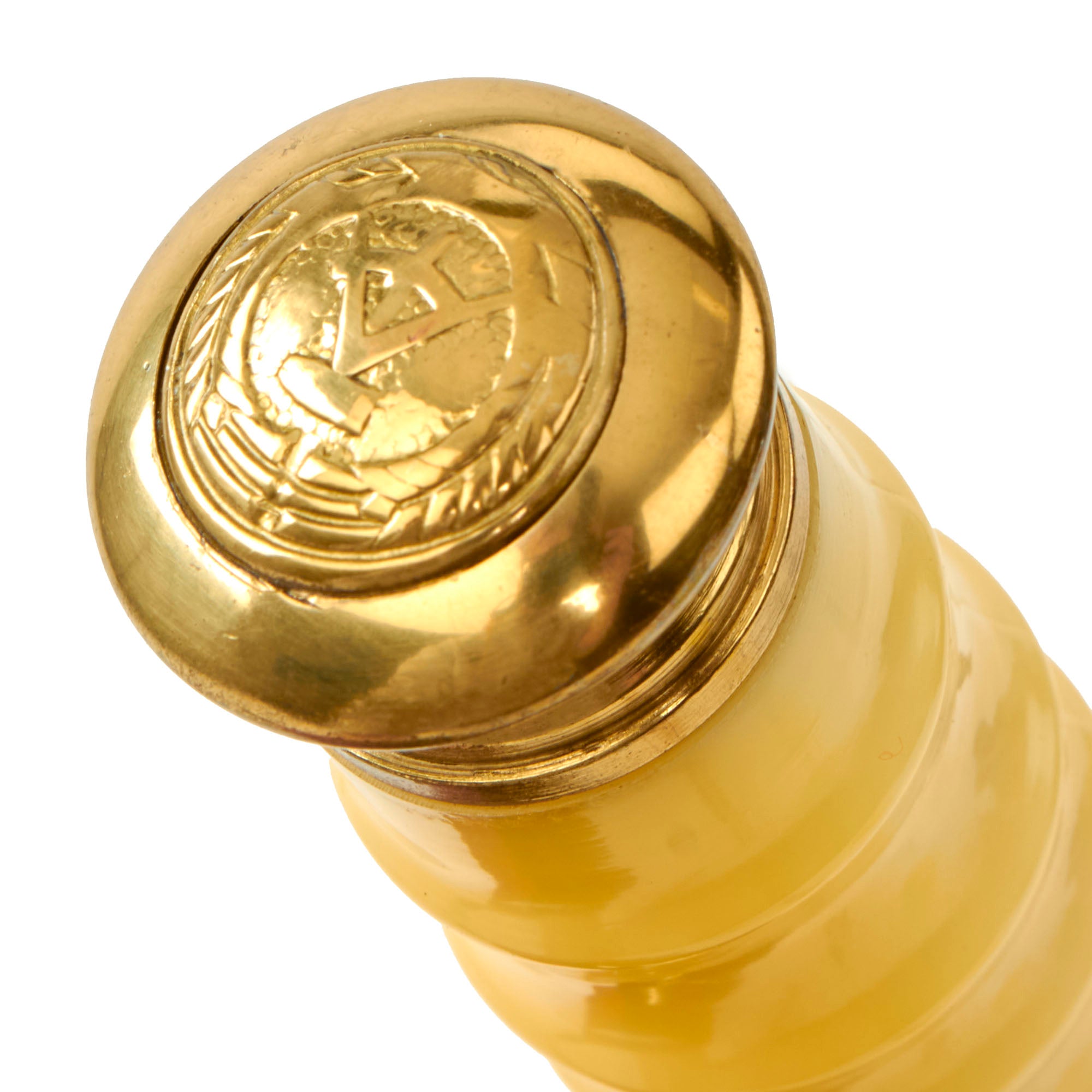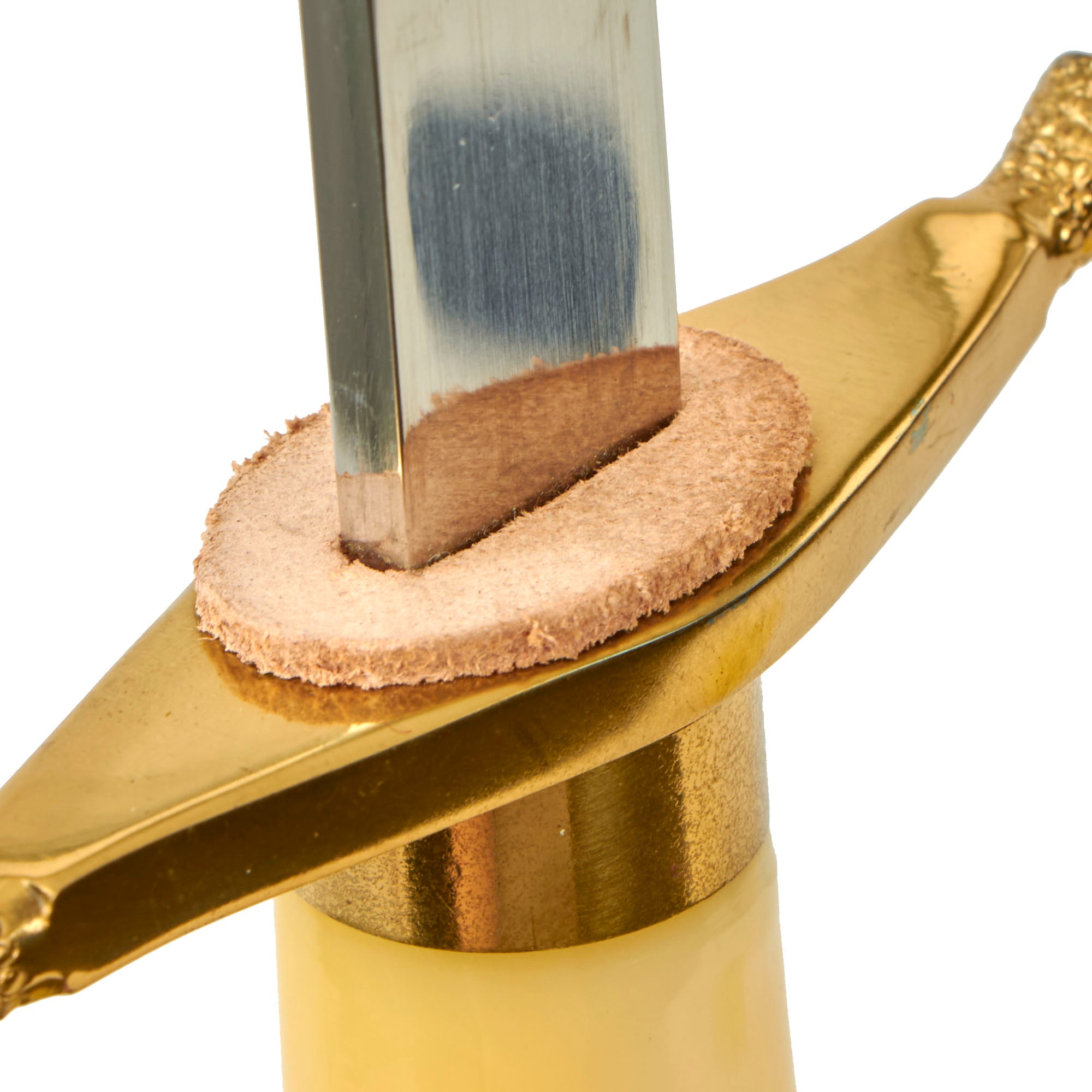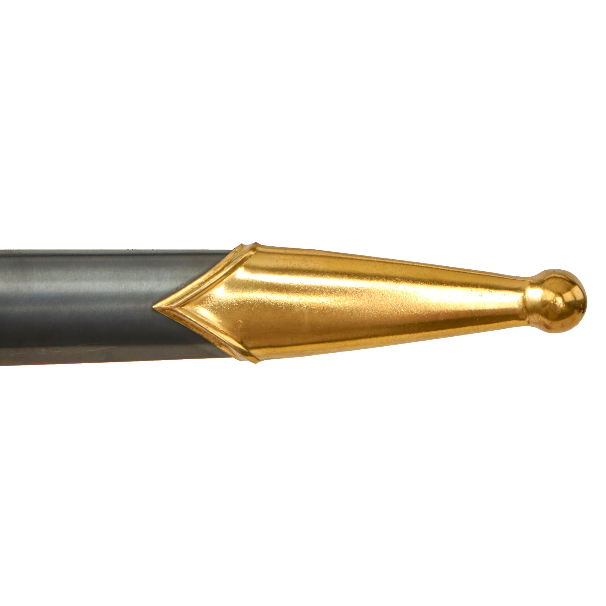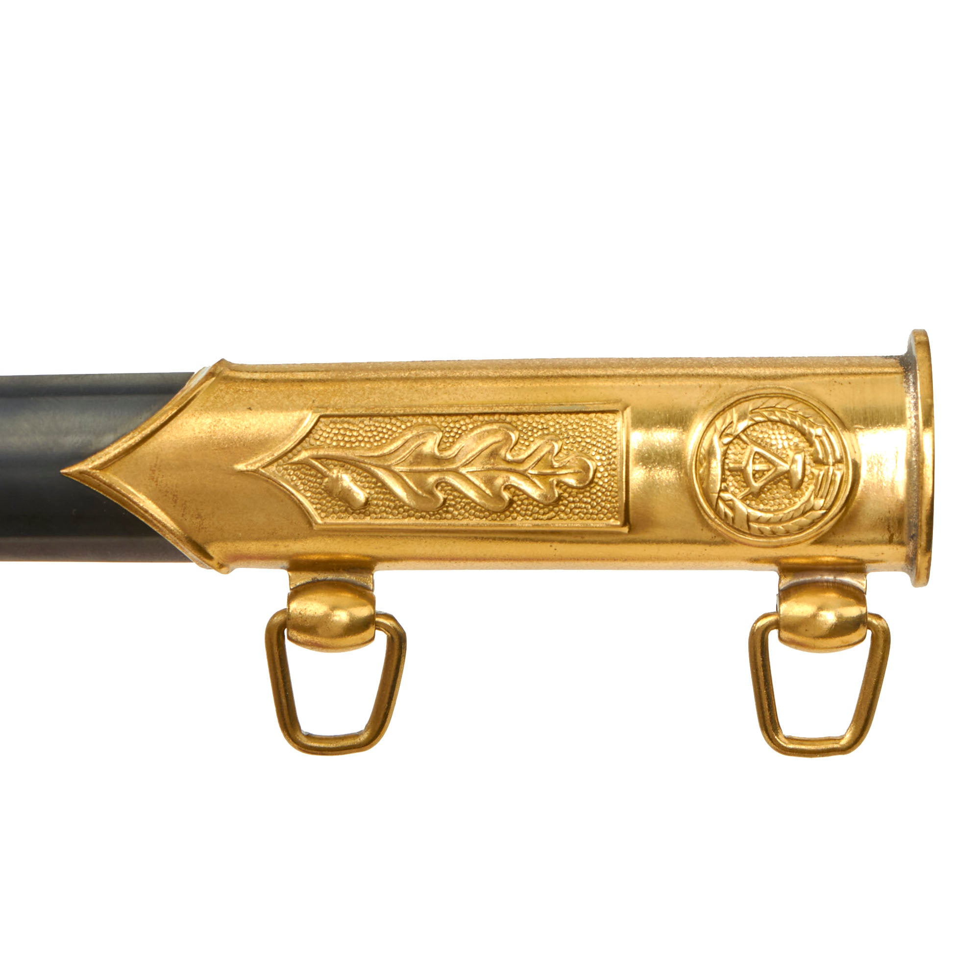 Some of the gold dagger scabbards were engraved and some were not like this example. The only two types of engravings now known to be legitimately documented and accepted for DDR daggers are “Presented by the Minister for National Defense of the DDR”. Regular officers' daggers are also documented as having these same presentation inscriptions from the minister of defense. Some of these were engraved after the collapse of the DDR. An example of this post-collapse engraving would be an inscription with a West German Spelling. Fortunately this was not engraved.