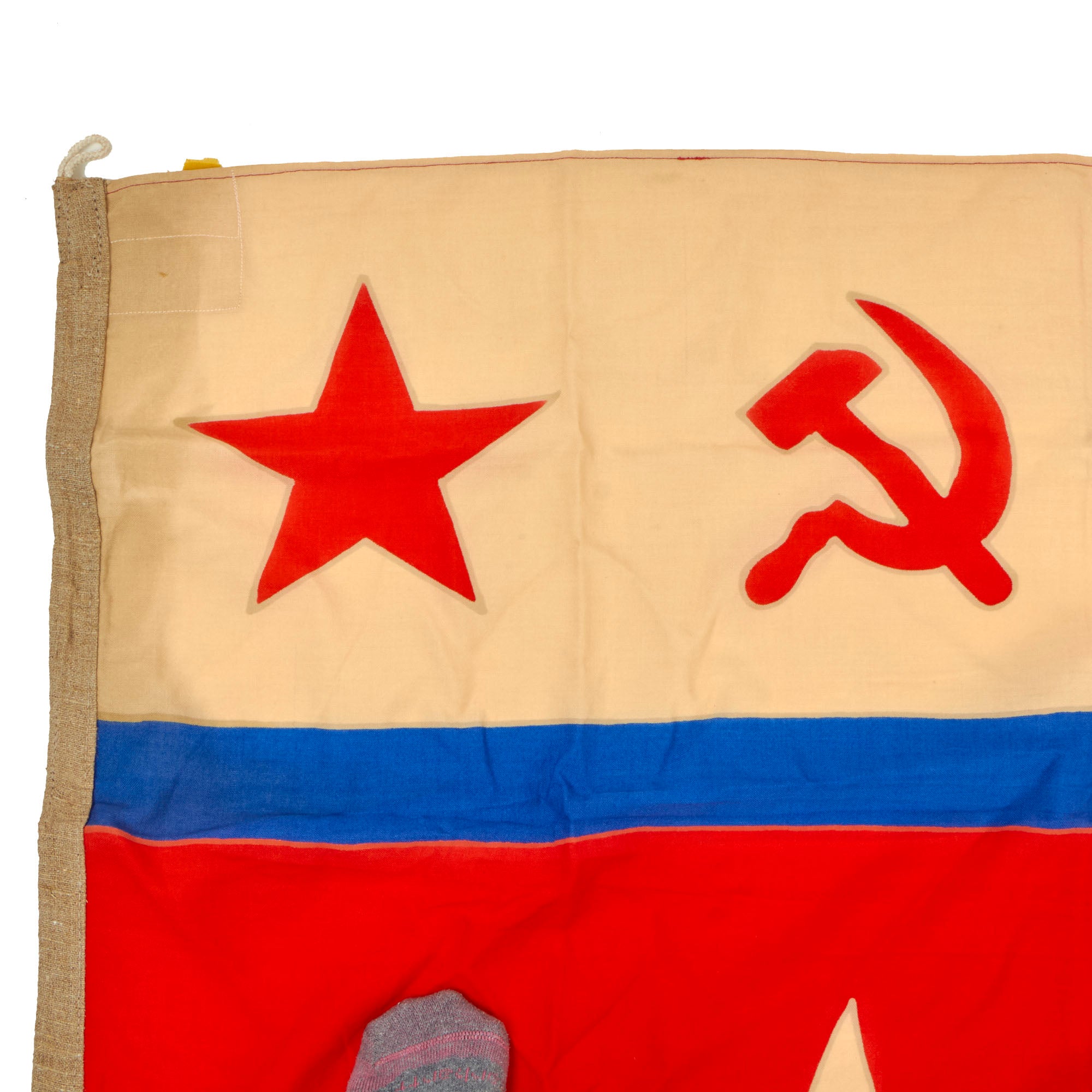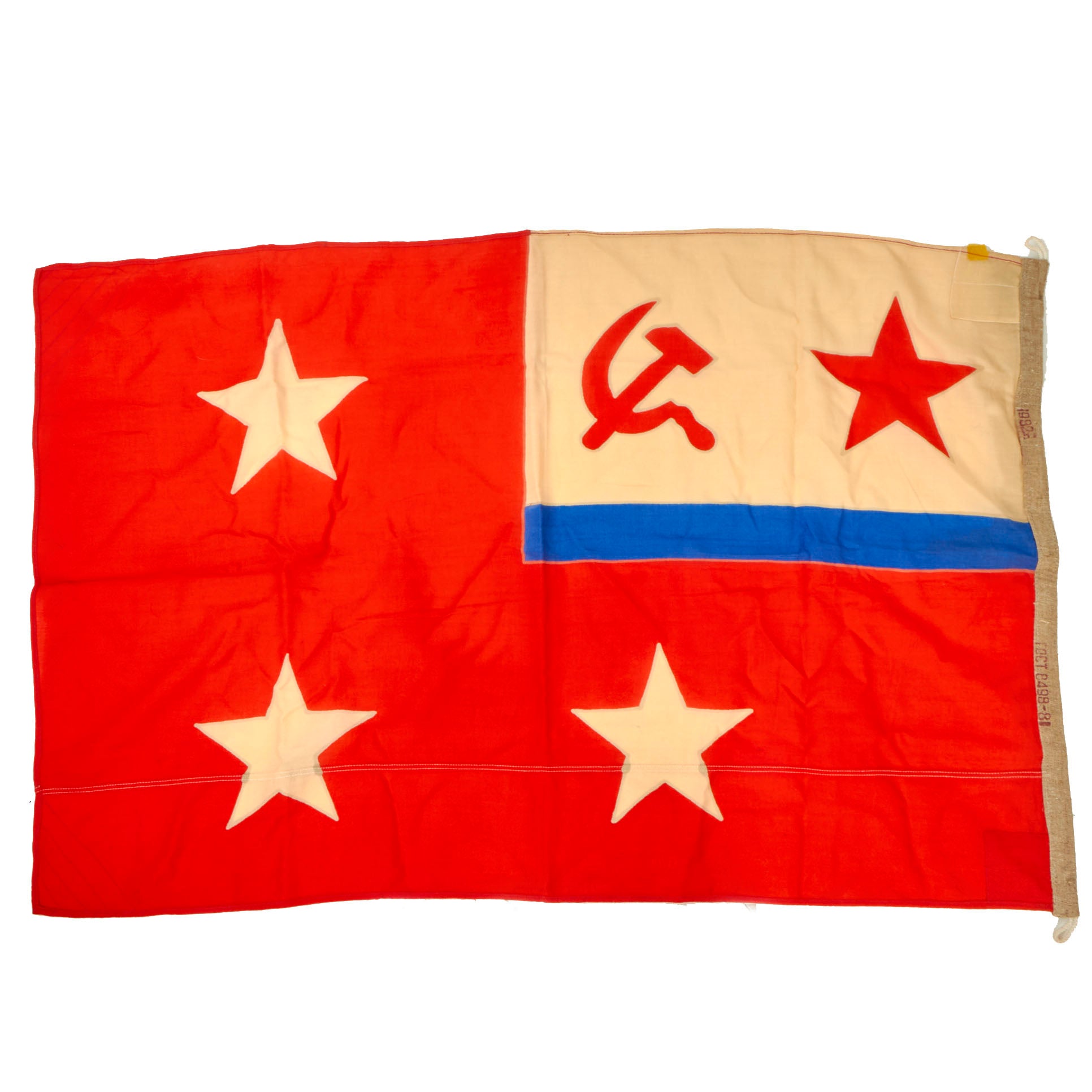 Original Item: Only One Available. This is a relatively rare example of a Soviet Cold War era Naval flag, as flown by the ships and vessels who housed the Fleet commander and is dated 1983. This flag was used from May 27, 1935 to July 21, 1992. The flag measures 56” x 35” and appears to have never been used and is in near mint condition.