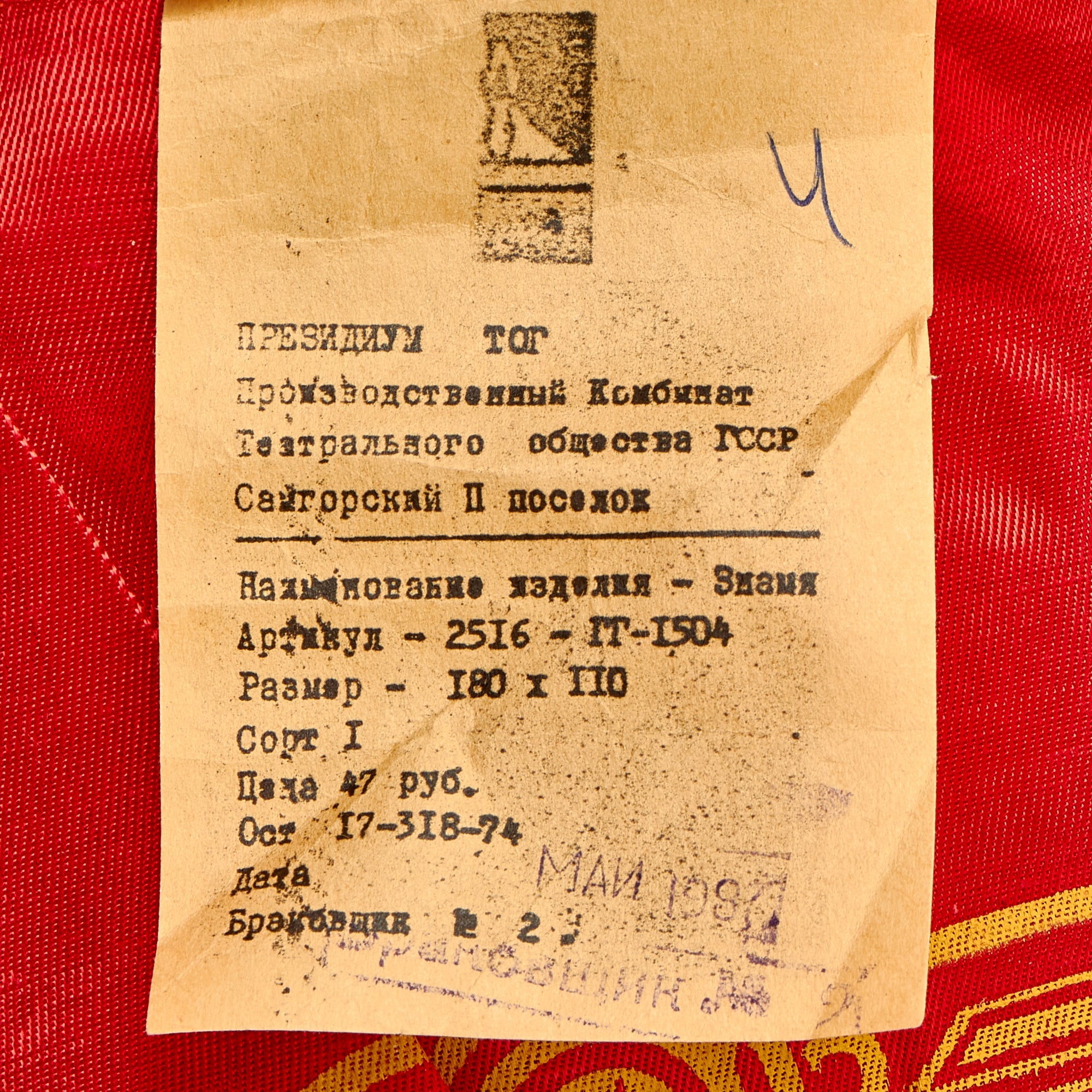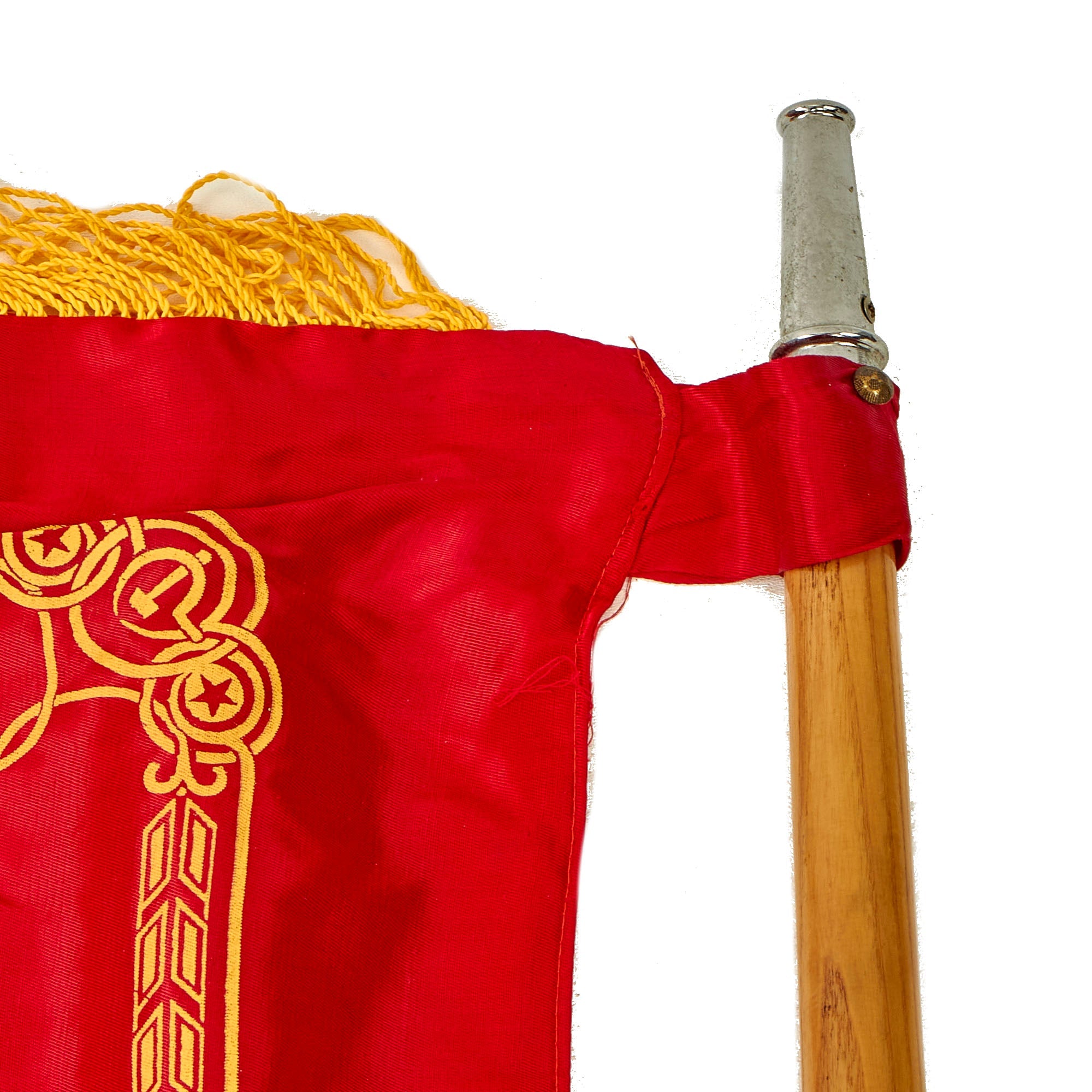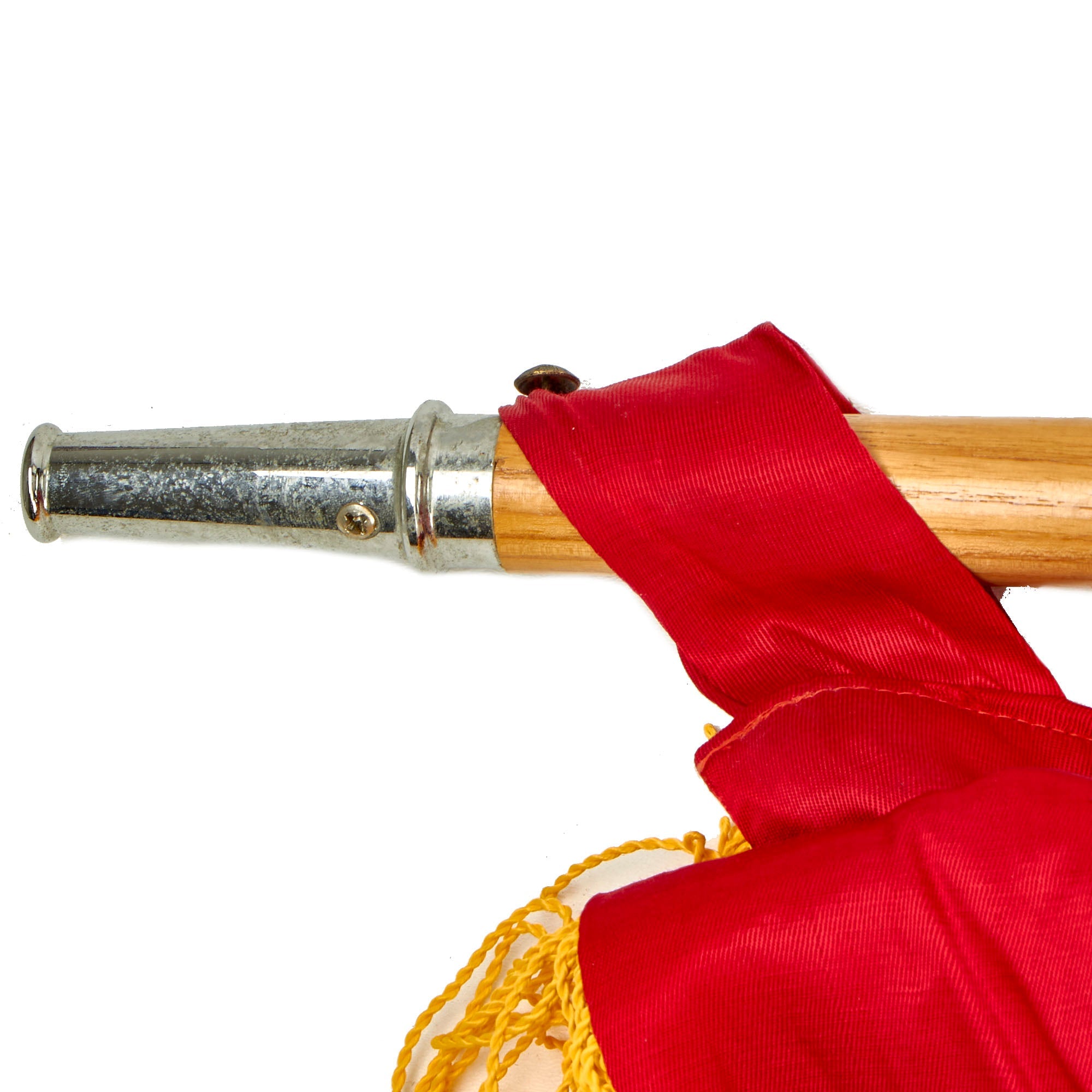 The flag is in wonderful condition with little to no evident wear. There is a label on the hoist side of the flag with a late 1980s date partially visible. The flag does come complete with the original two piece guidon style pole to be able to plant the flag in the soft earth.