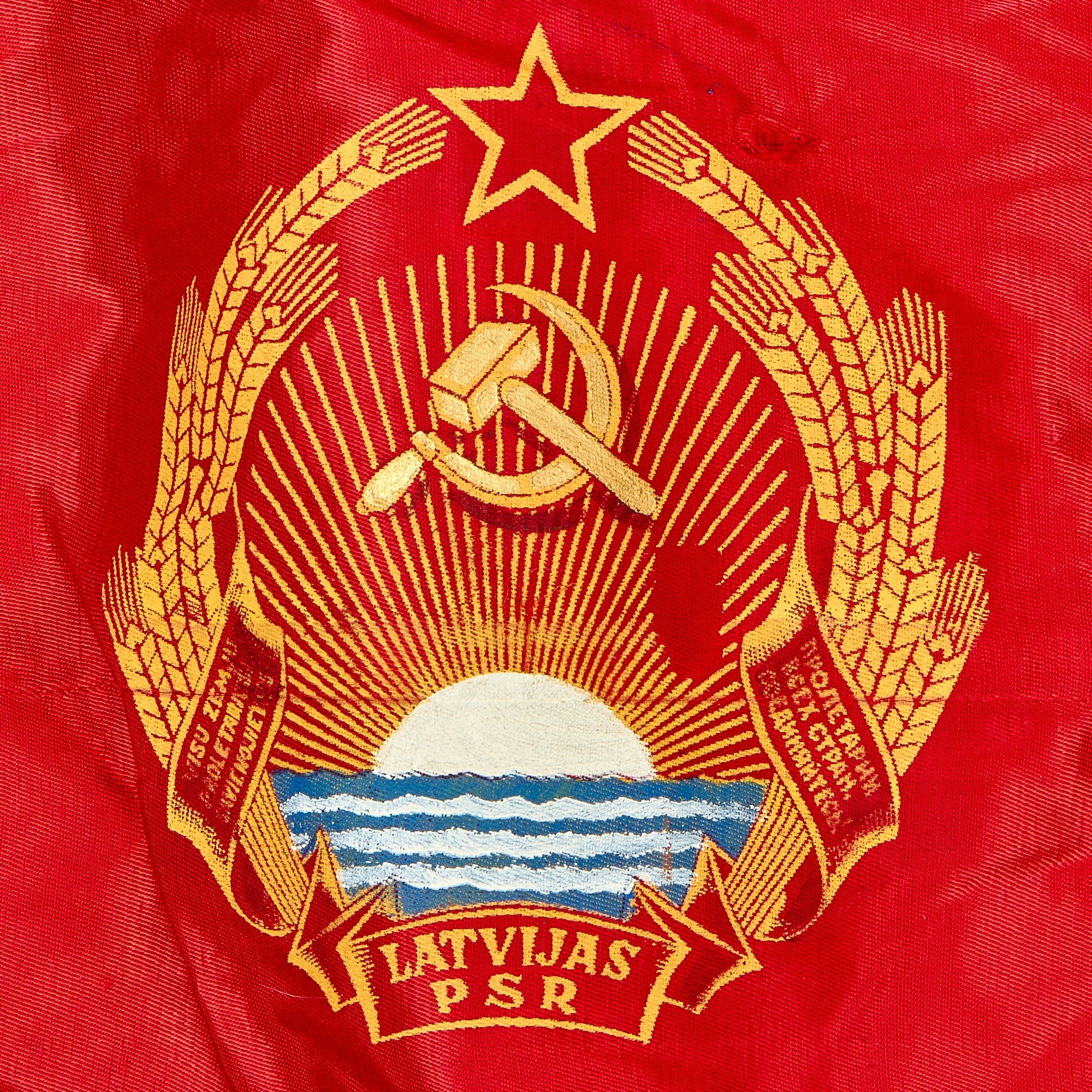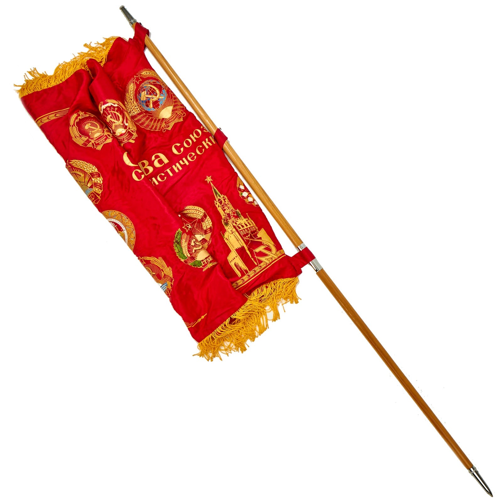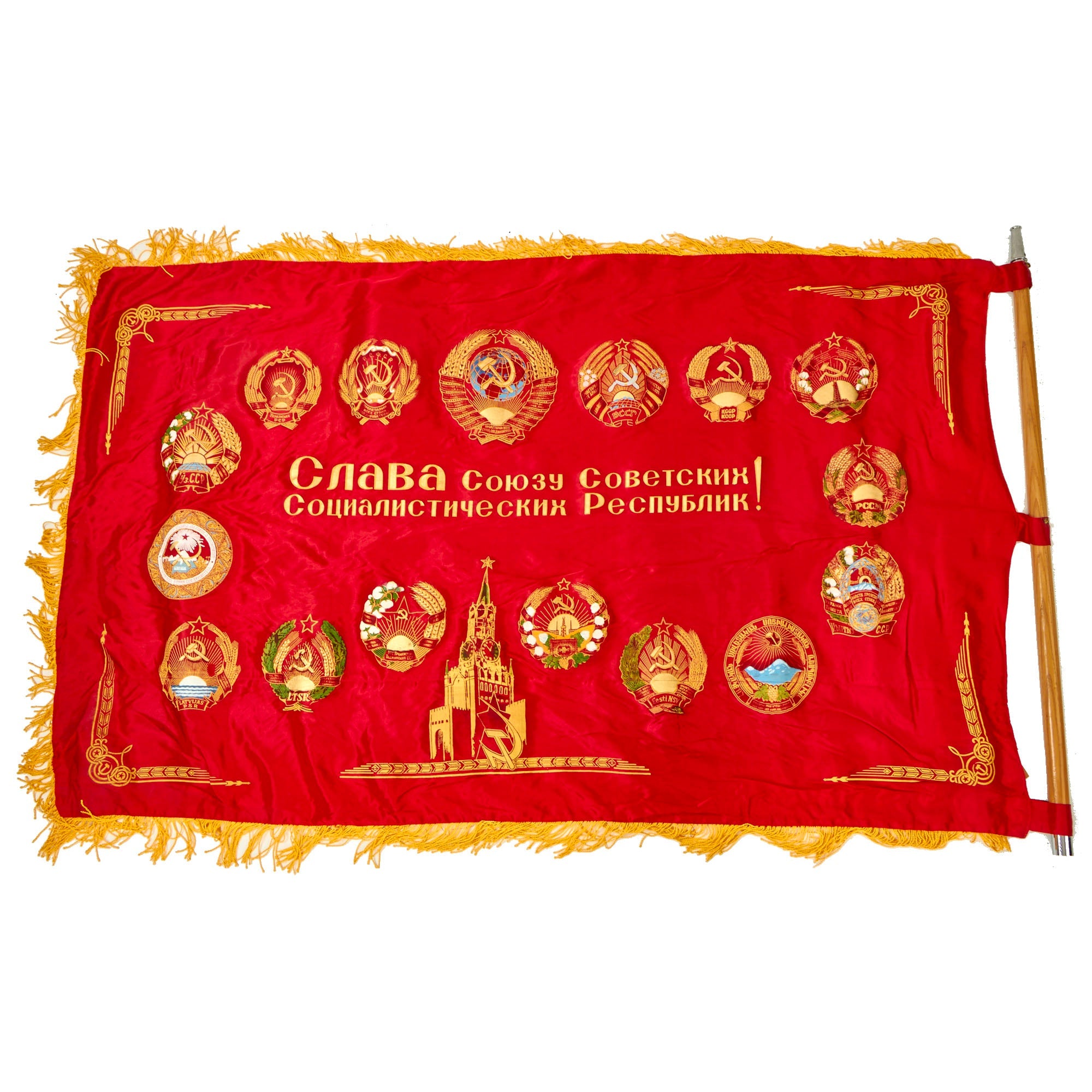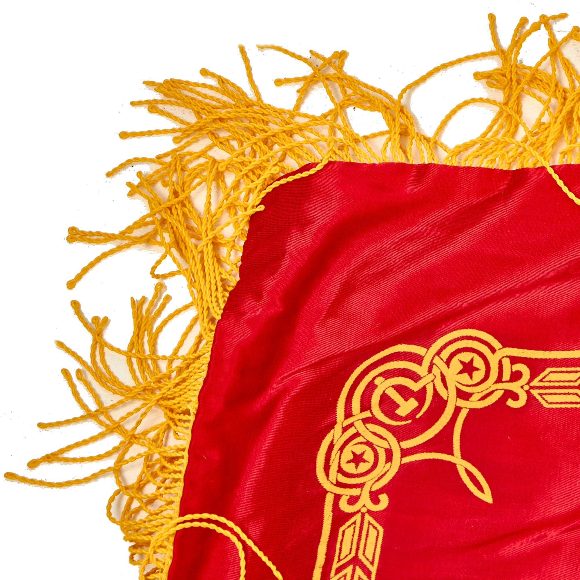 The flag is in wonderful condition with little to no evident wear. There is a label on the hoist side of the flag with a late 1980s date partially visible. The flag does come complete with the original two piece guidon style pole to be able to plant the flag in the soft earth.