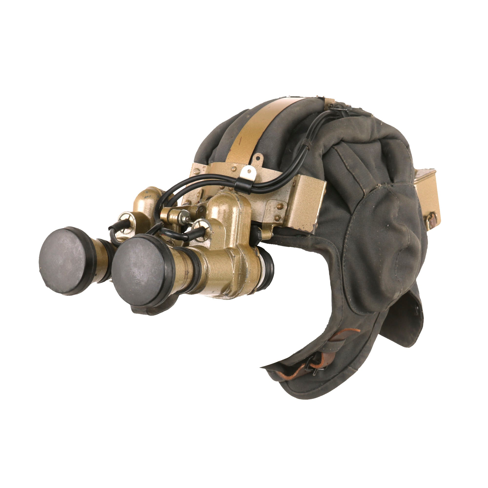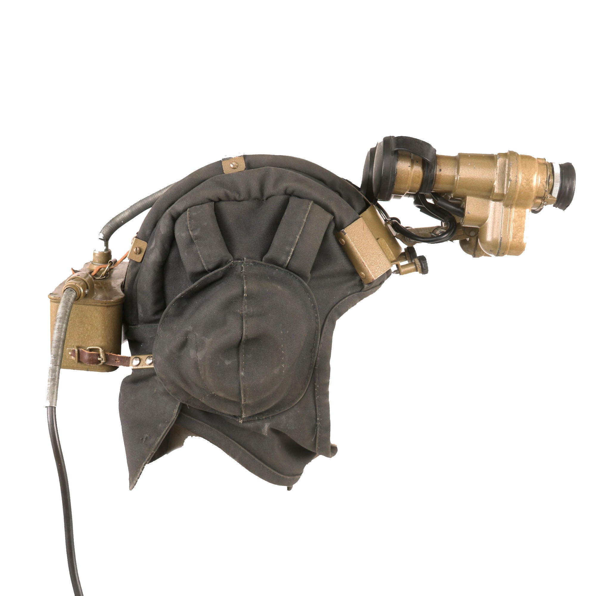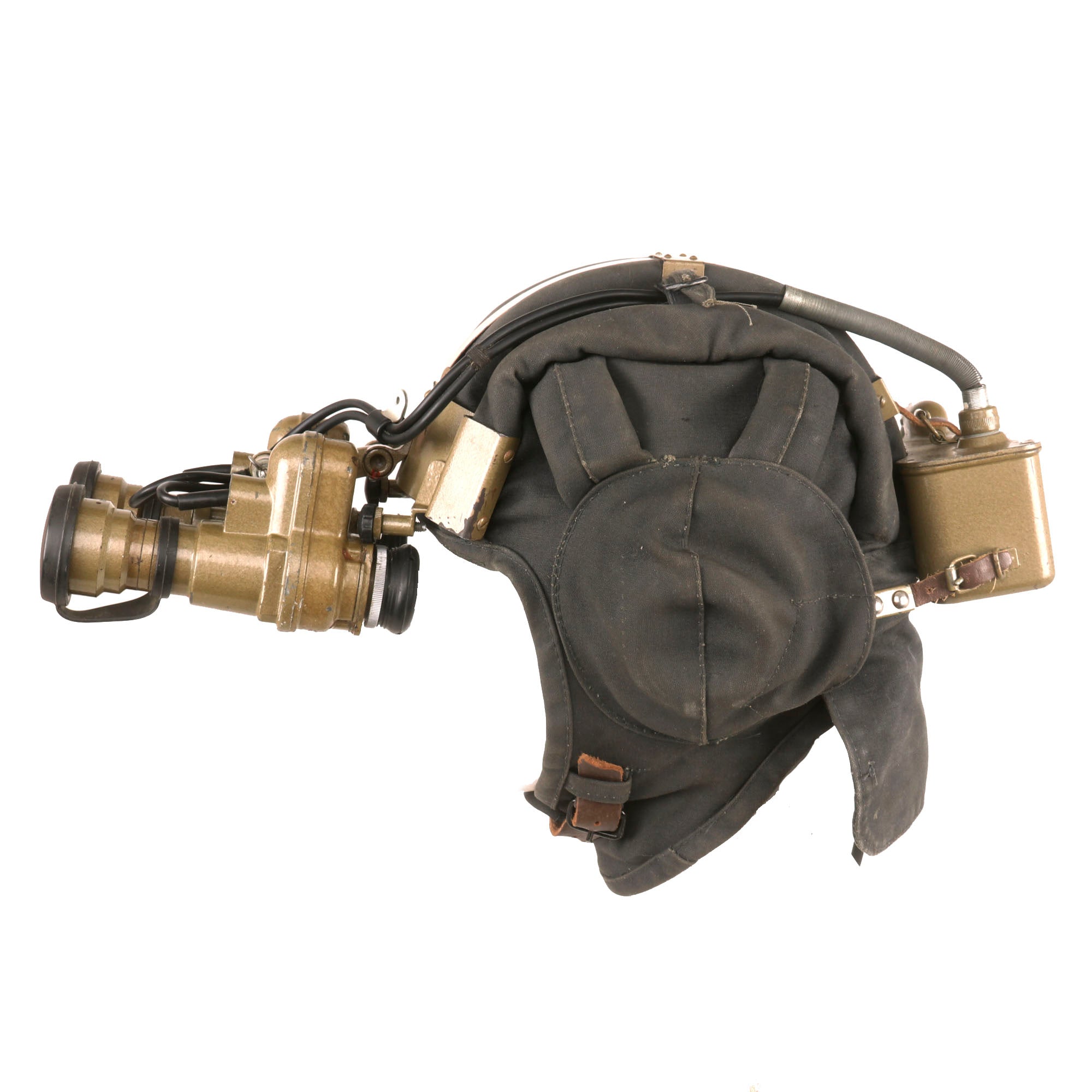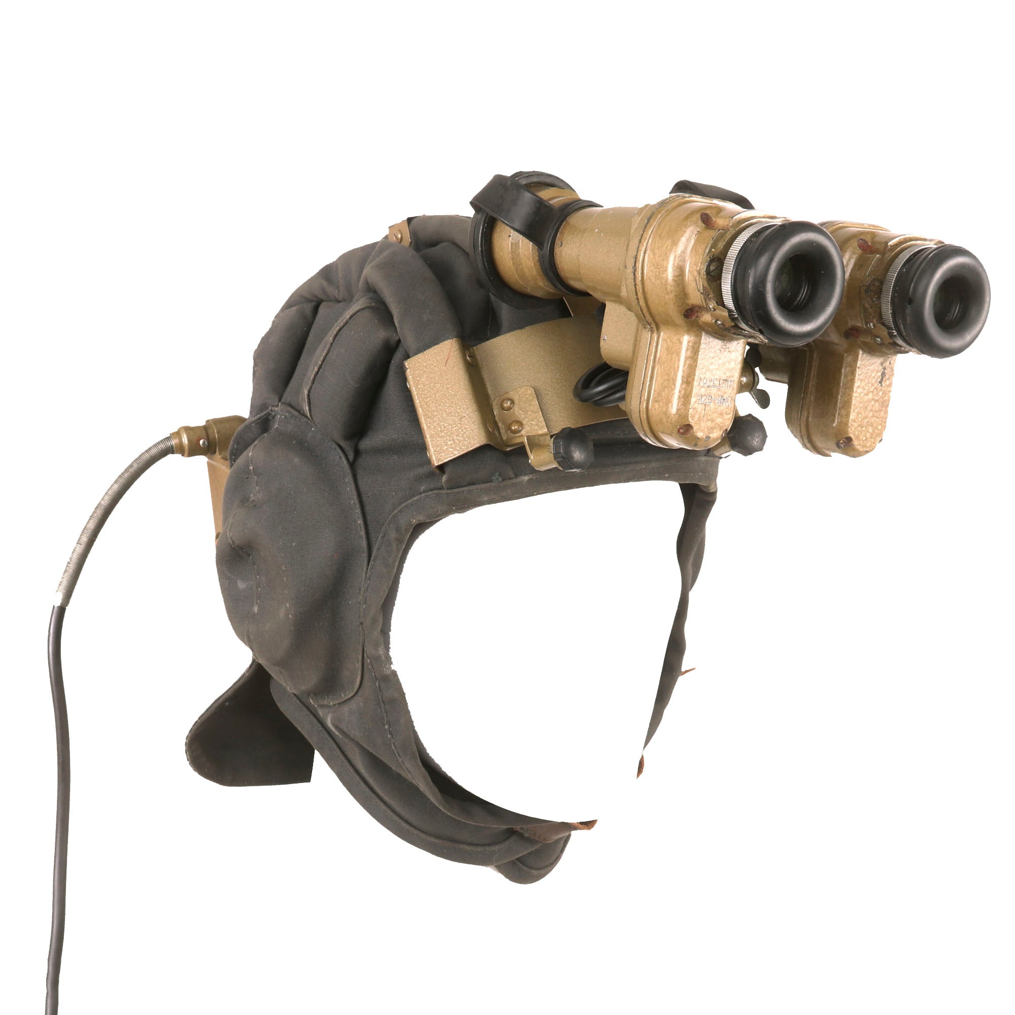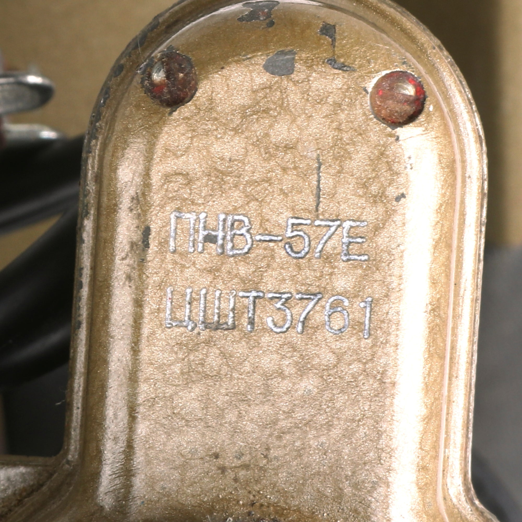 Original Item: Only One Available. This is a lovely set of 1969 Czechoslovakia, produced military PNV-57 Night Vision Goggles with adjustable padded Tanker Helmet with head harness in good condition. We have had two PNV-57 sets before, but they were a bit different. This set is marked ПНВ-57E above one eyecup, indicating it as this model. Under this is likely the serial number, 3761.The helmet is in fair condition with the goggles and battery pack still well-attached. The straps of the helmet appear to be all retained, and the cords appear to be in good condition. The rubber eyecups of the goggles are still intact as well. There is a small 9-volt battery included, and the set has been properly tested with it. We are happy to report that the set is functional.We cannot guarantee functionality but we were told by the collector we got it from that is is functional, the set appears to refurbished for use. A very scarce set to find now, ready for further research and display!
