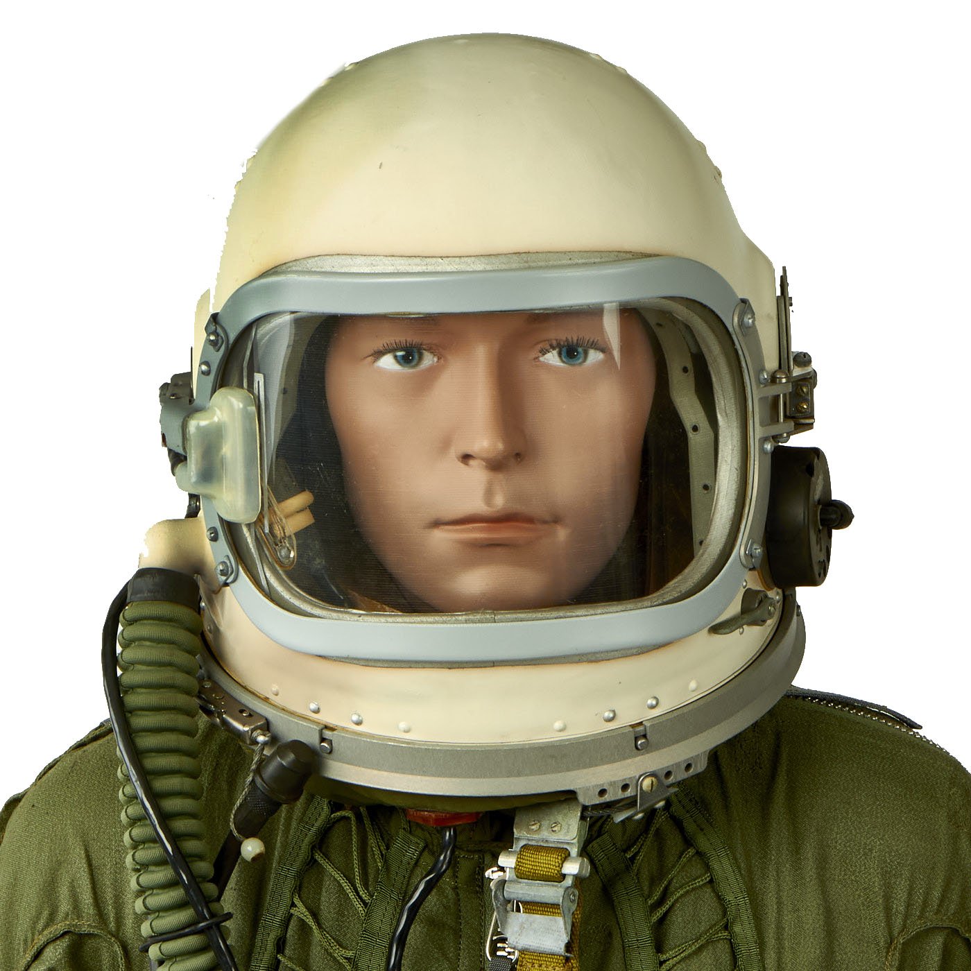 Original Items: Only One Set Available. The Soviet GSH-6A (Russian: ГШ-6A) Pressurized Sub-Orbital Flight Helmet was usually used on MIG-21, MIG-23 and MIG-25 fighter interceptor airplanes as well as for cosmonaut training flights. The clear pressure visor is electrically heated to prevent fogging of the visor.