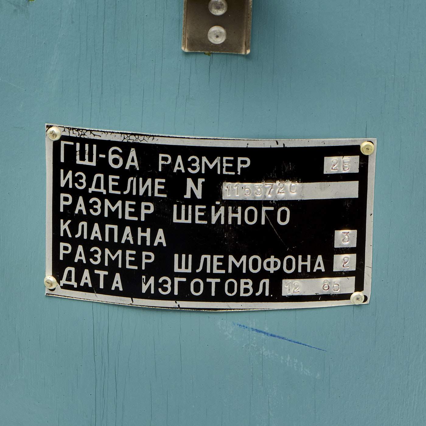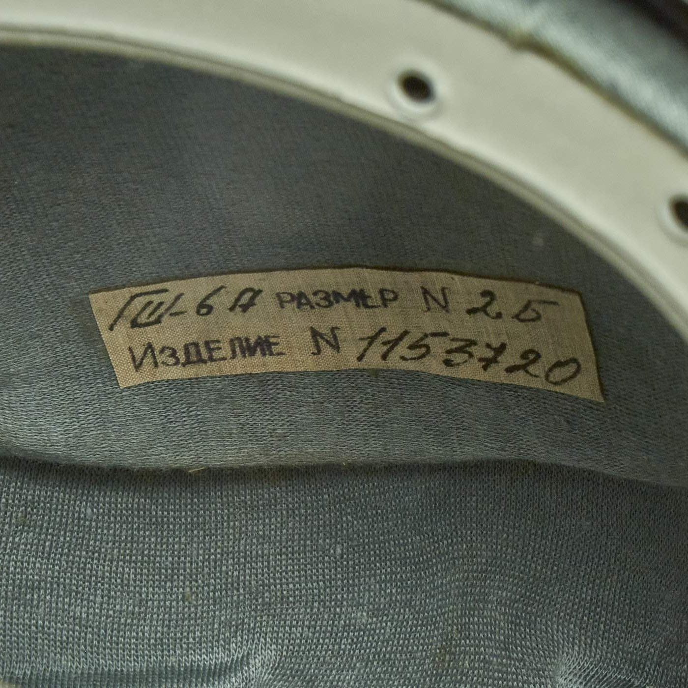 Direct translation of this is "GSH-6A SIZE N 2B PRODUCT N1153720", giving the size and serial number of the helmet. The helmet comes with the correct VKK-6M (Russian: ВКК-6М) Pressure Flight Suit, designed to help combat the effects of G-forces and low pressure on the body.