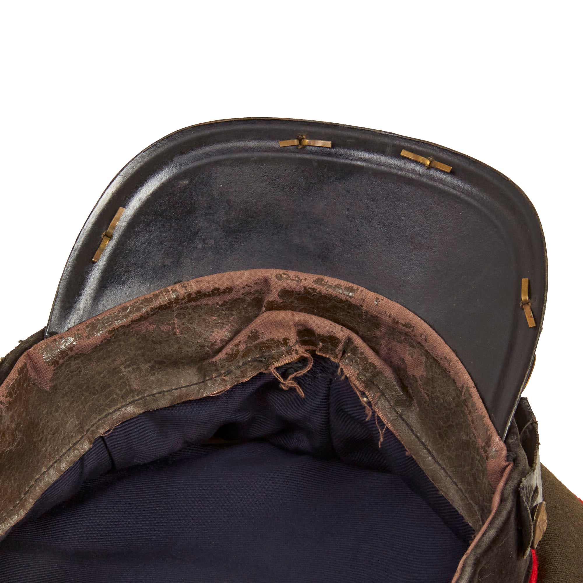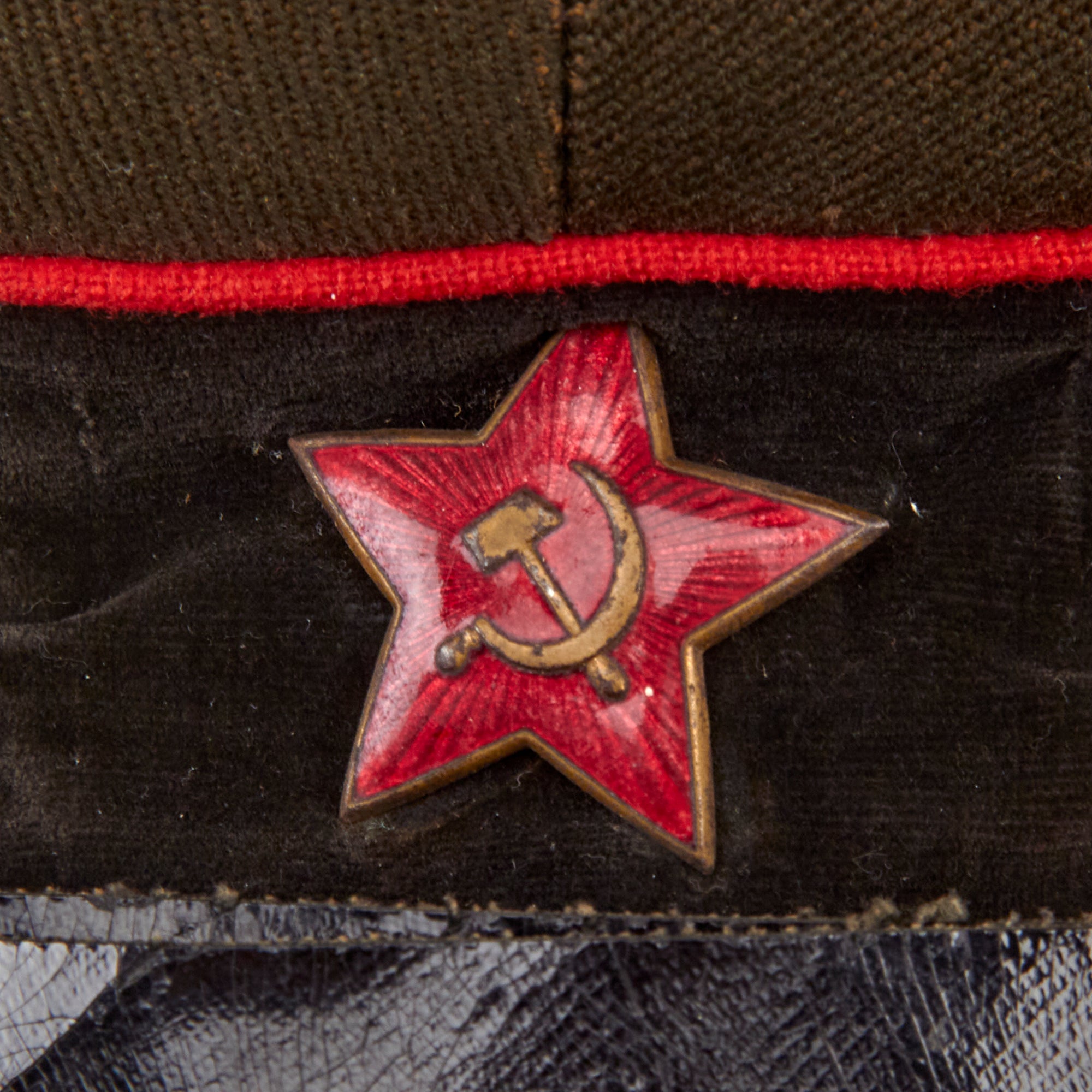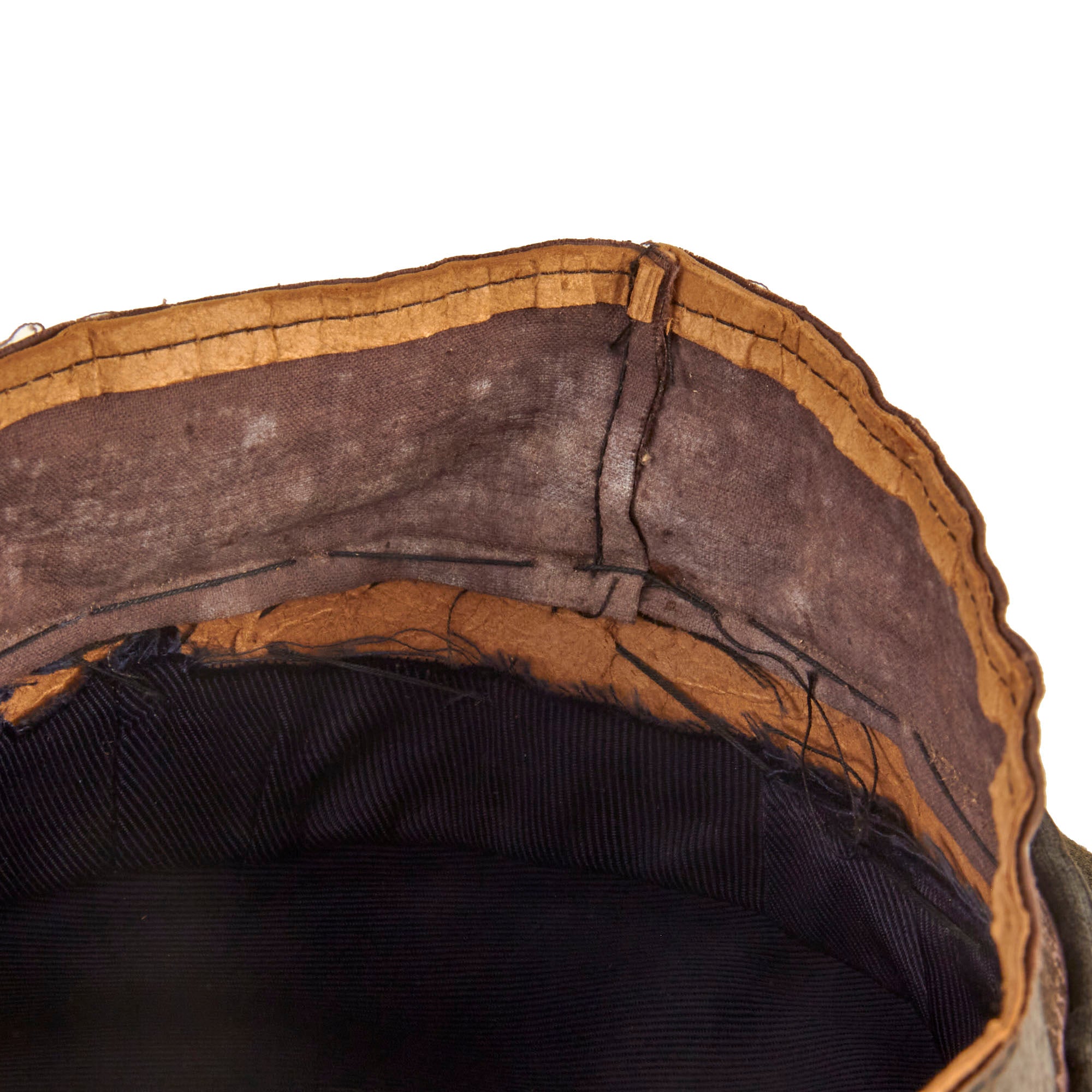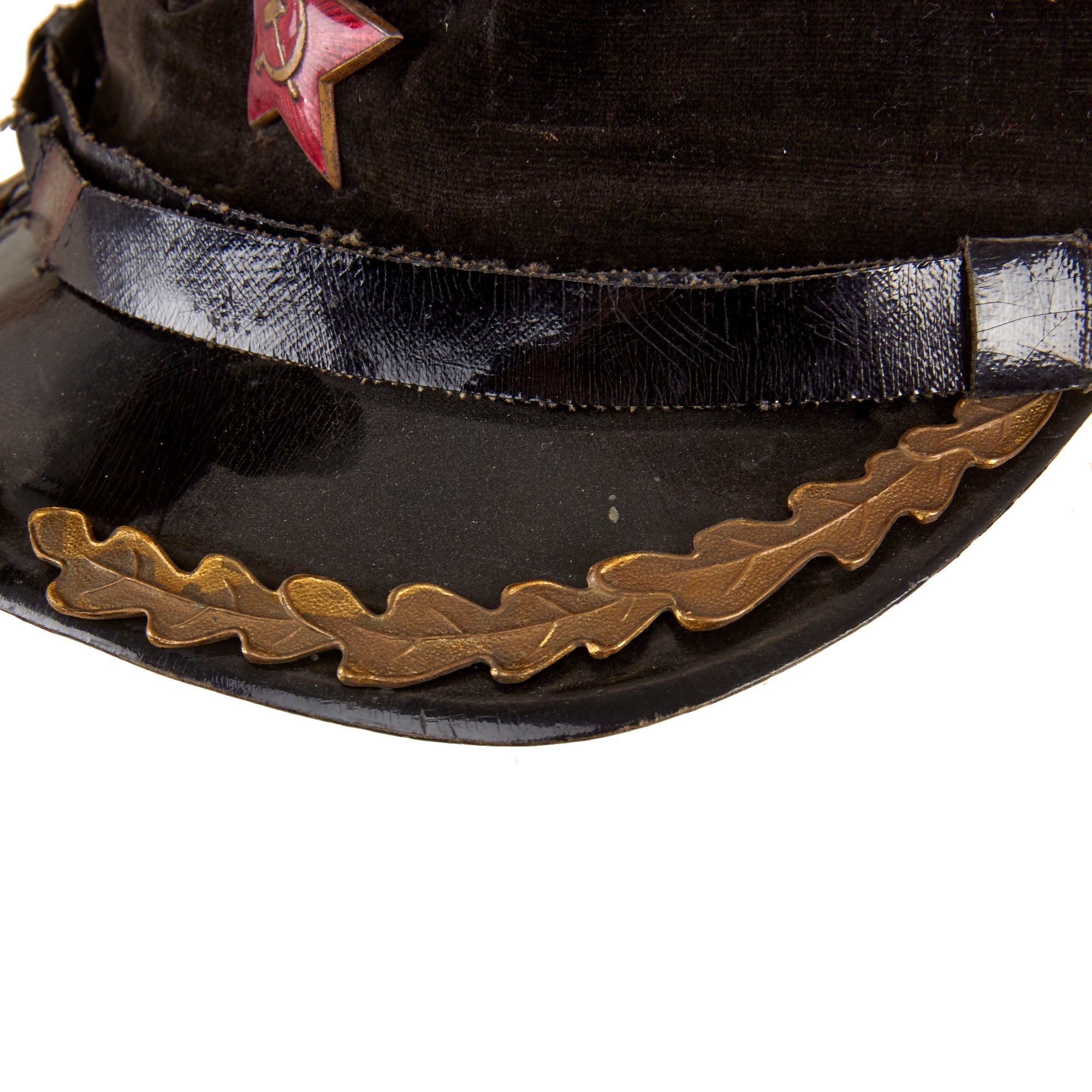 Original Item: Only One Available. Russian M35 caps began the practice of identifying the wearer's arm or service (or branch) by differing band and piping colors. These caps were also characterized by spade-shaped (or square edged) visors, although rounded (semi-circular) visors were also worn infrequently, especially by those would could afford to have custom-made caps, such as generals. The crowns of these caps were relatively small and round, with a low rise in the front.
