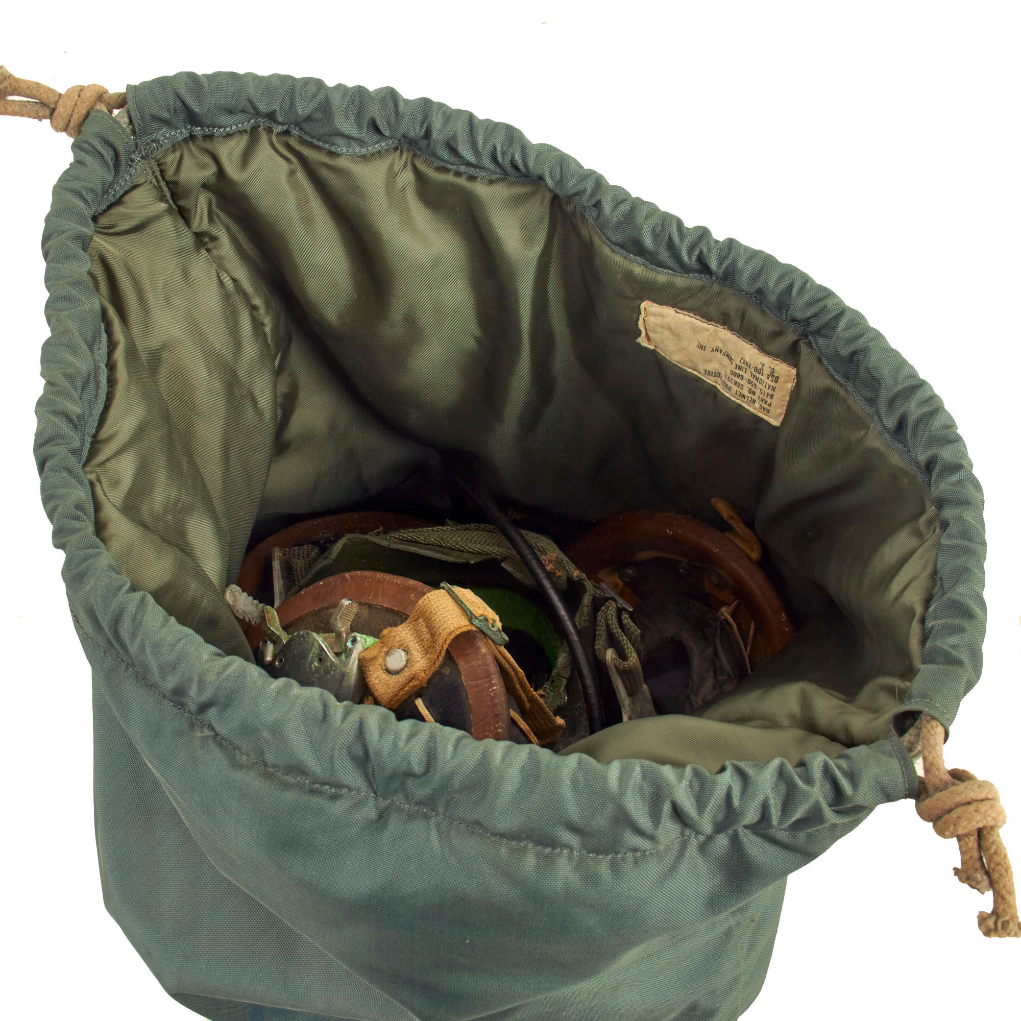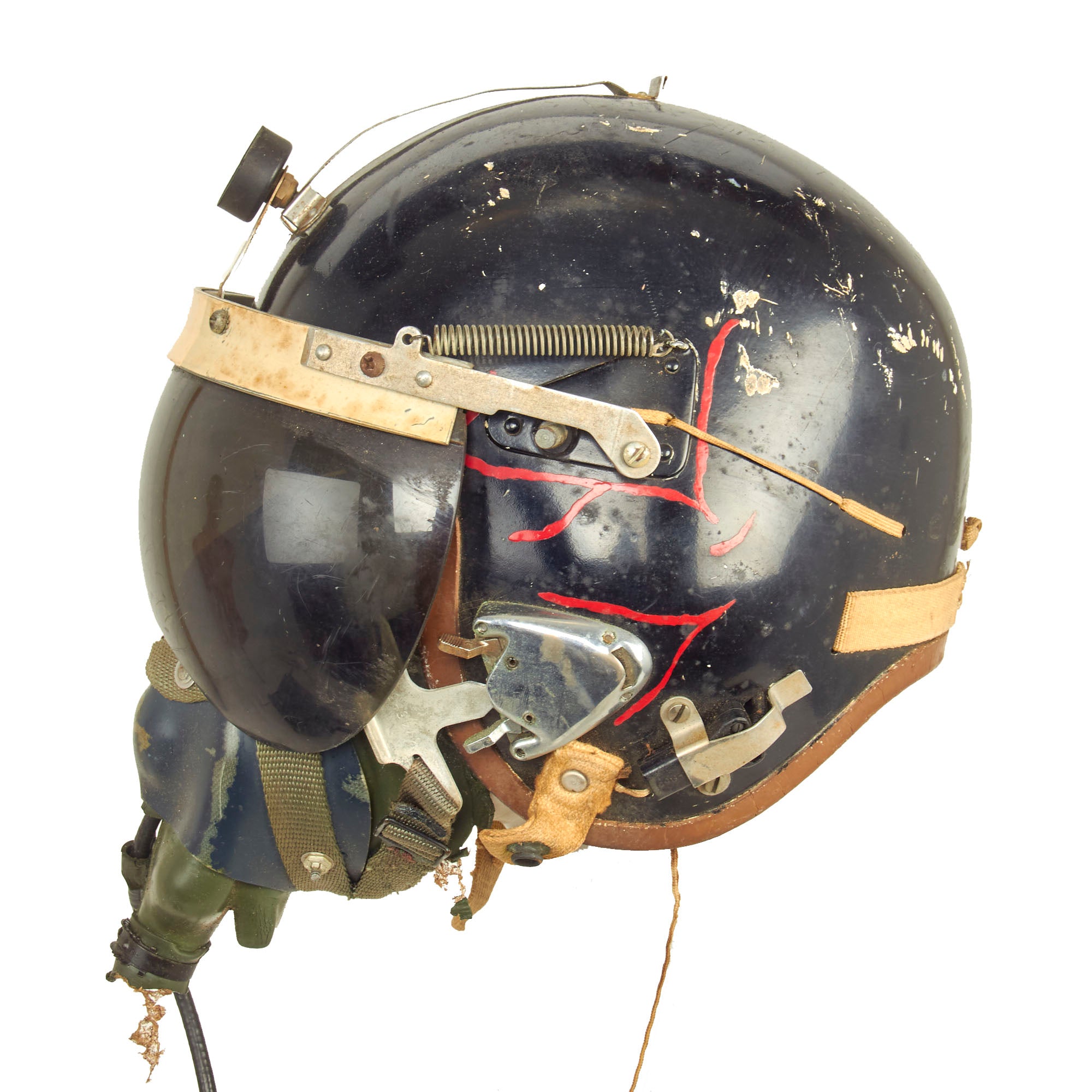 Original Items: Only One Available. This is a very good condition complete 1959 dated U.S. Air Force size small Gentex P-4A flight helmet that comes complete with internal web liner and pull down spring loaded tint visor. All parts are in very good condition. This is a rare complete helmet. Also included is a MS22001 Aircraft Pilot Oxygen Mask in size small, which is a little dry rotted with the hose in a few pieces. The included bag is in wonderful condition and served its purpose as protecting the helmet.