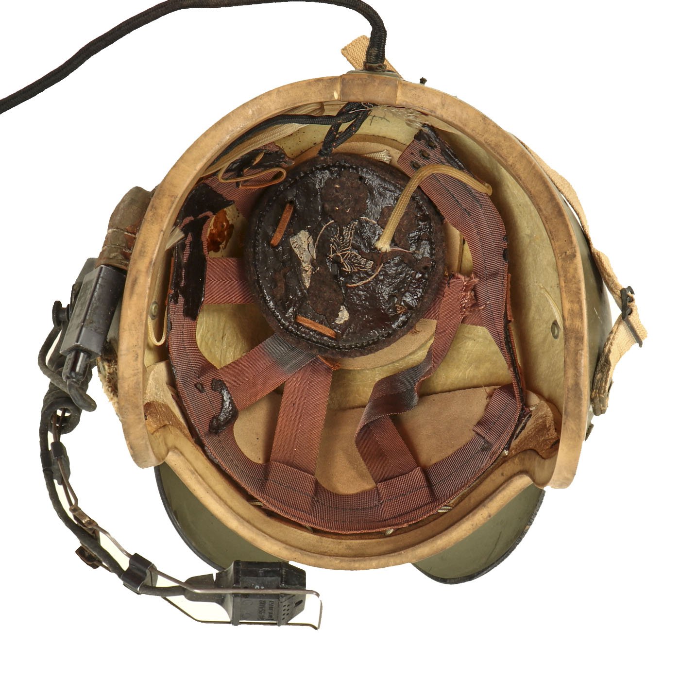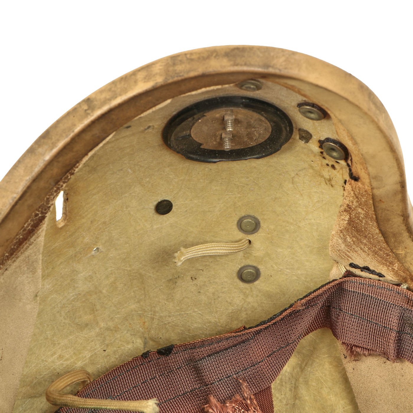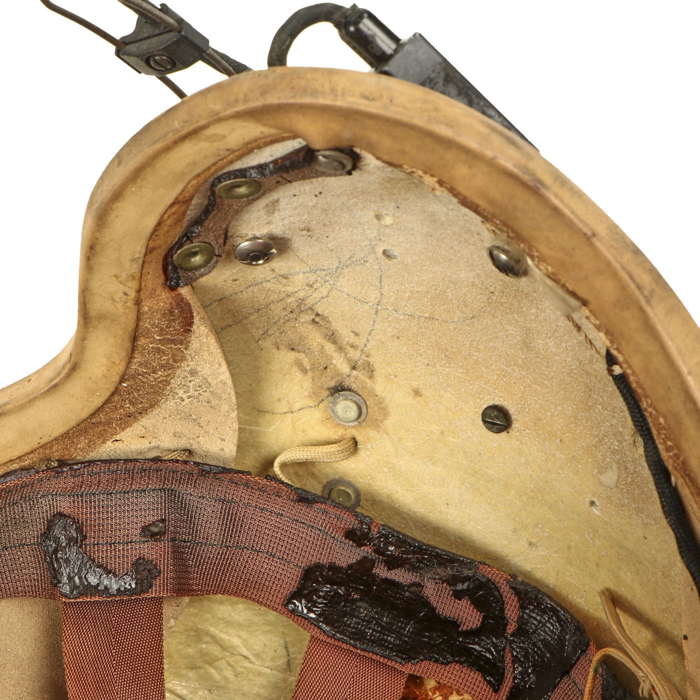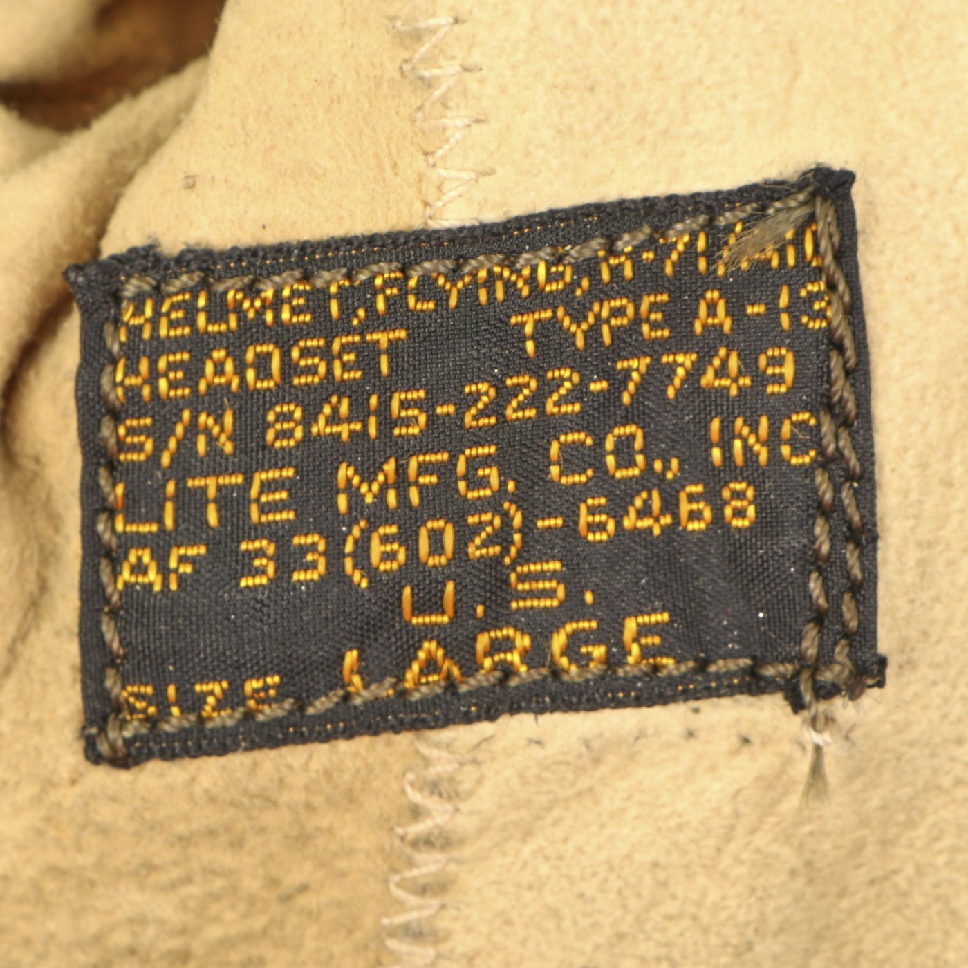 Original Items: Only One Available. This is an very good condition complete 1957-1959 U.S. Air Force size large Gentex P-4A flight helmet that comes complete with internal web liner and pull down spring loaded tint visor. All parts are in very good condition. This is a rare complete helmet. Also included is a size large Type A-13 Leather flying helmet which could be worn beneath the P-4A and a MS22001 Aircraft Pilot Oxygen Mask in size small.