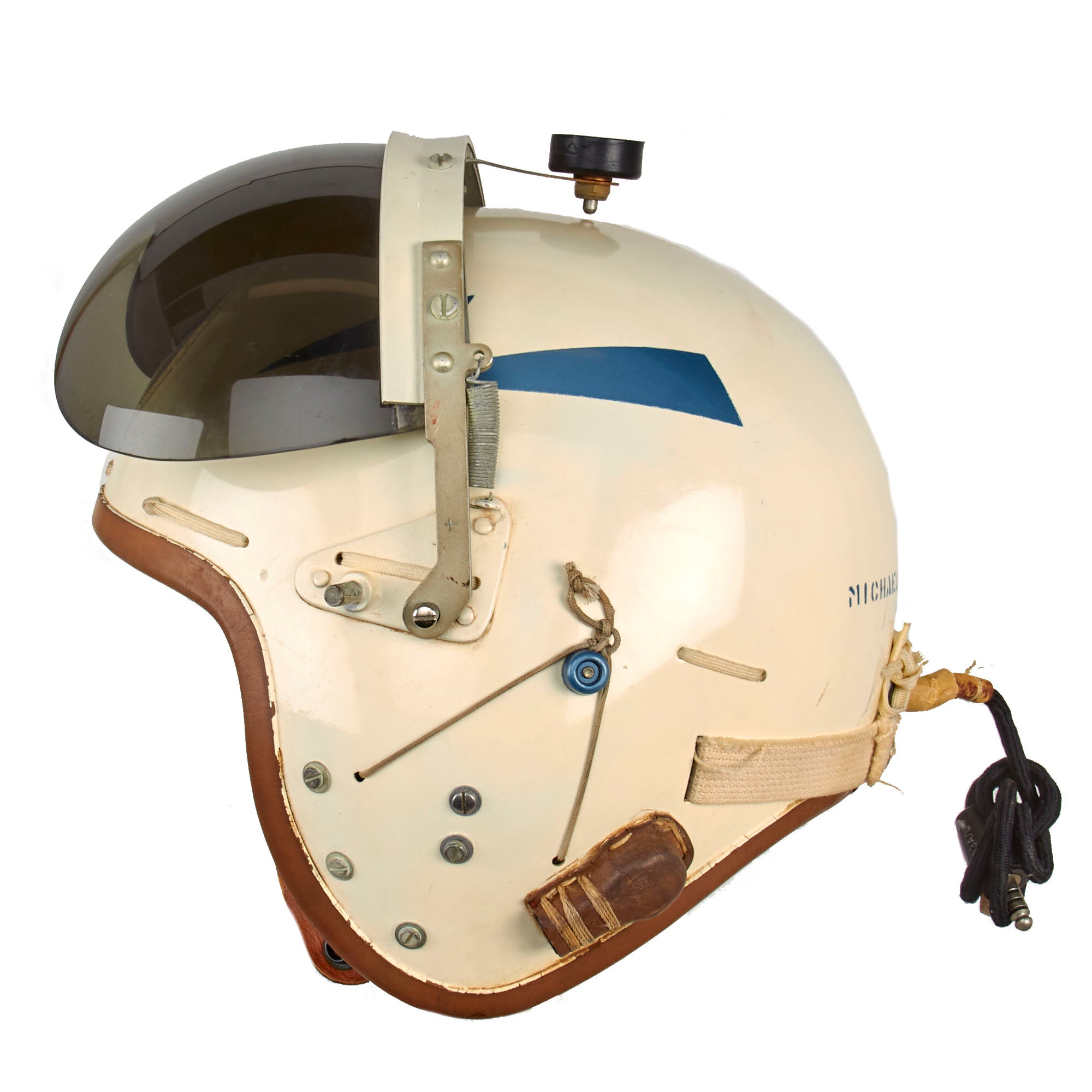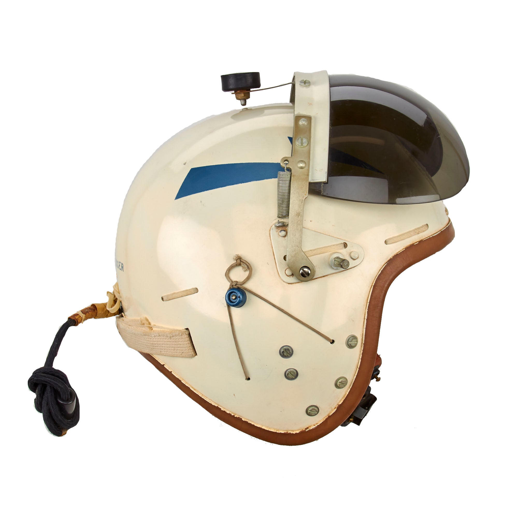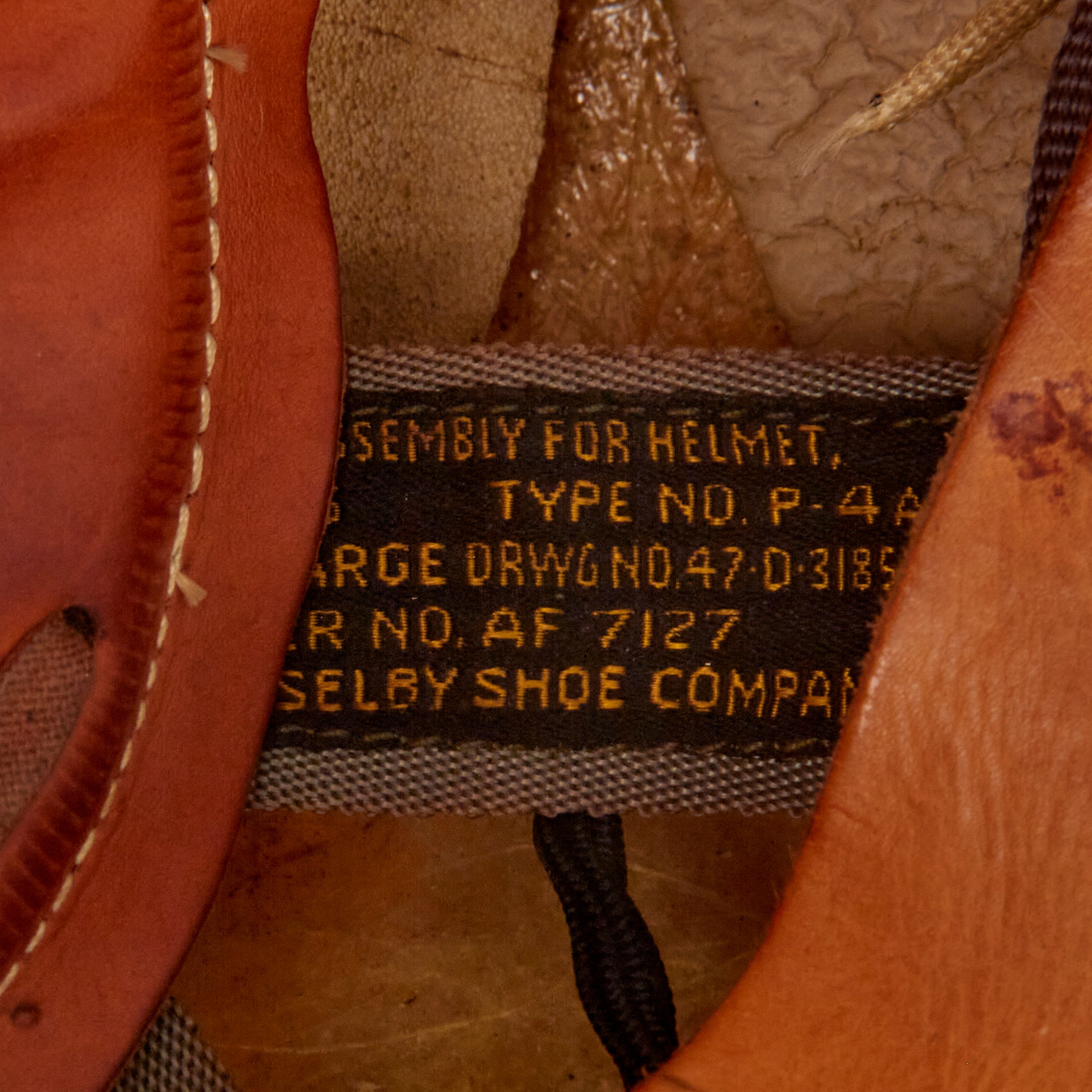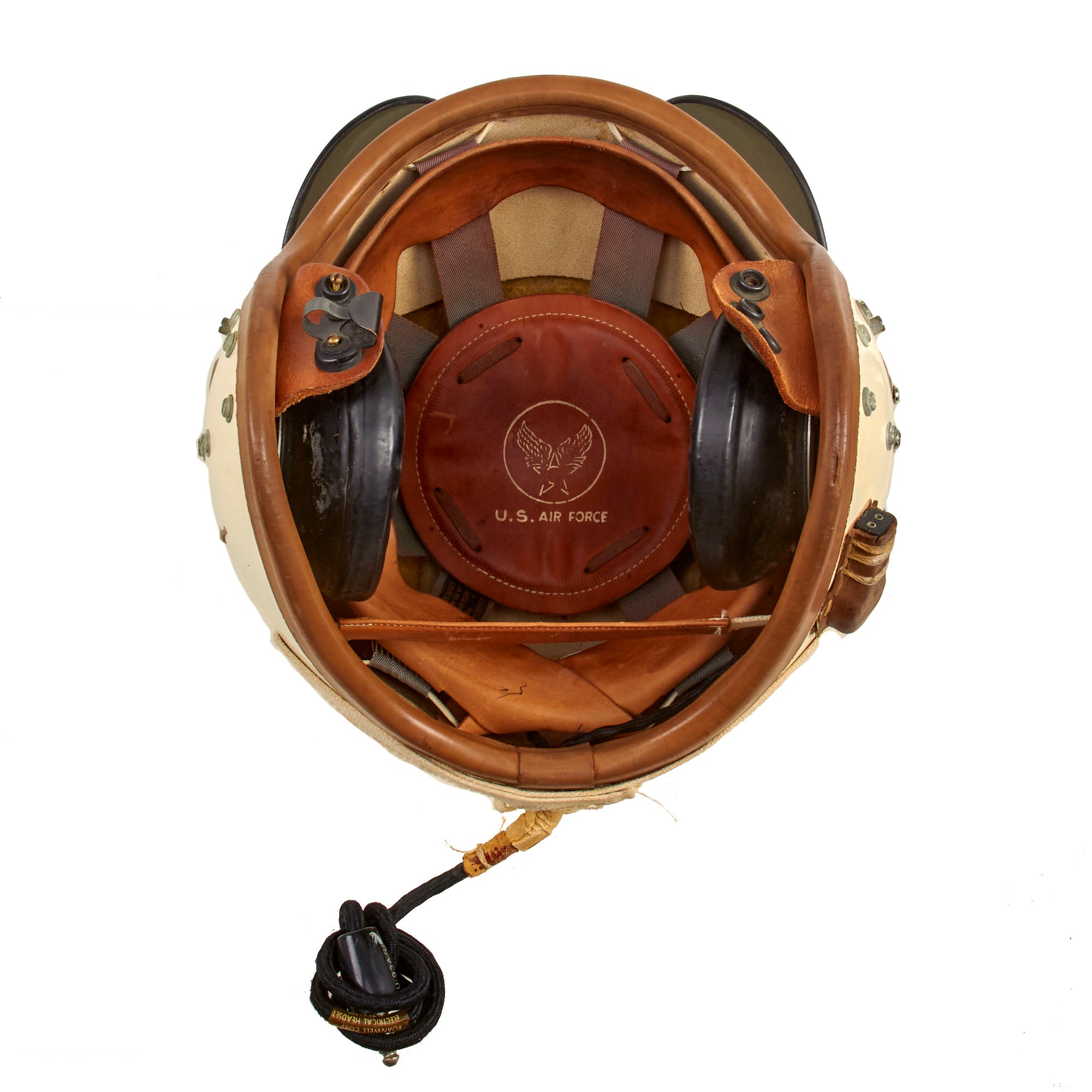 Original Items: Only One Available. This is a very good condition complete 1957 dated U.S. Air Force size large Selby Shoe Company P-4A flight helmet that comes complete with internal web liner and pull down spring loaded tint visor. All parts are in very good condition.