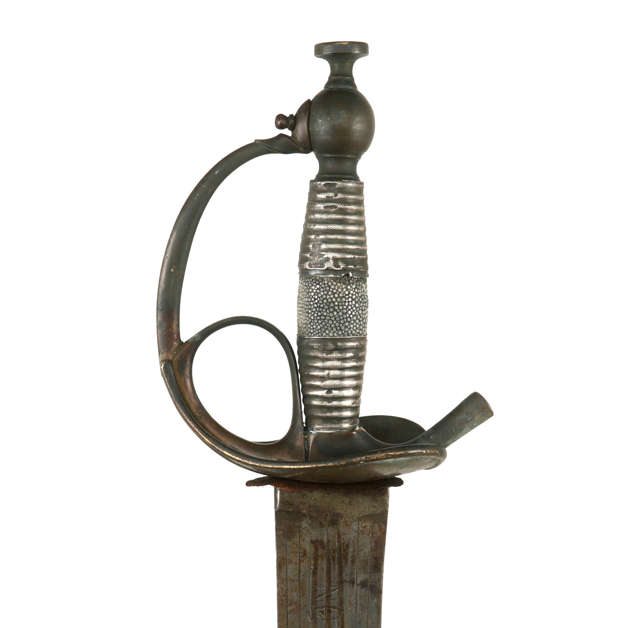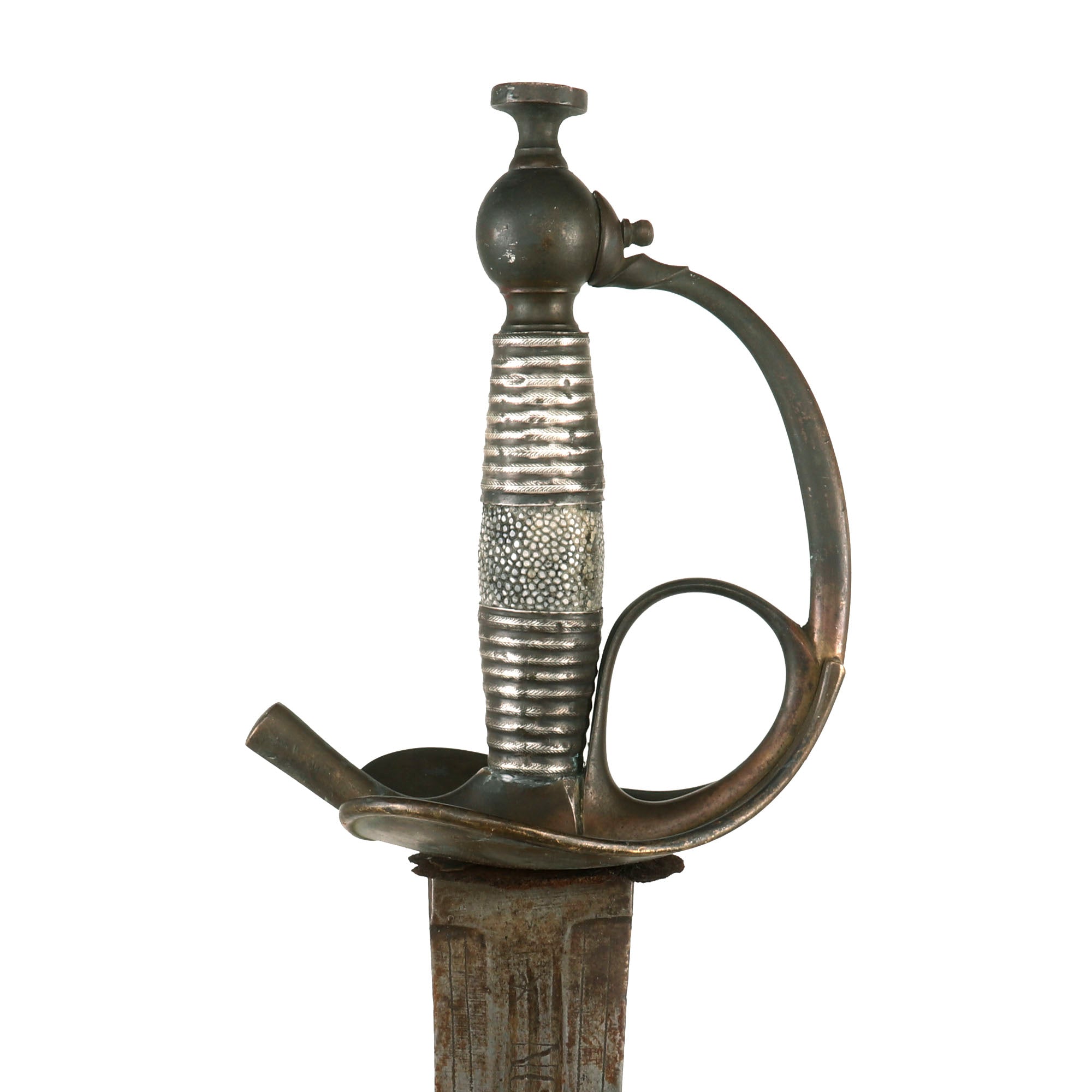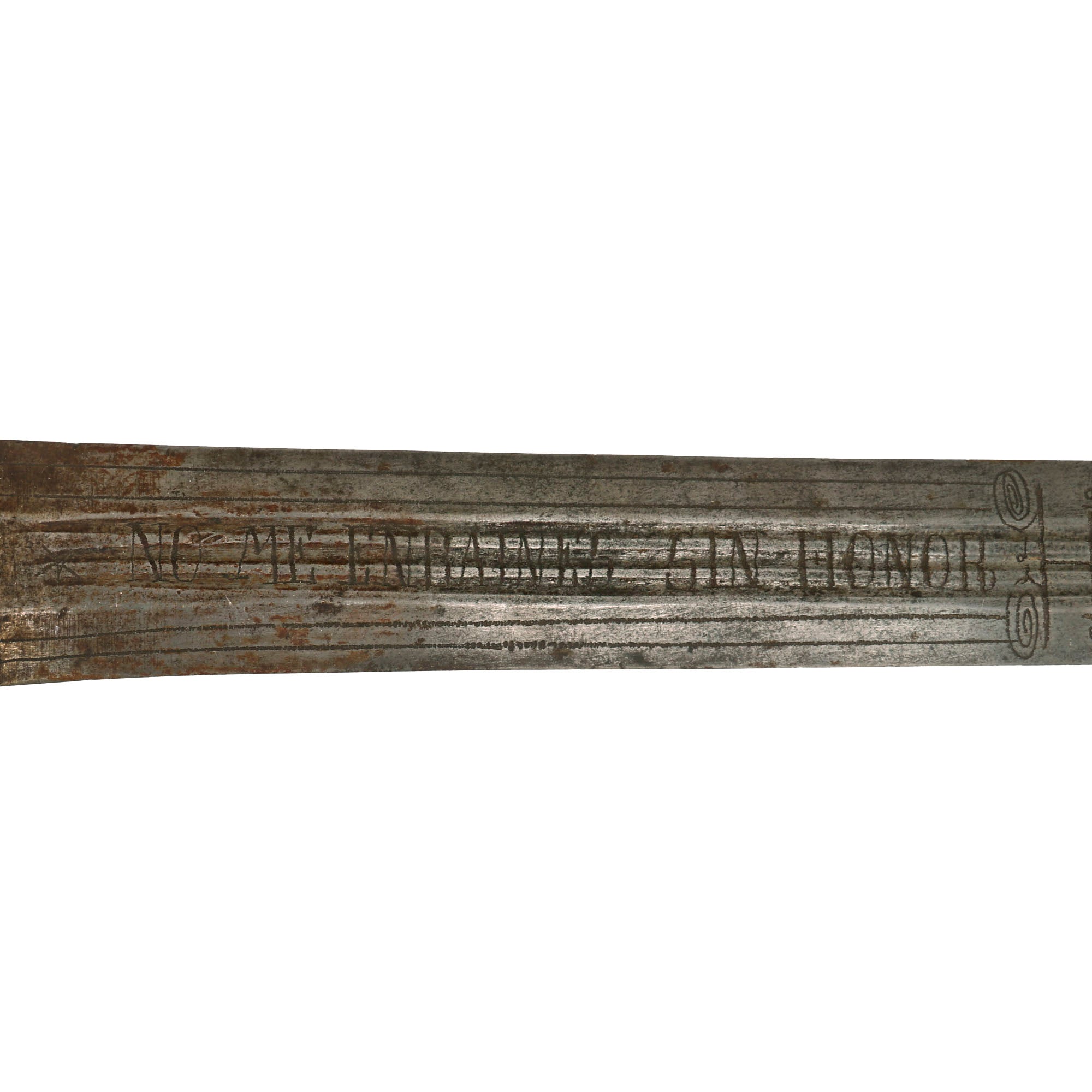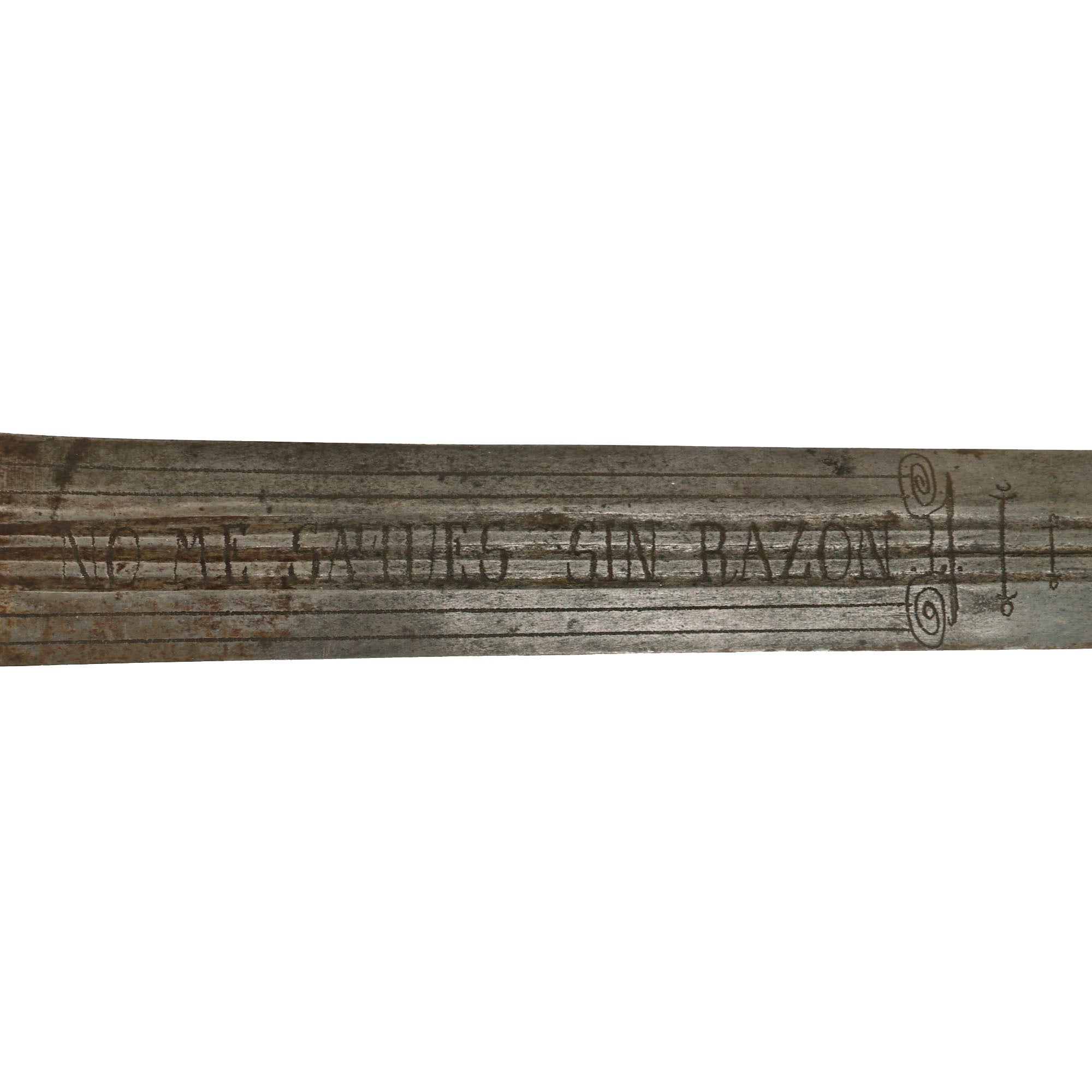 Original Item. Only One Available. This is a lovely sword with a storied history that spans two centuries, with a blade produced in the 18th Century bearing the “Spanish Motto” NO ME SAQUES SIN RAZON, NO ME ENBAINES SIN HONOR, which translates to Draw Me Not Without Reason, Sheath Me Not Without Honour. These blades were manufactured in Spain and would reach the furthest ends of the Spanish Colonial Empire, many examples being imported to Mexico, which remained a Spanish colony until its independence in 1821. The hilt of this sword dates to Mexico pre-independence, roughly the 1800-1821 period.