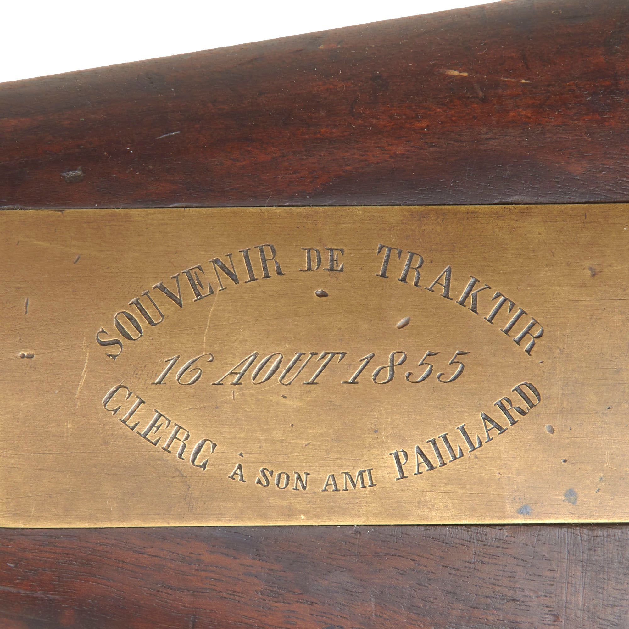 This translates to "Souvenir of Traktir, 16 August 1855, Clerc to his friend Paillard", a presentation dedication that could possibly be researched.