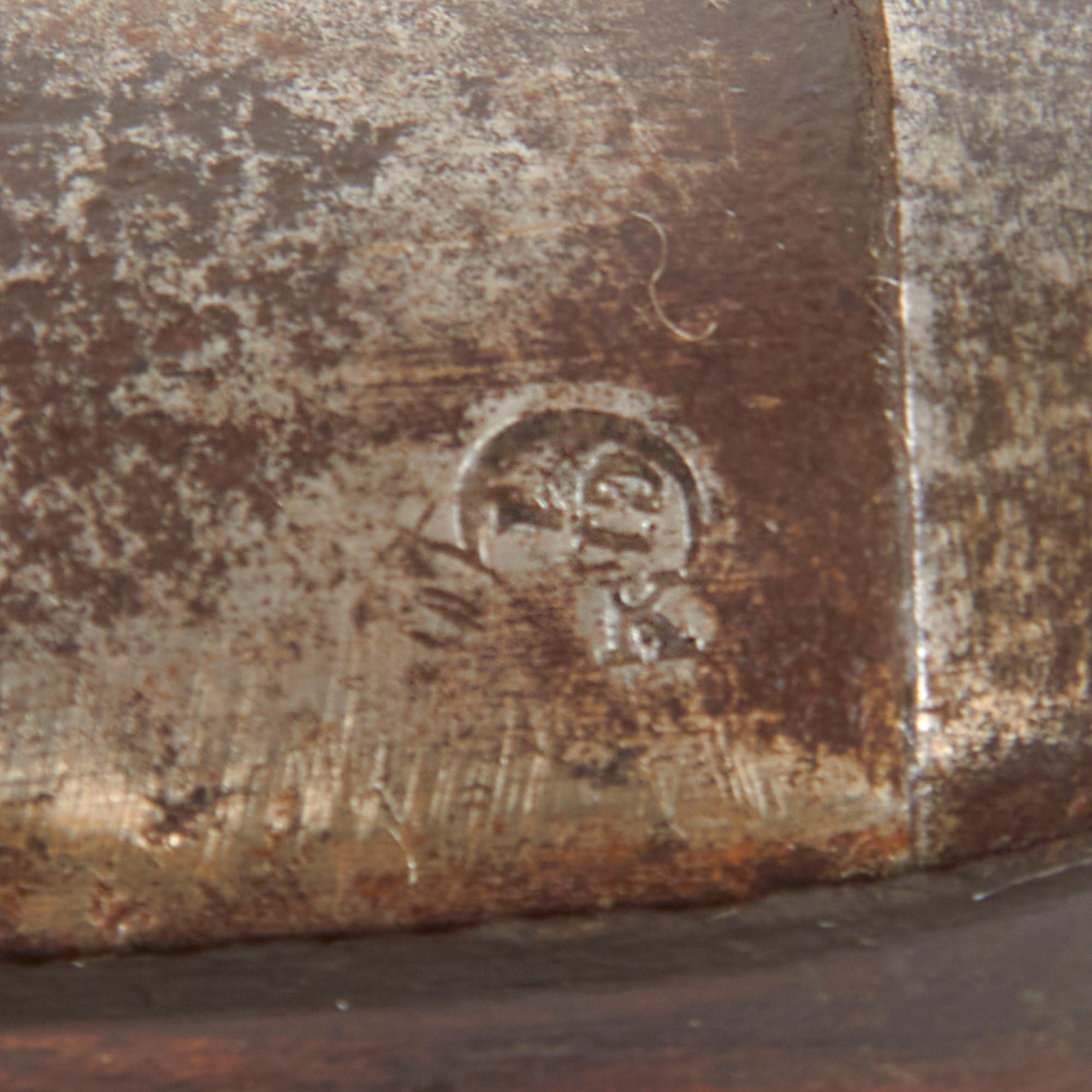 The back of the wrist has a brass escutcheon, which is marked with another CROWN marking, and under this is what looks to be H / 1, or possibly some cyrillic letter, and we believe this is most likely the company designation of the rifle. There are additional small single letter proofs on various components, typical for guns produced in Belgium during the mid 19th century. The inside of the brass patch box looks to be marked with 6881, which is probably from when these were cast in bulk.