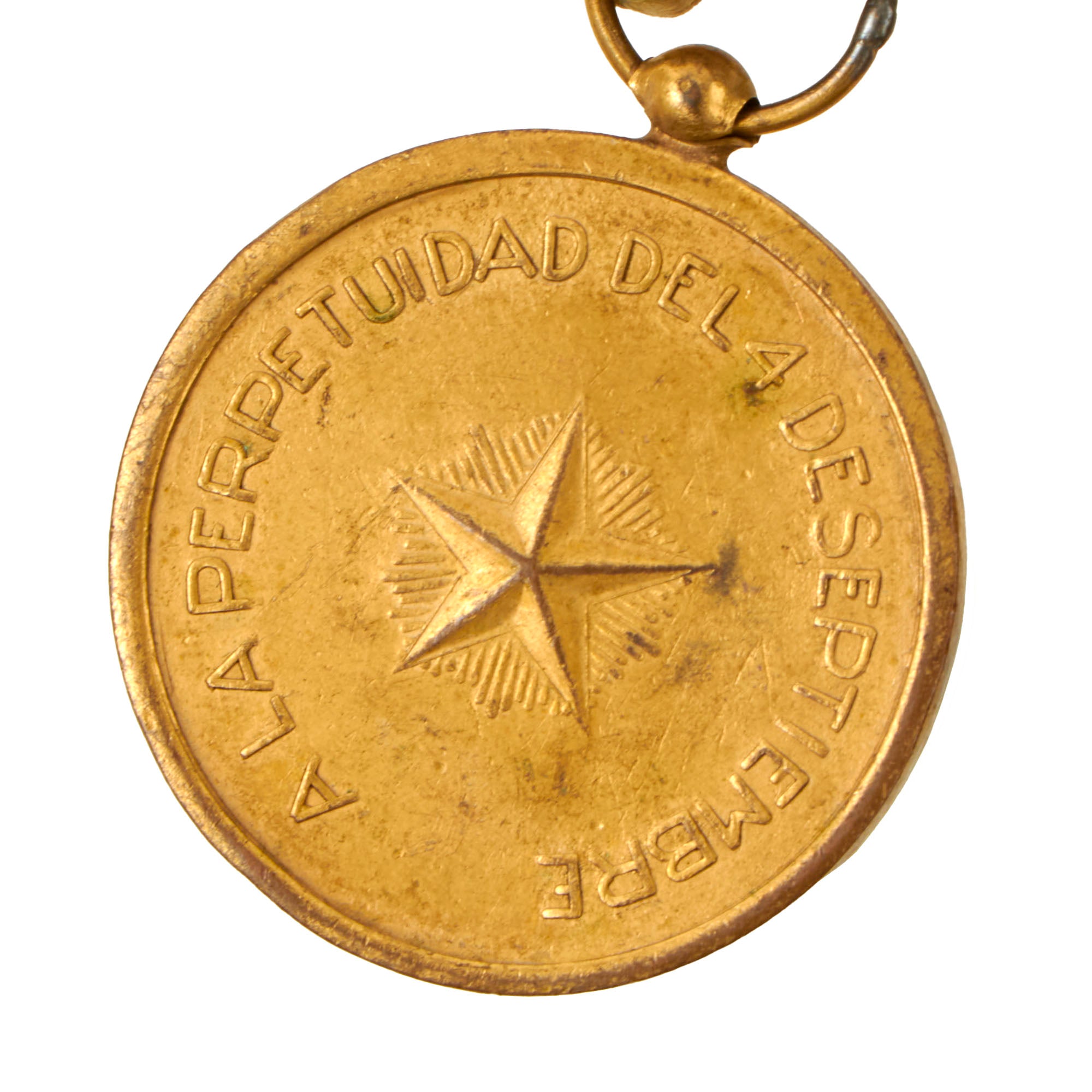 - Cuban Long Service Medal with five chevrons. This is a circular silver medal with laterally-pierced ball suspension; the face with the head and shoulders of a female figure representative of Cuba wearing armour and a plumed helmet; the reverse with the arms of Cuba surmounted by a Phrygian bonnet bearing a five-pointed star within a wreath of oak and laurel, circumscribed ‘PATRIA HONOR DEBER (Country, Honour, Duty); Five chevrons indicate 6 citations, a great example.