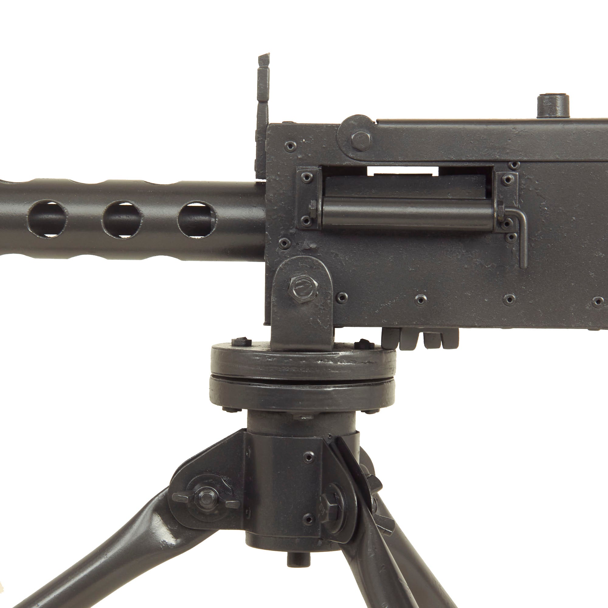It is quite light weight due to the construction, and the M1919A4 replica measures about 43 inches in overall length, a bit longer than usual due to the construction. It is very well made, and we have considered that it may have been some type of kit that was available, however we have found no evidence of any kits on the market like this. We have no way to know if it the air powered BB gun functionality is retained at all anymore, so this is being sold as a display piece only.