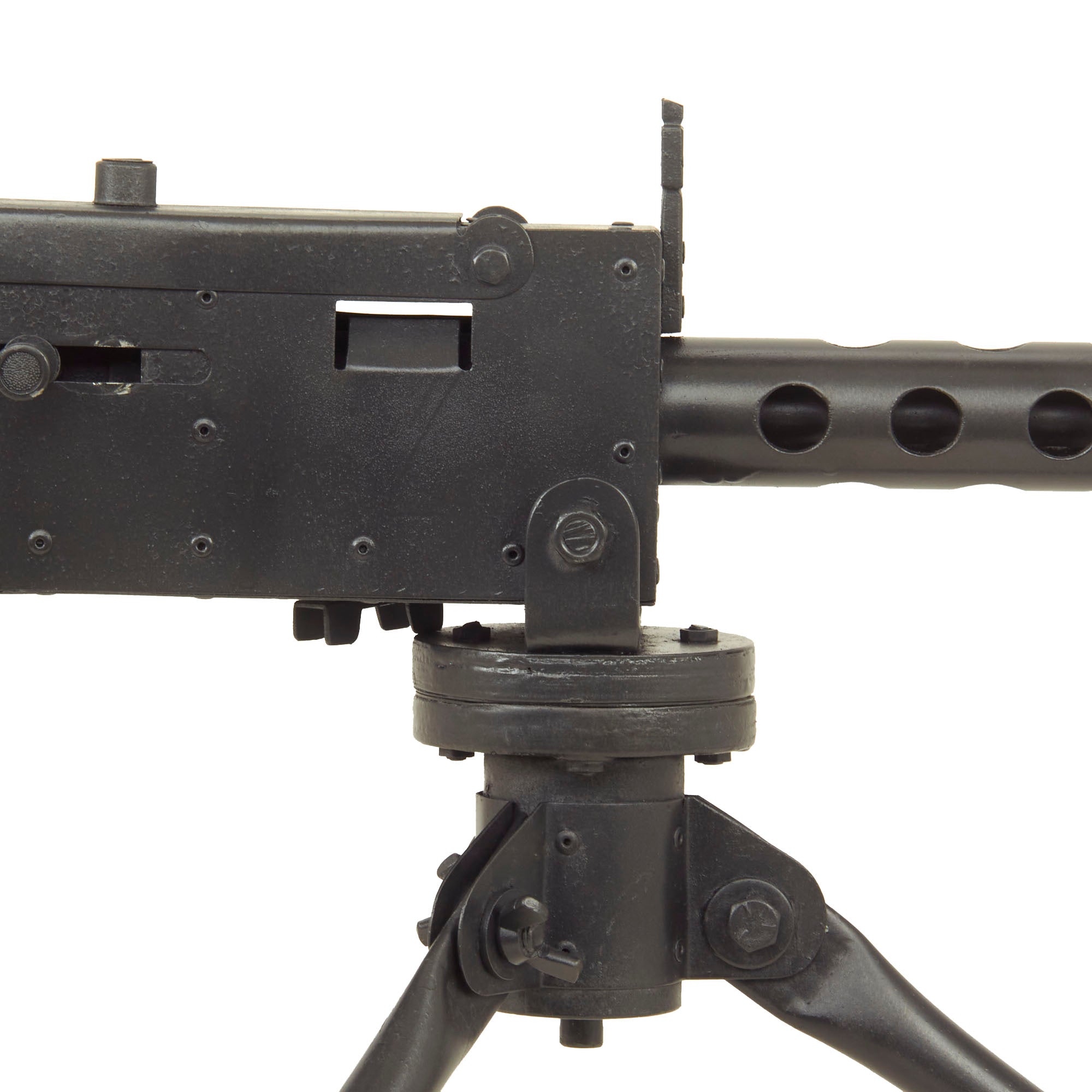 Original & Replica Item: Only One Available. Here we have a very interesting custom fabricated replica Browning M1919A4, which is a combination of a custom fabricated aluminum "shell", into which an LARC international M-19A air-powered pellet gun was installed. This in turn was then placed on a custom made tripod for display. The entire setup was then painted overall with gunmetal gray spray paint, which really looks great!