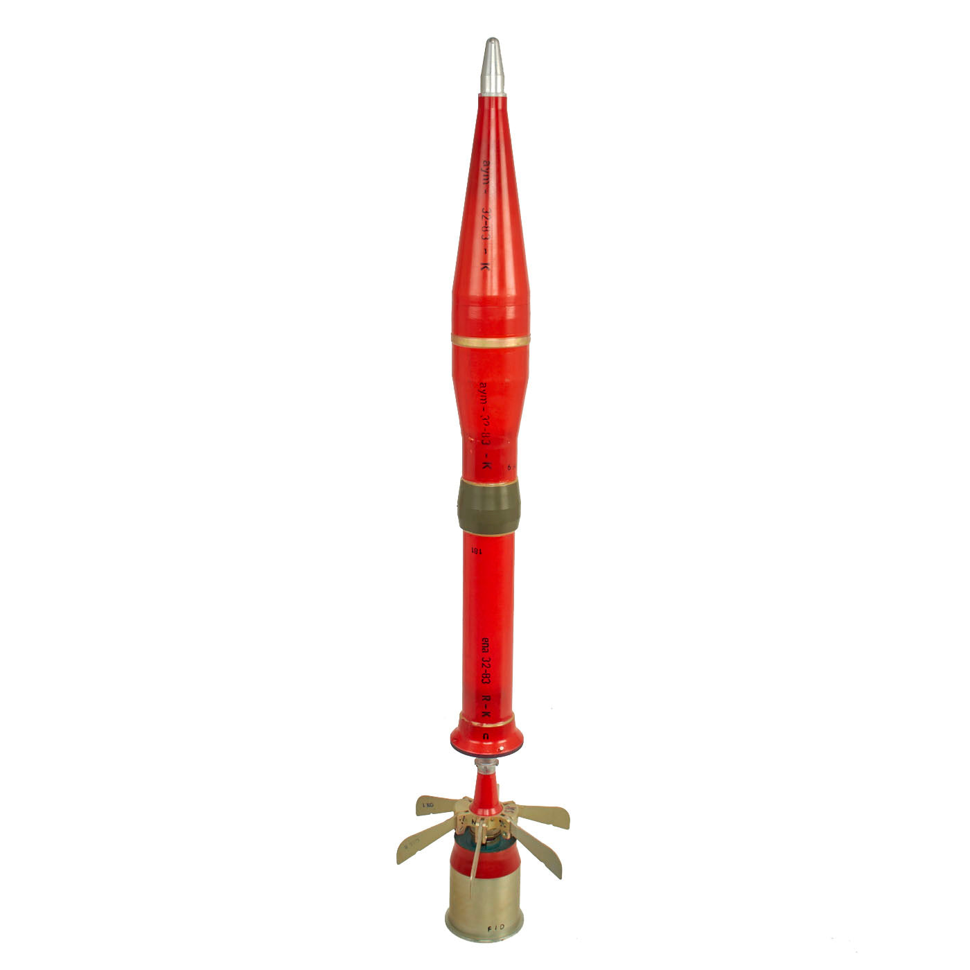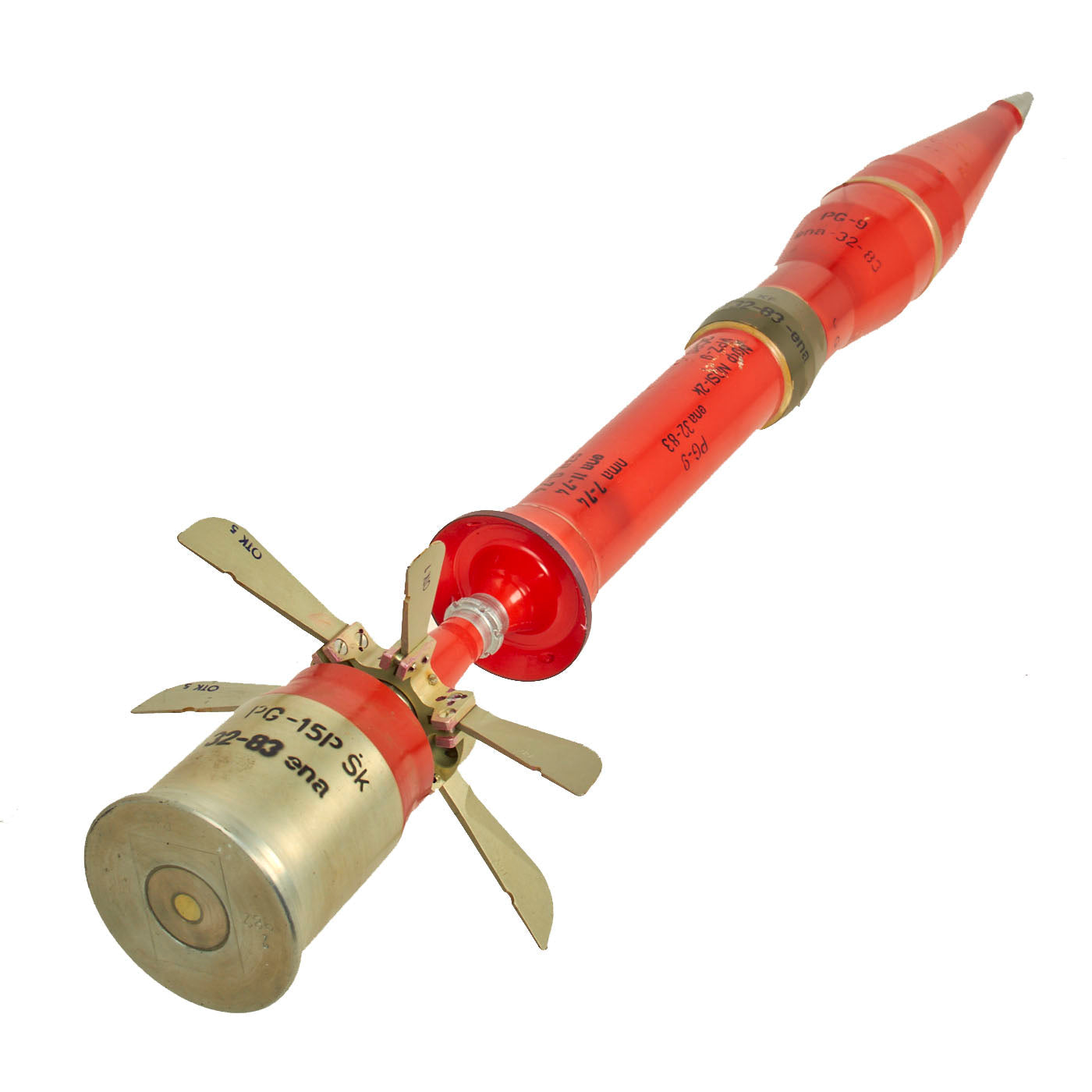 Original Items: Only One Set Available. This training rocket is totally inert as designed, and was never able to be used as any type of weapon. This cannot be converted to an explosive device and is not available for export. The rocket measures approximately 34 ½ inches long with a base diameter of 3.25 inches. All components are dated 1983.