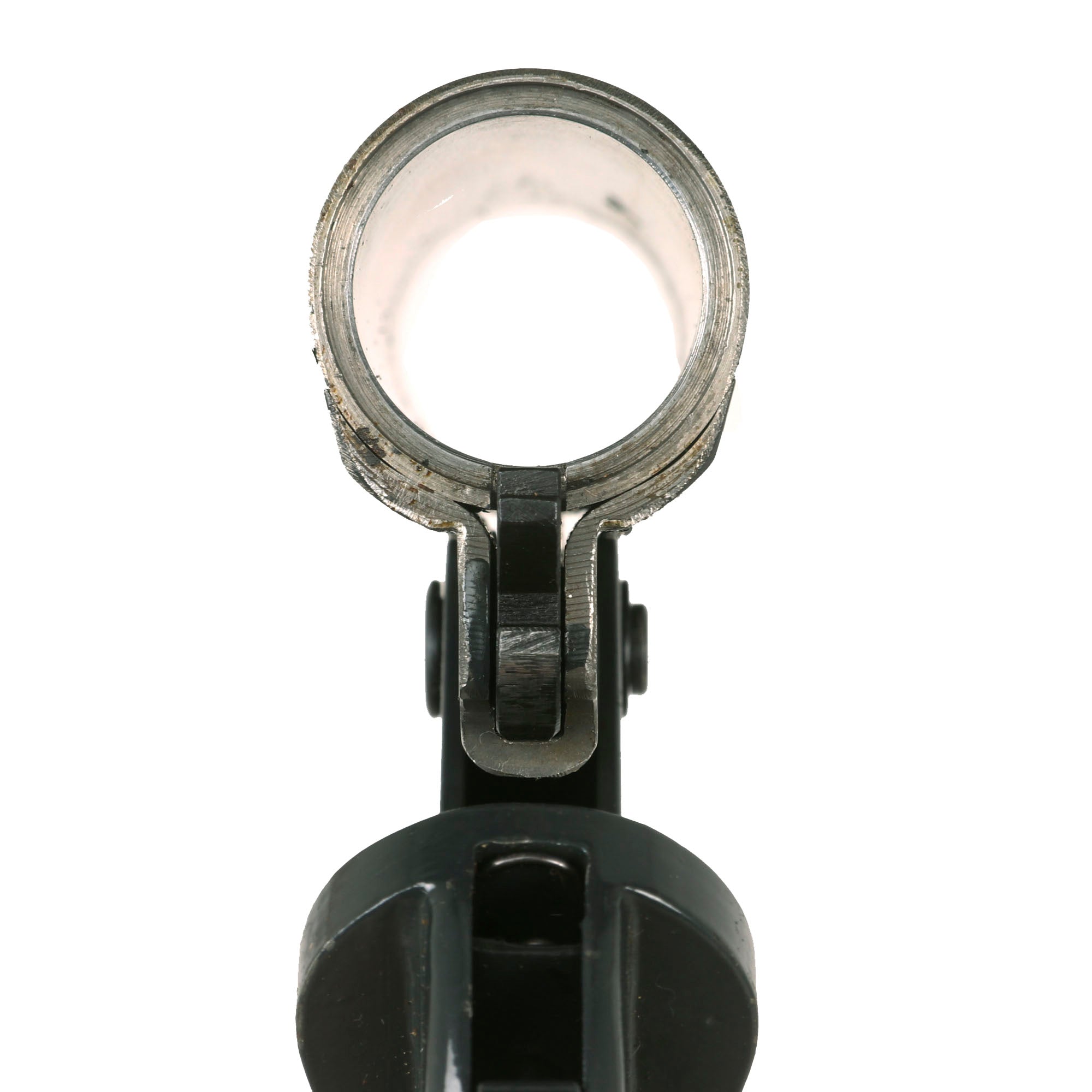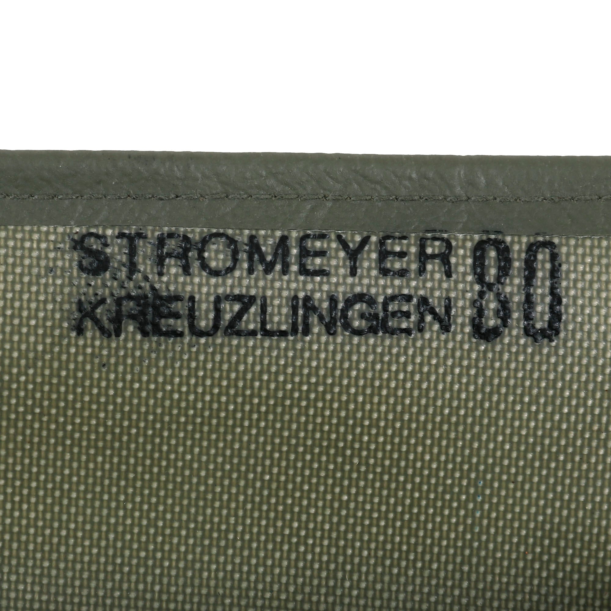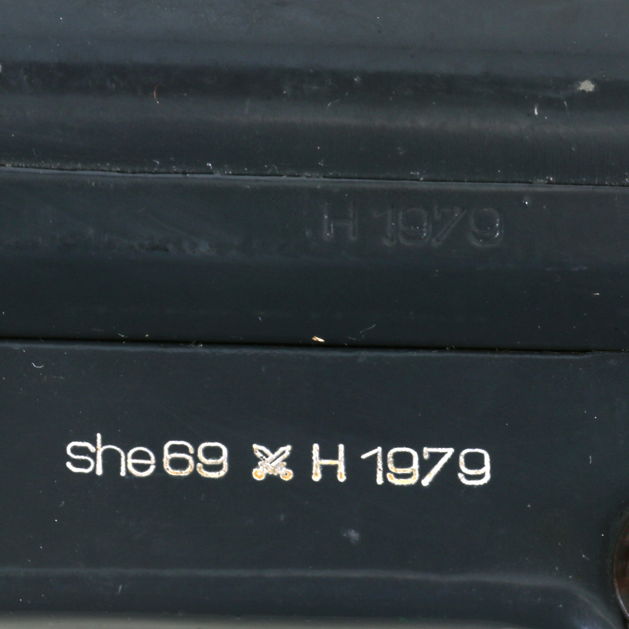 The flare pistol is marked she69 (crossed swords) H 1979 on the side of the frame. The action still works very well. The finish is still well retained. The included carrying case is marked under the flap STROMEYER KREUZLINGEN 80, likely indicating a manufacture date of 1980. The case has the original cleaning rod and is in good shape, with all snaps retained.