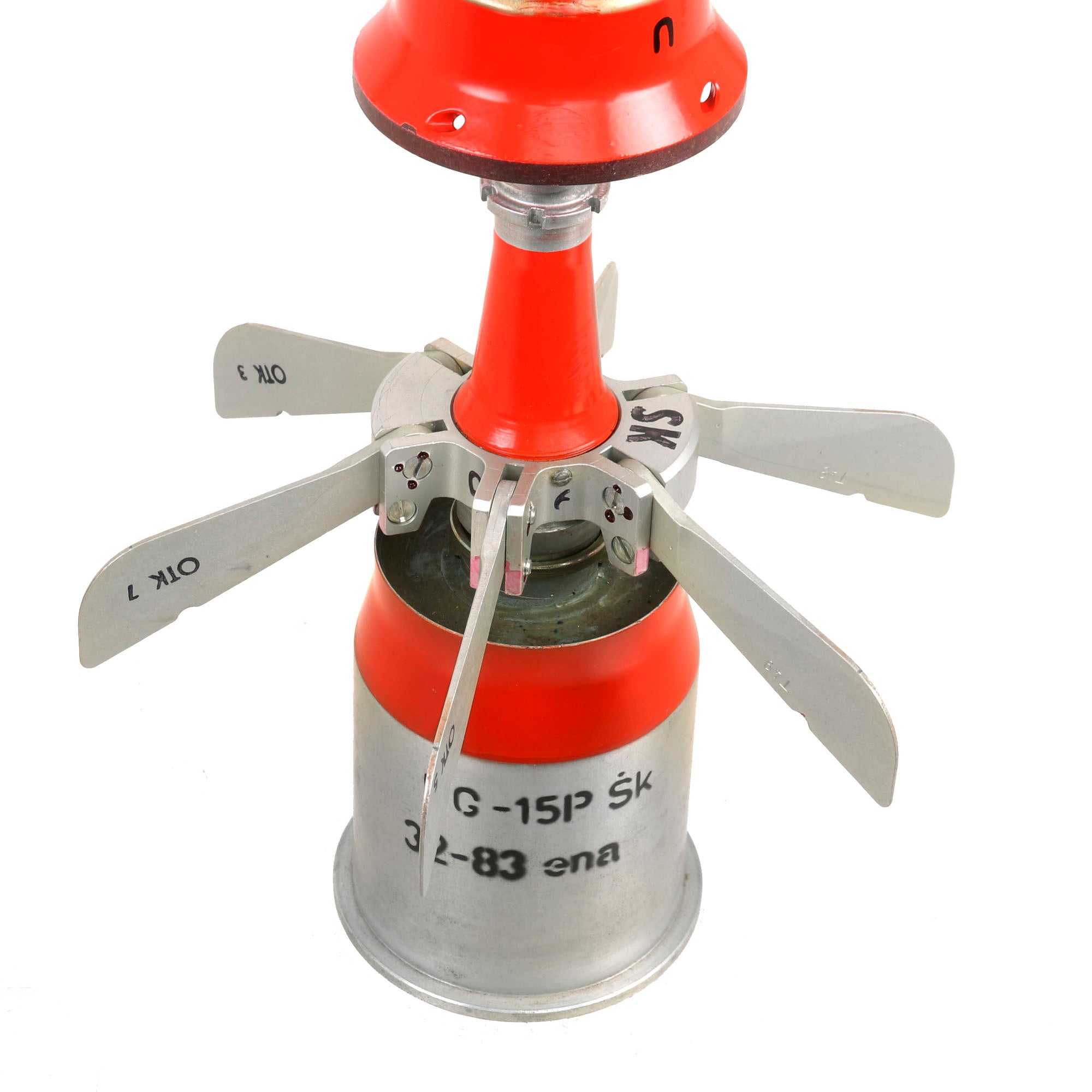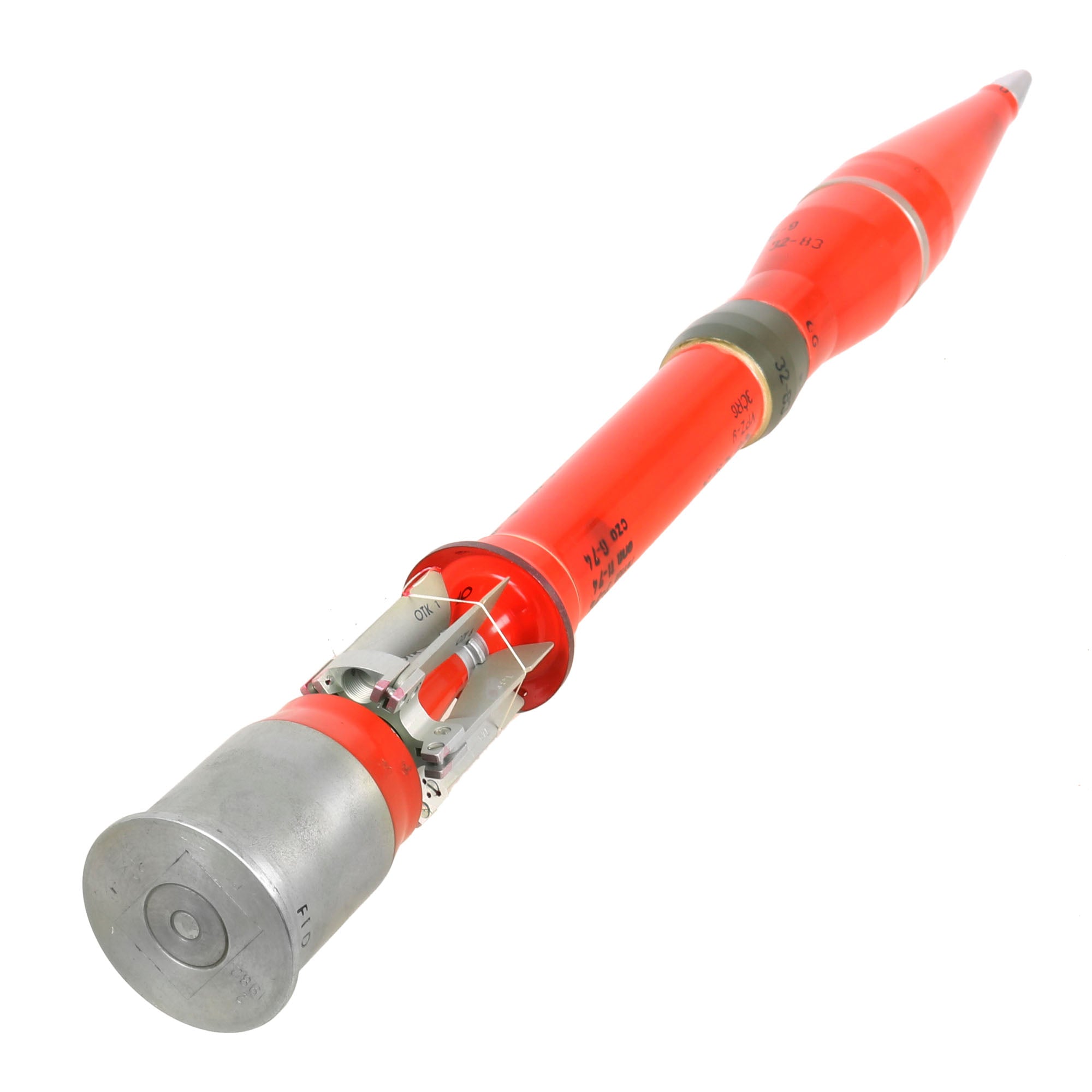 Original Items: Only One Set Available. This training rocket is totally inert as designed, and was never able to be used as any type of weapon. This cannot be converted to an explosive device and is not available for export. The rocket measures approximately 34 ½ inches long with a base diameter of 3.25 inches. All components are dated 1983. This example is still sealed in its original plastic except for the one canister that would be inserted into the bottom which is not in plastic, but it has the same markings.