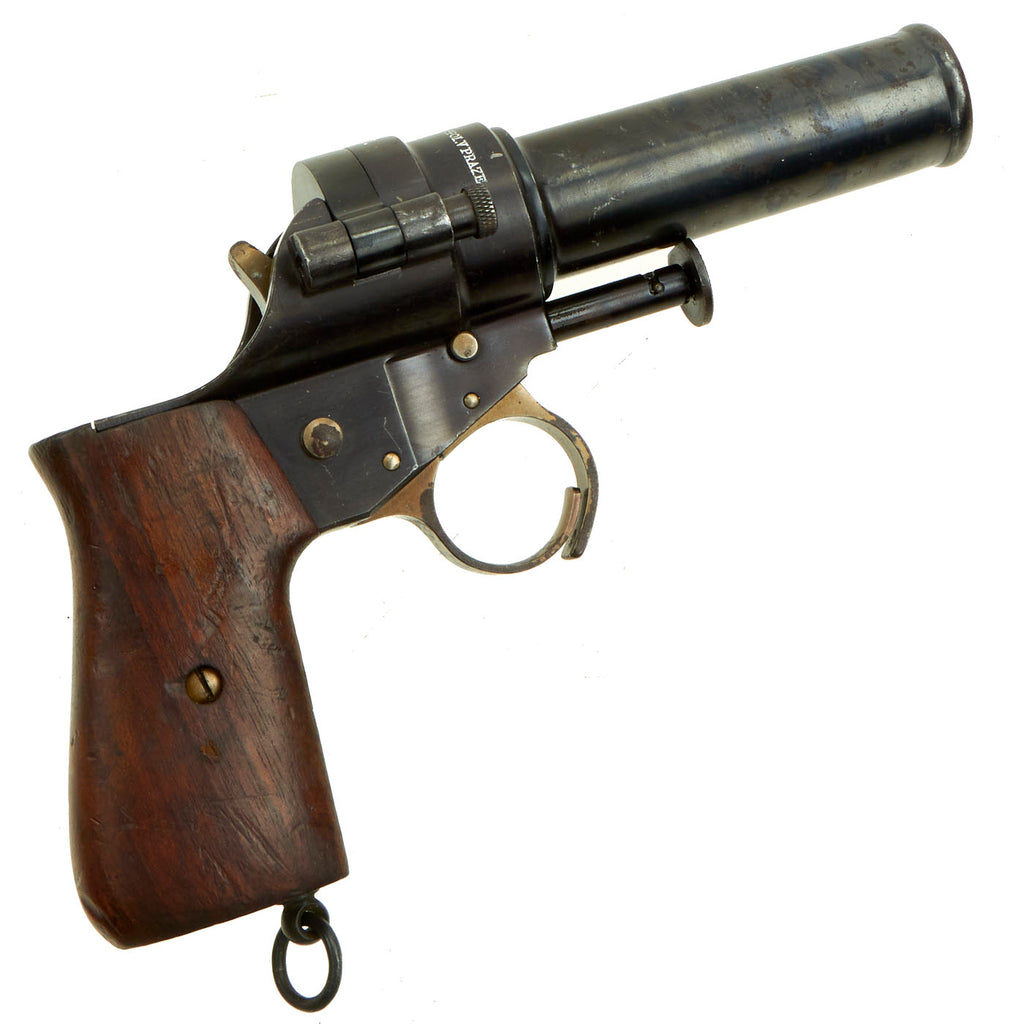 These well made signal pistols were produced in rather limited numbers but saw use throughout WWII, mostly with German forces. A great example, only the second we have ever had!