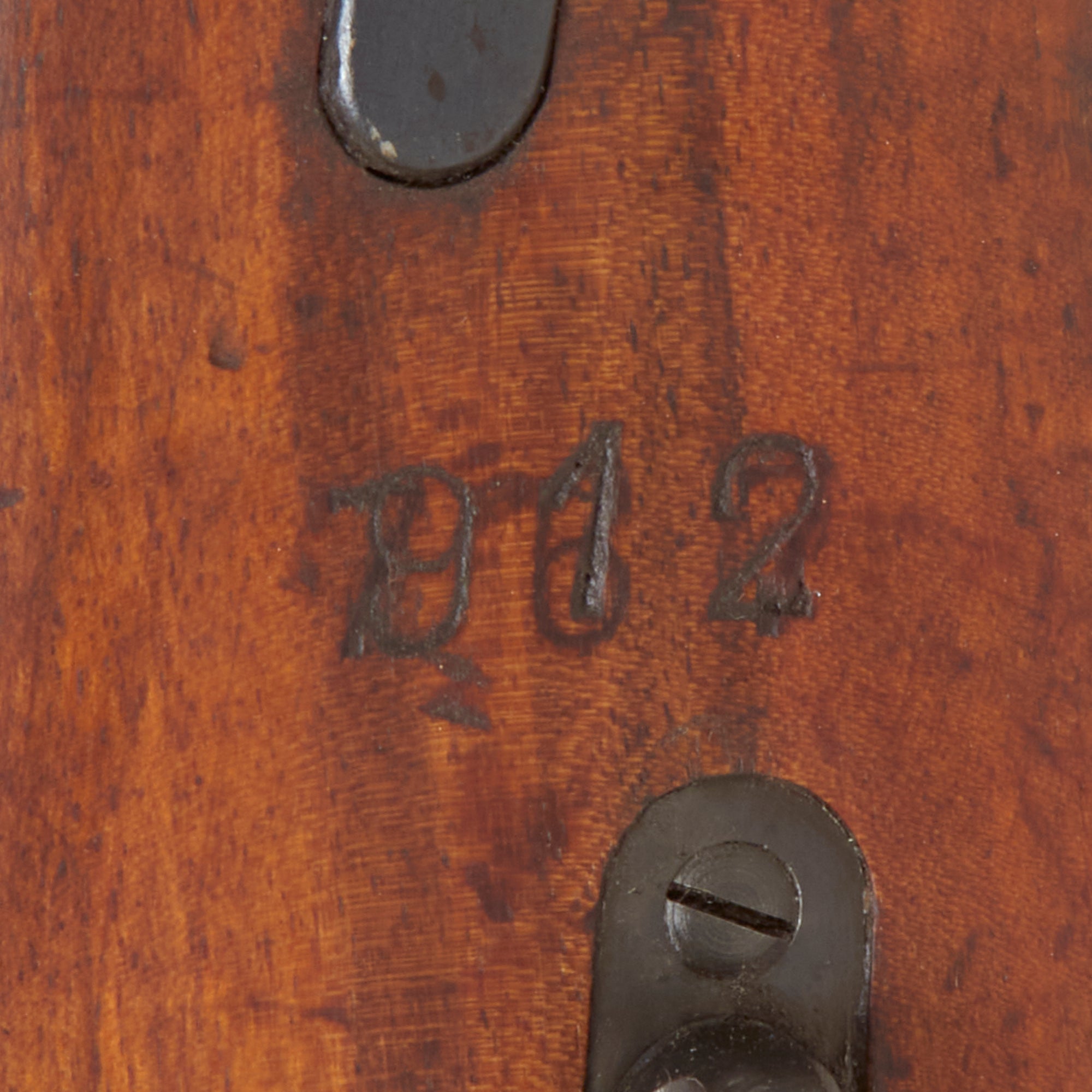 Due to how this example was originally demilitarized, the Yugoslavian crest and manufacture information normally on the top of the receiver was completely removed. We can still see part of a serial number on the top rear of the reciever, while the the buttstock is stamped 912, stamped over 767. This is definitively a Czech made example, likely from Zbrojovka Brno, but without markings we cannot say for sure.
